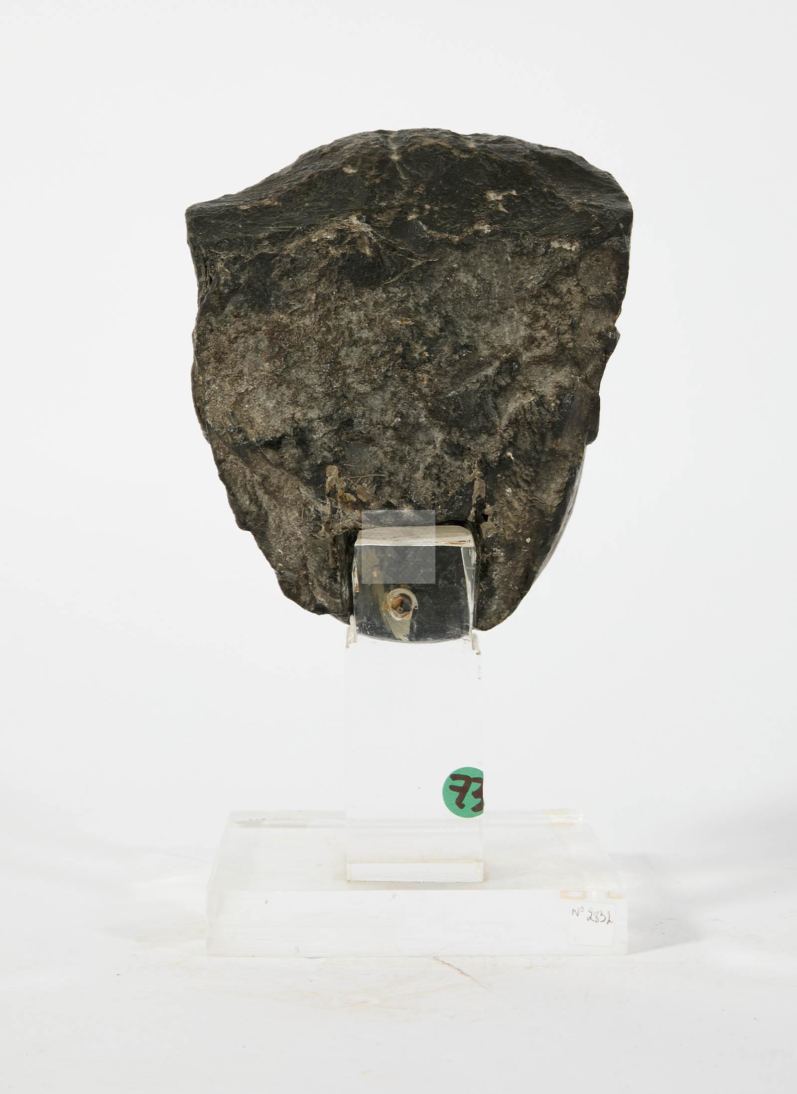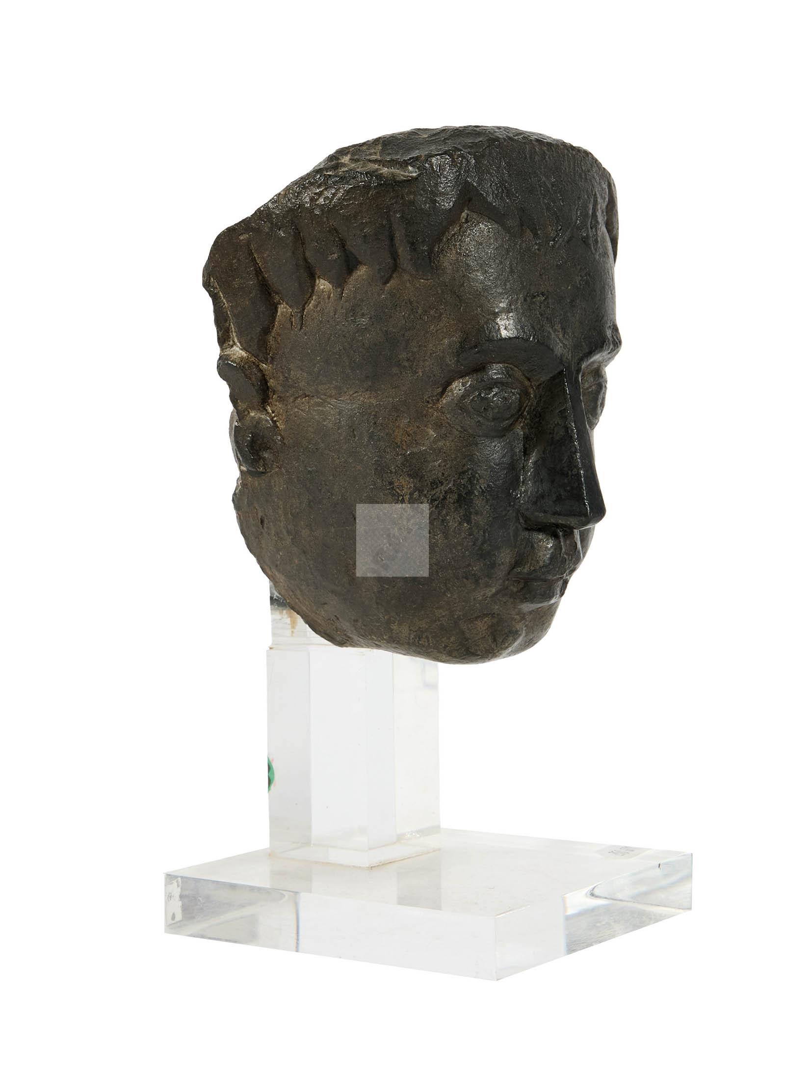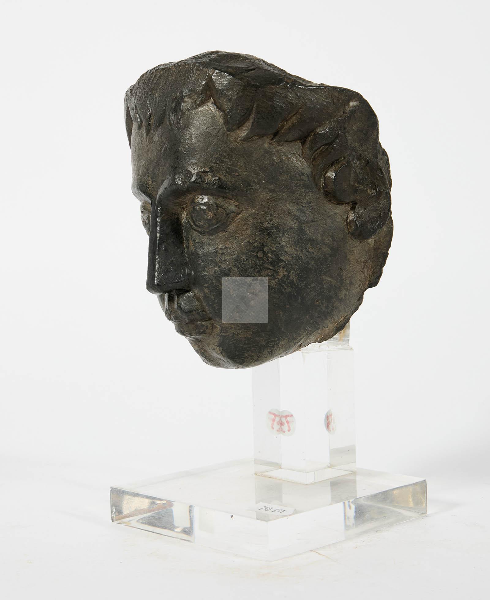 Lot n°151 - 151Tête en pierre calcaire sculptée et patinée noire ; visage ovale, aux traits