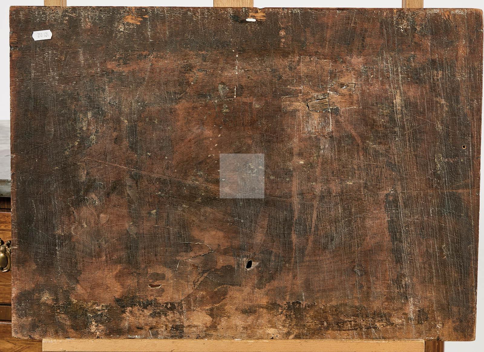 Ce thème du repos pendant la fuite en Égypte a été abordé dans la peinture ; le peintre flamand Peter von Avont (1600 – 1652) a semble t il inspiré notre panneau. Dans une huile sur cuivre de la collection Nicolas Lenté (Paris), on rencontre la même composition de jeux des angelots et ce sentiment de jovialité dans les nombreuses positions de jeu.