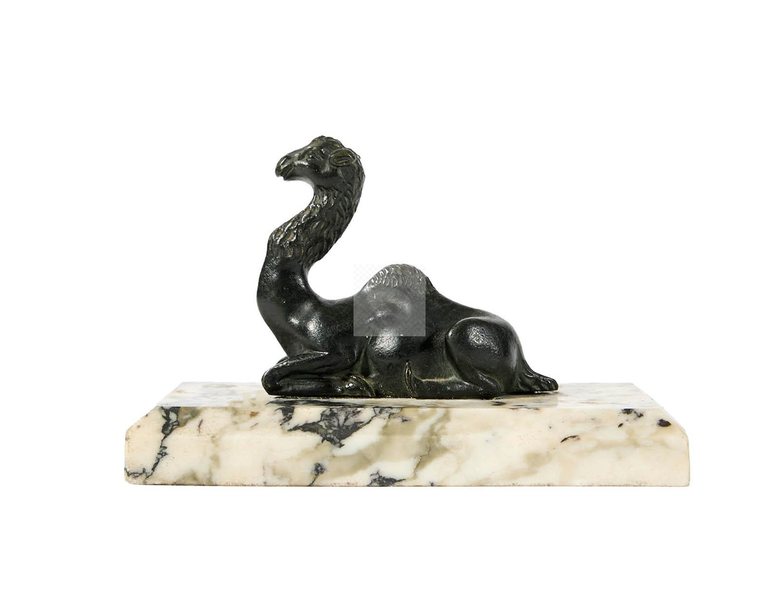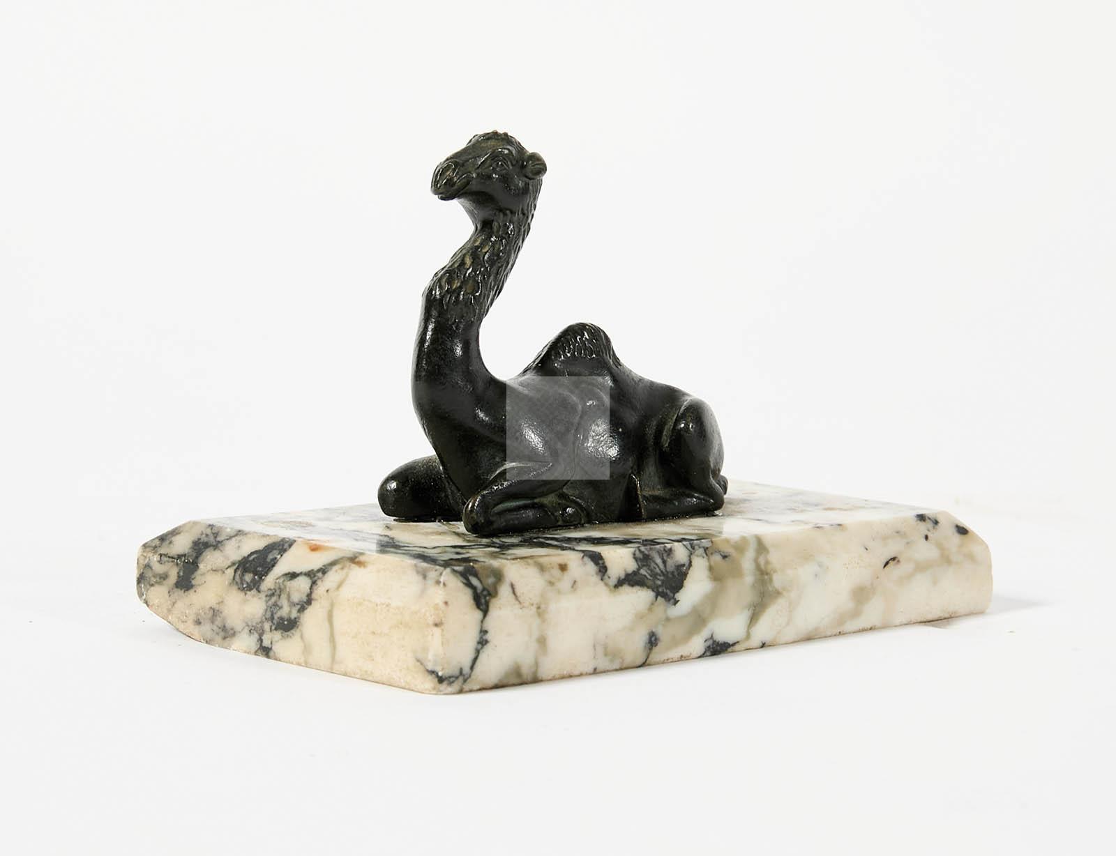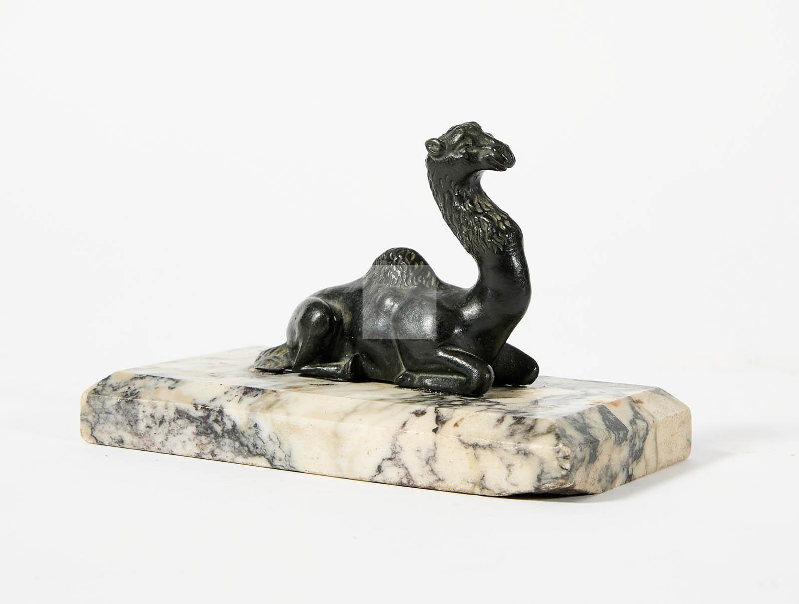 Plaque à papier en marbre et bronze à patine brune représentant un dromadaire. Début du 19e siècle.
