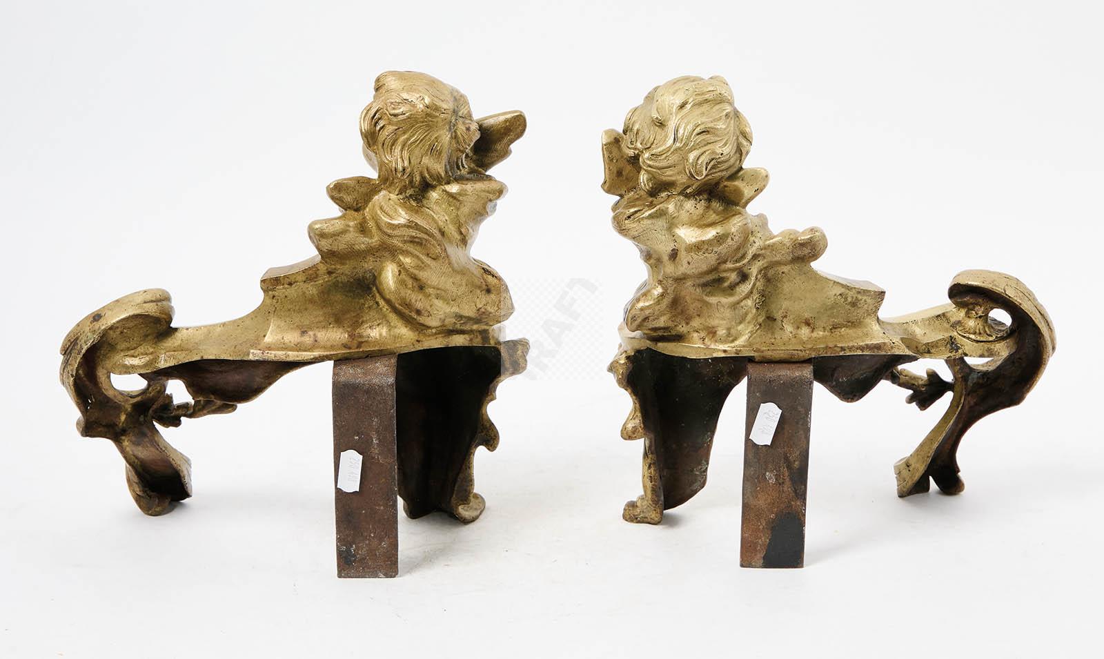 Lot n°203 - 203 Paire de chenets en bronze ciselé à décor en ronde-bosse de têtes de zéphyrs