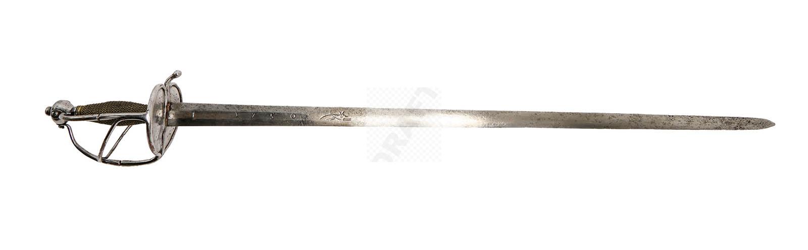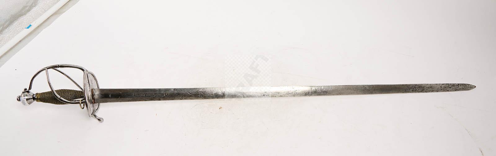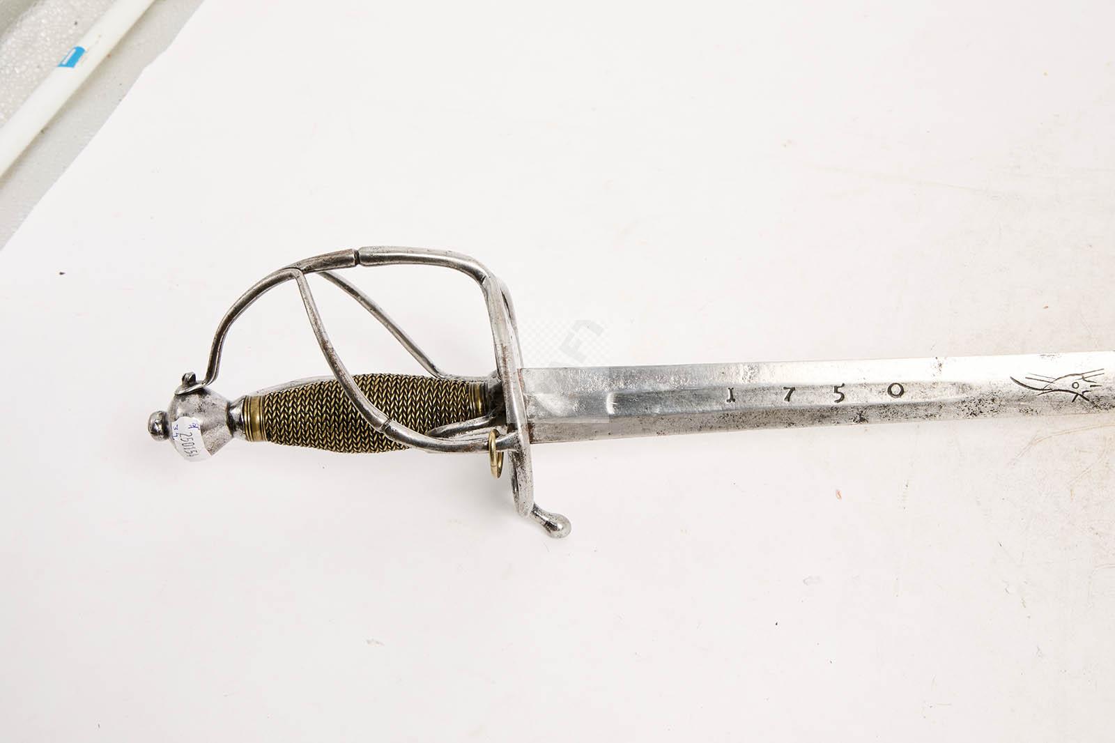 Lot n°226 - 226 Epée à coquille et quillon stylisés, datée 1750