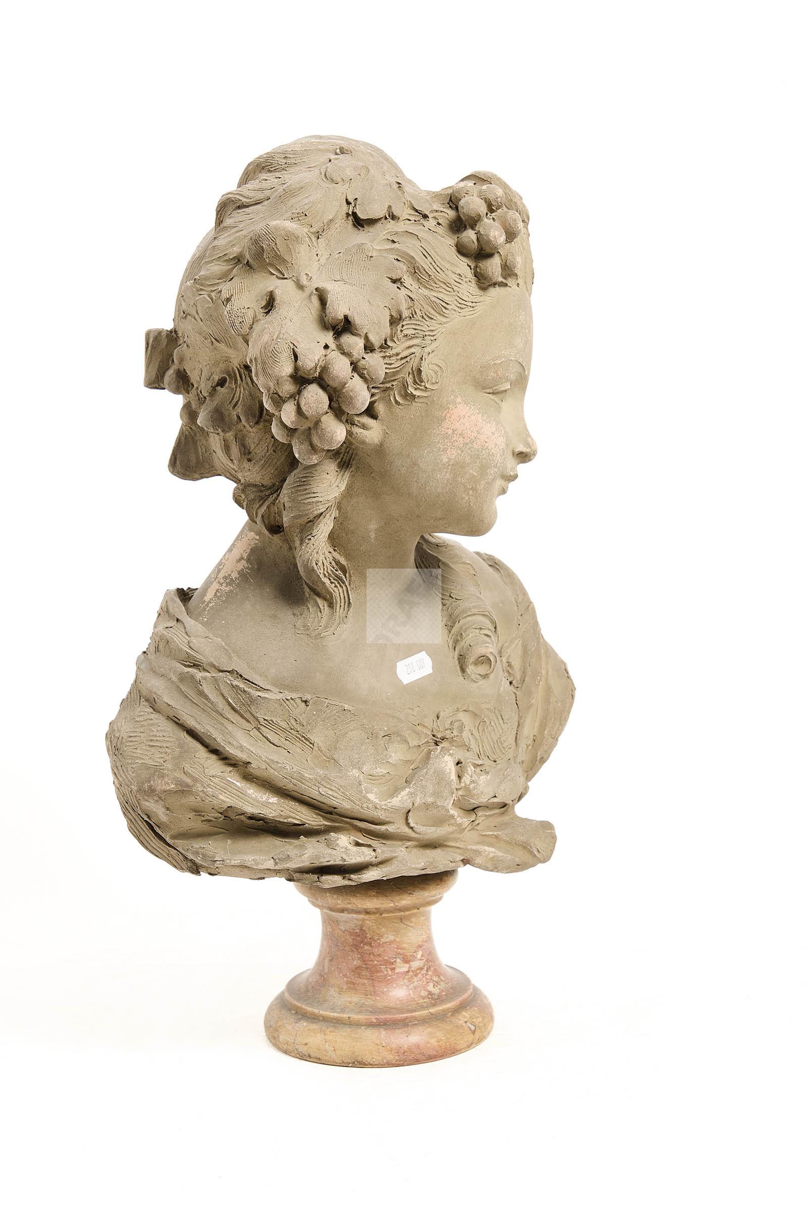 Lot n°240 - 240 Jeune femme sur piedouche Sculpture en terre cuite patinée, socle