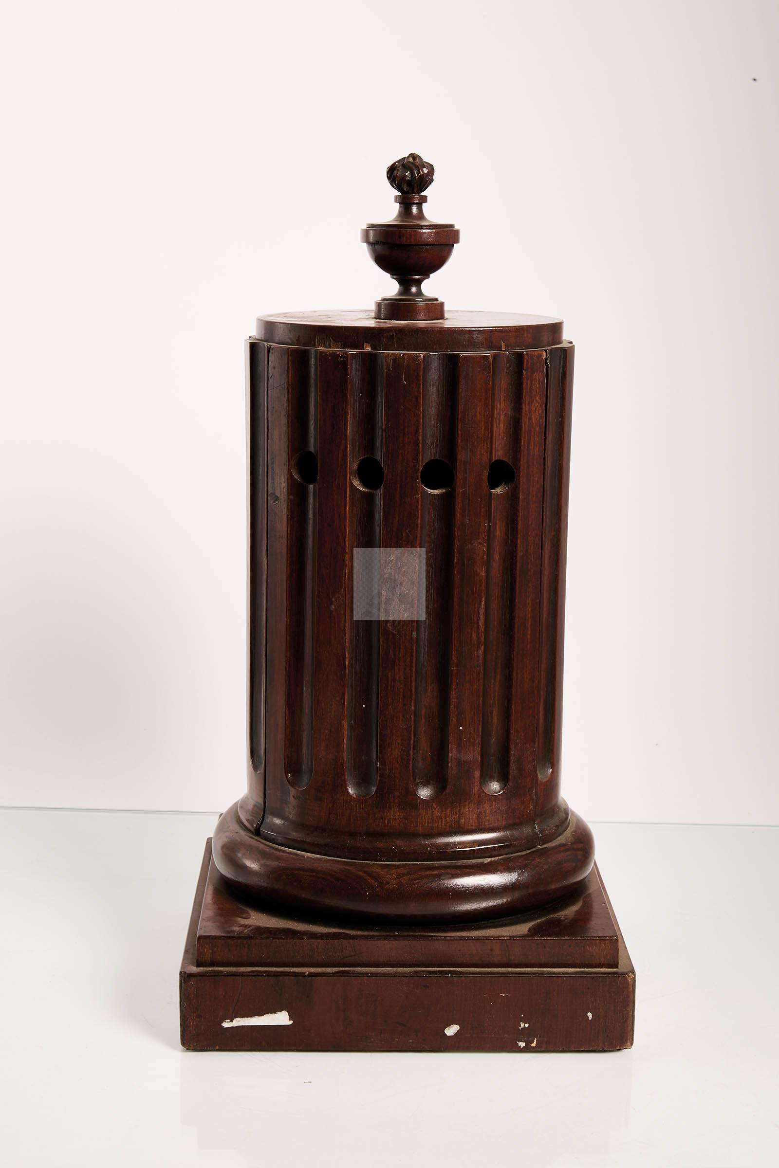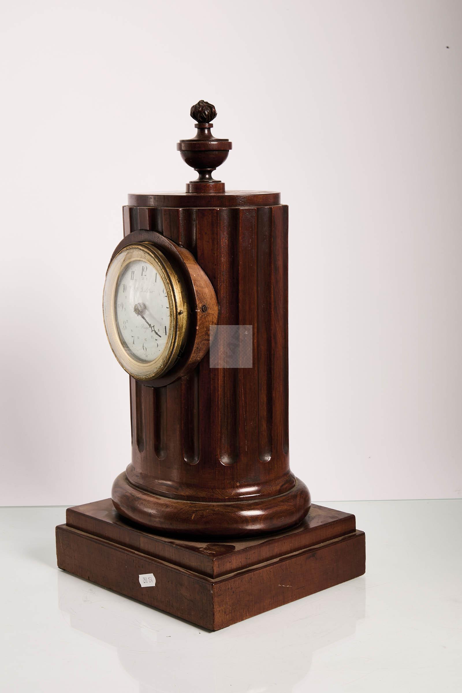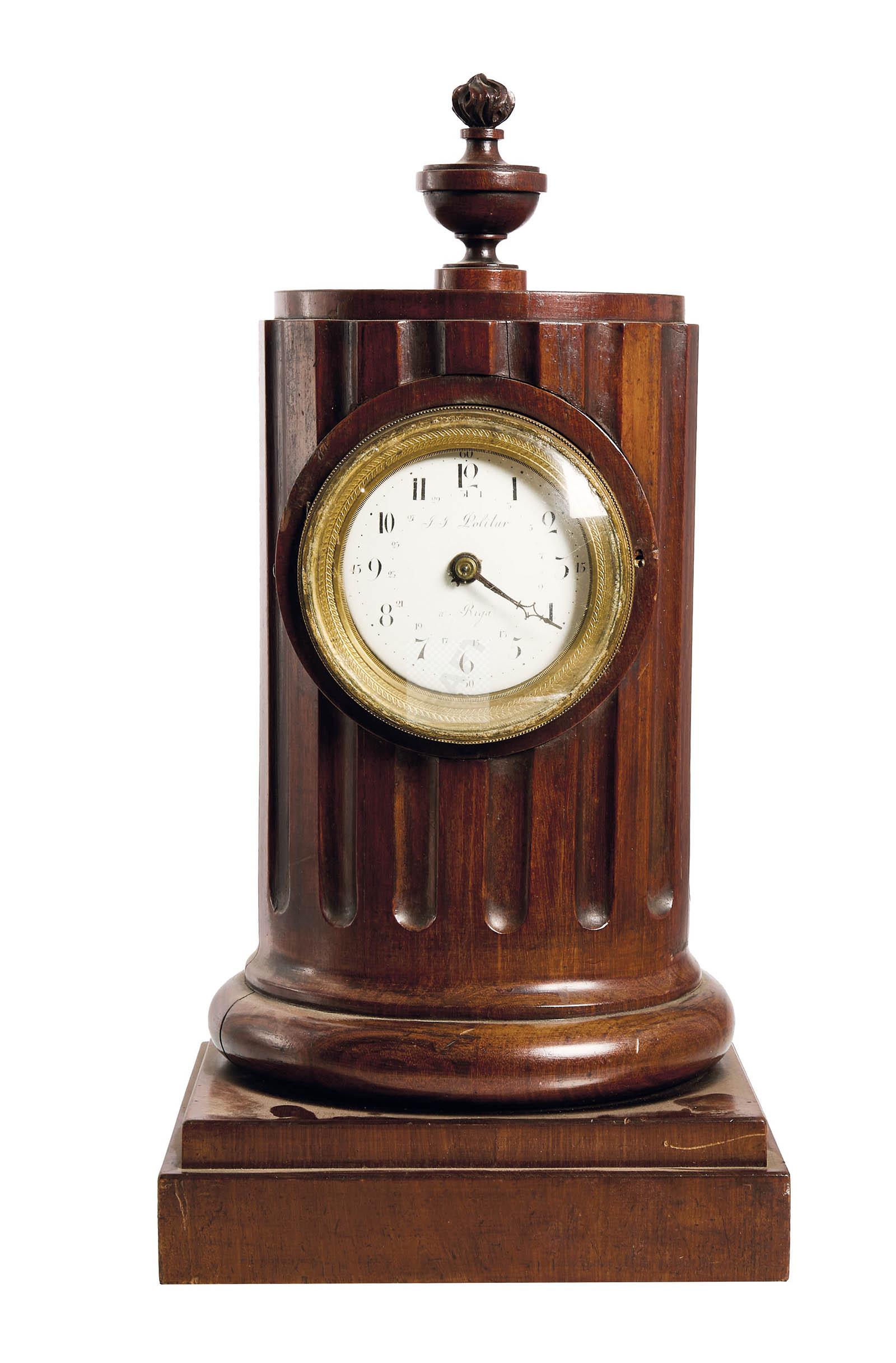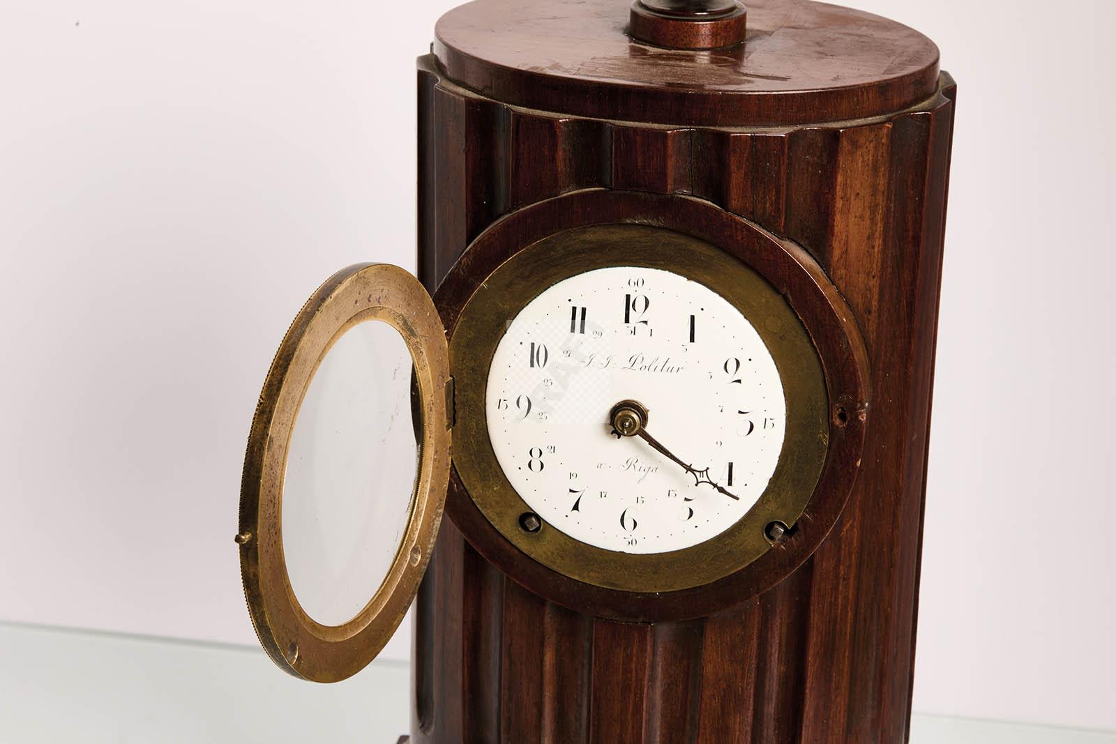 245 Pendule en acajou et placage d’acajou, le cadran émaillé signé JJ POLITUR à RIGA, inscrit dans une colonne tronquée, base à gradins.