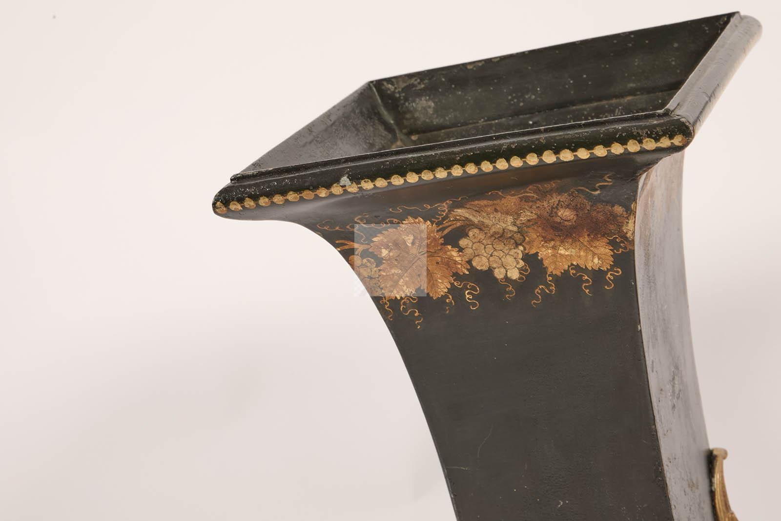 Lot n°246 - 246 Paire de rafraichissoires cornet en tôle laqué polychrome, pieds griffe, bas