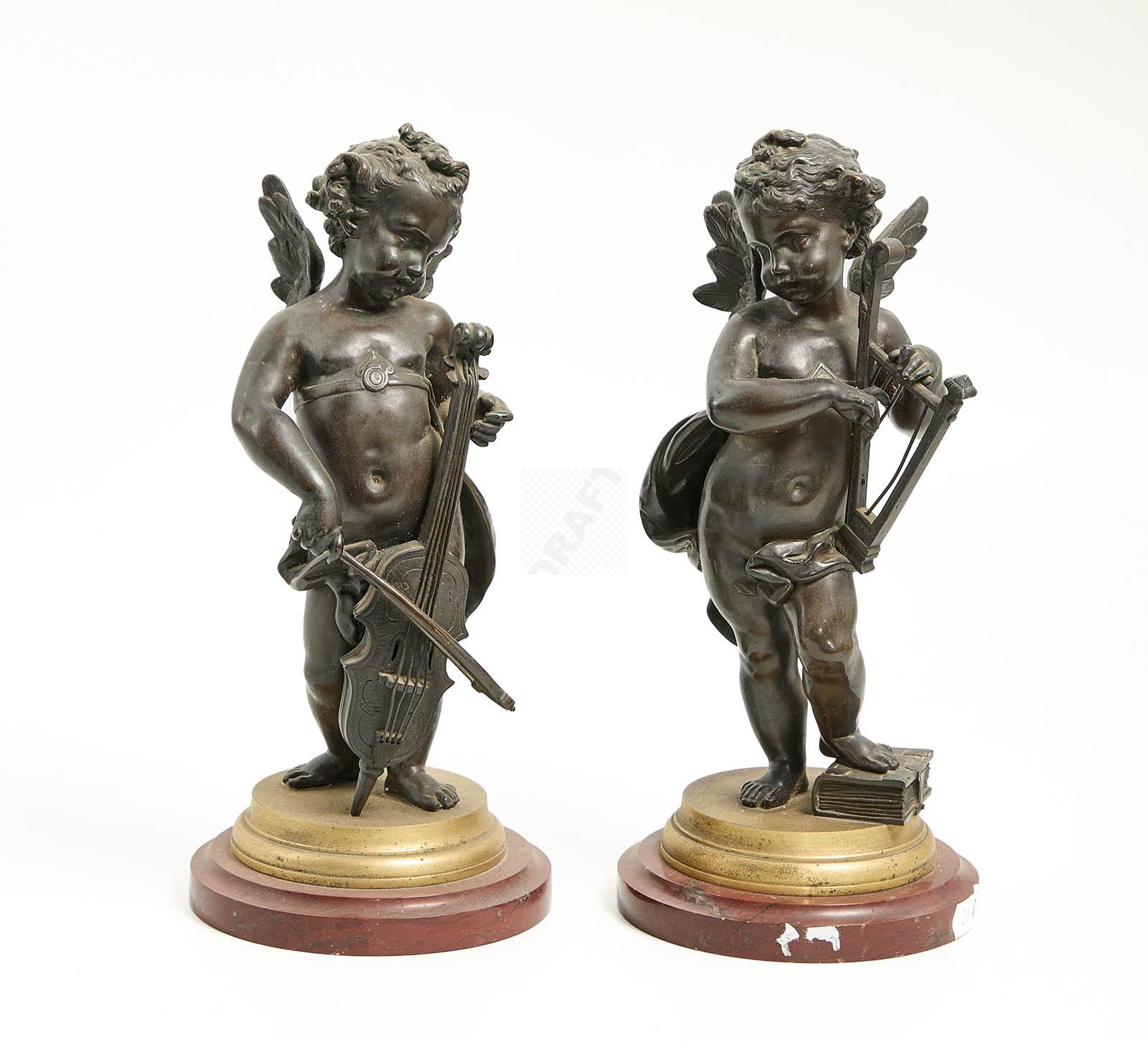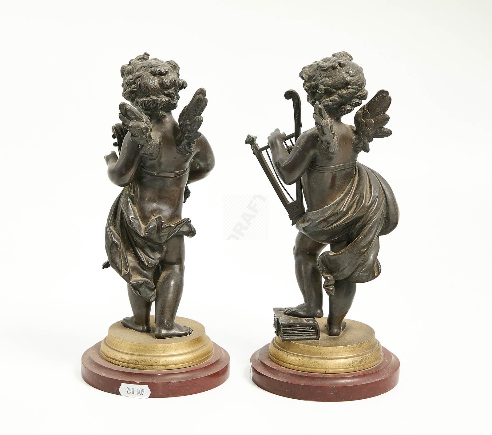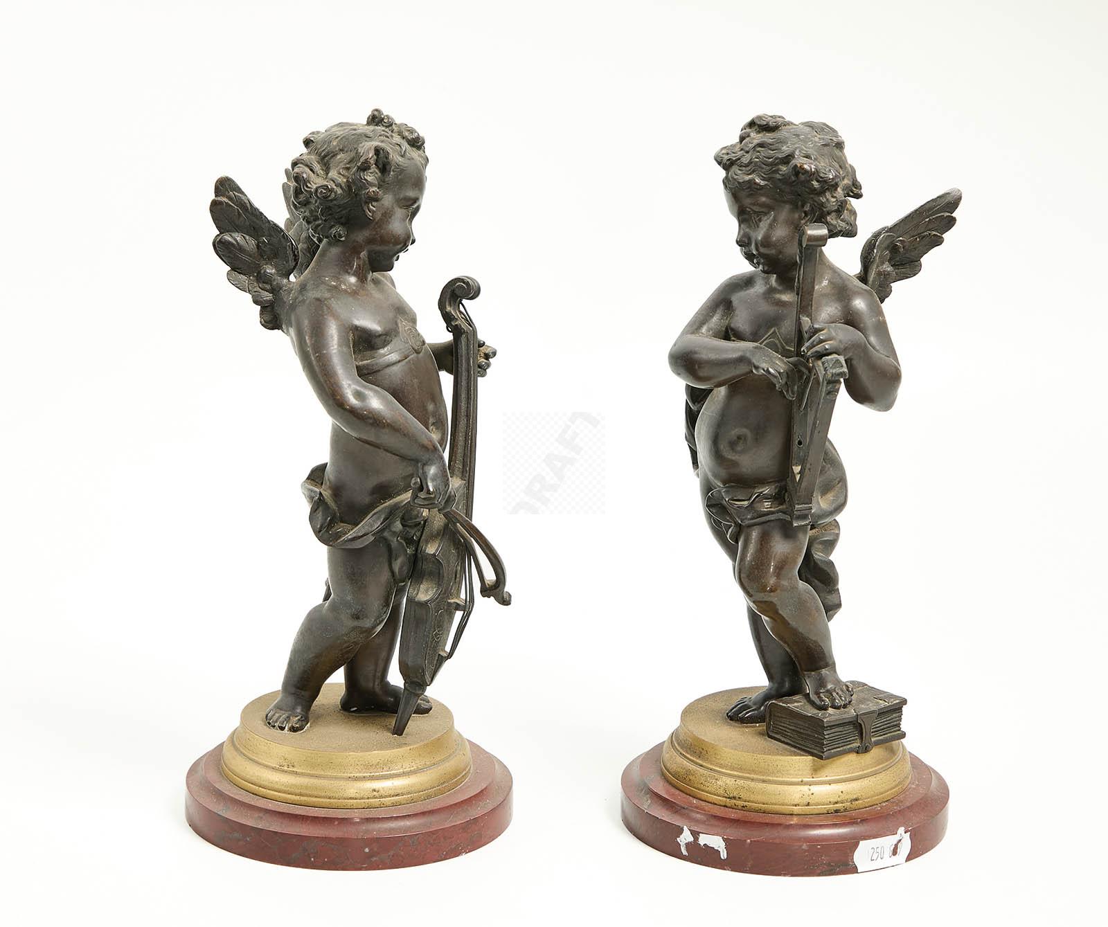 Lot n°249 - 249 Les anges musiciens Paire de sujets en bronze patiné et