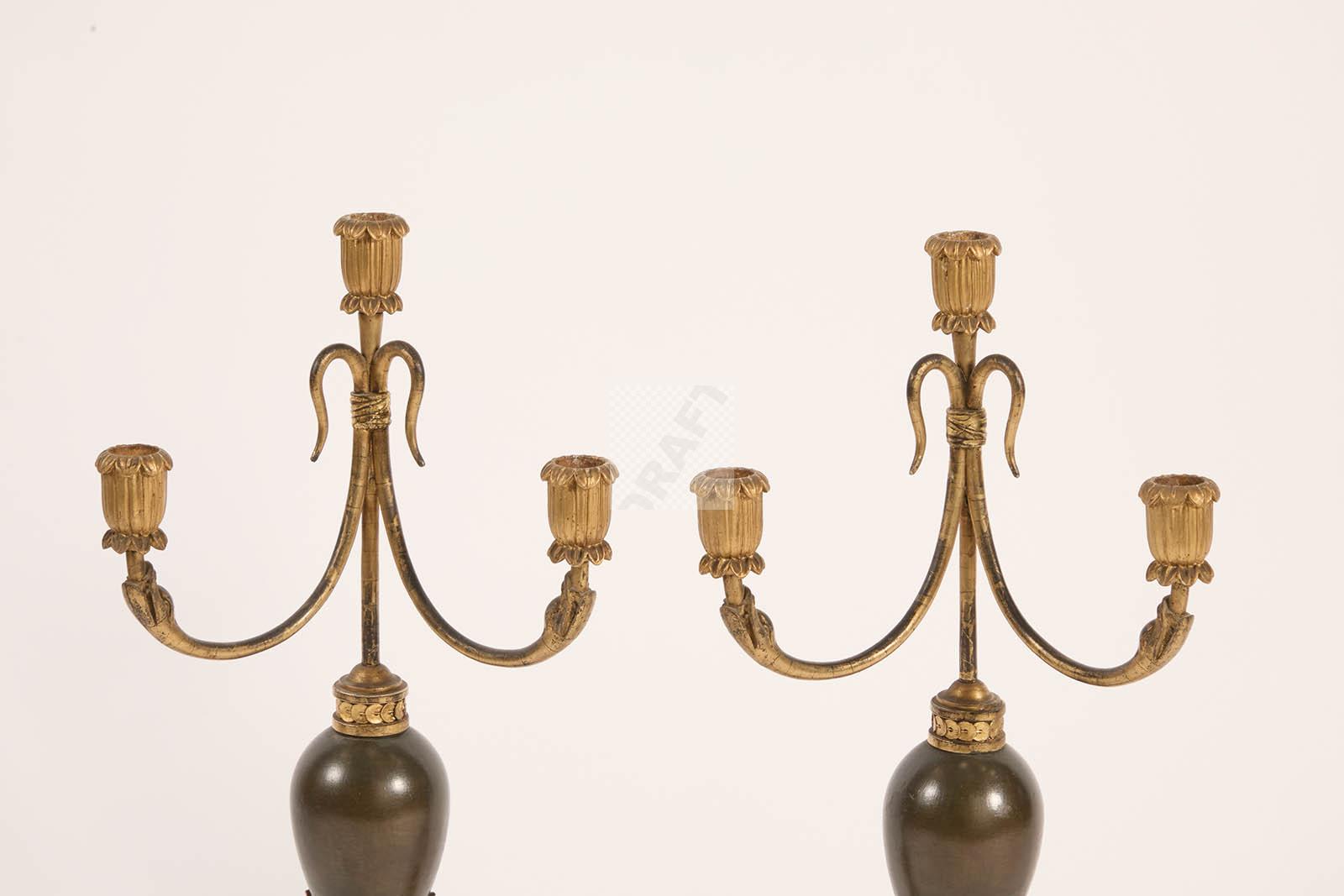 Lot n°254 - 254 Paire de candélabres à trois bras de lumières en bois et métal patiné, scul