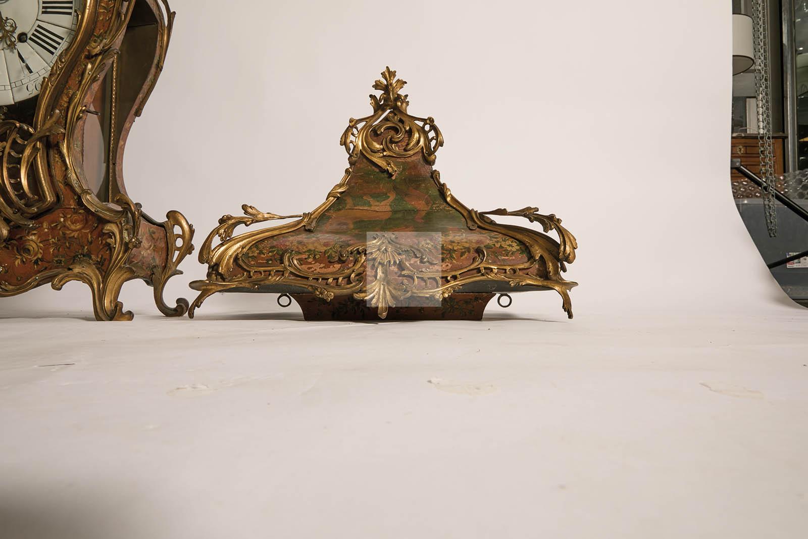 Lot n°261 - 261 Cartel et son cul de lampe à décor polychrome de branchages fleuris, cadran