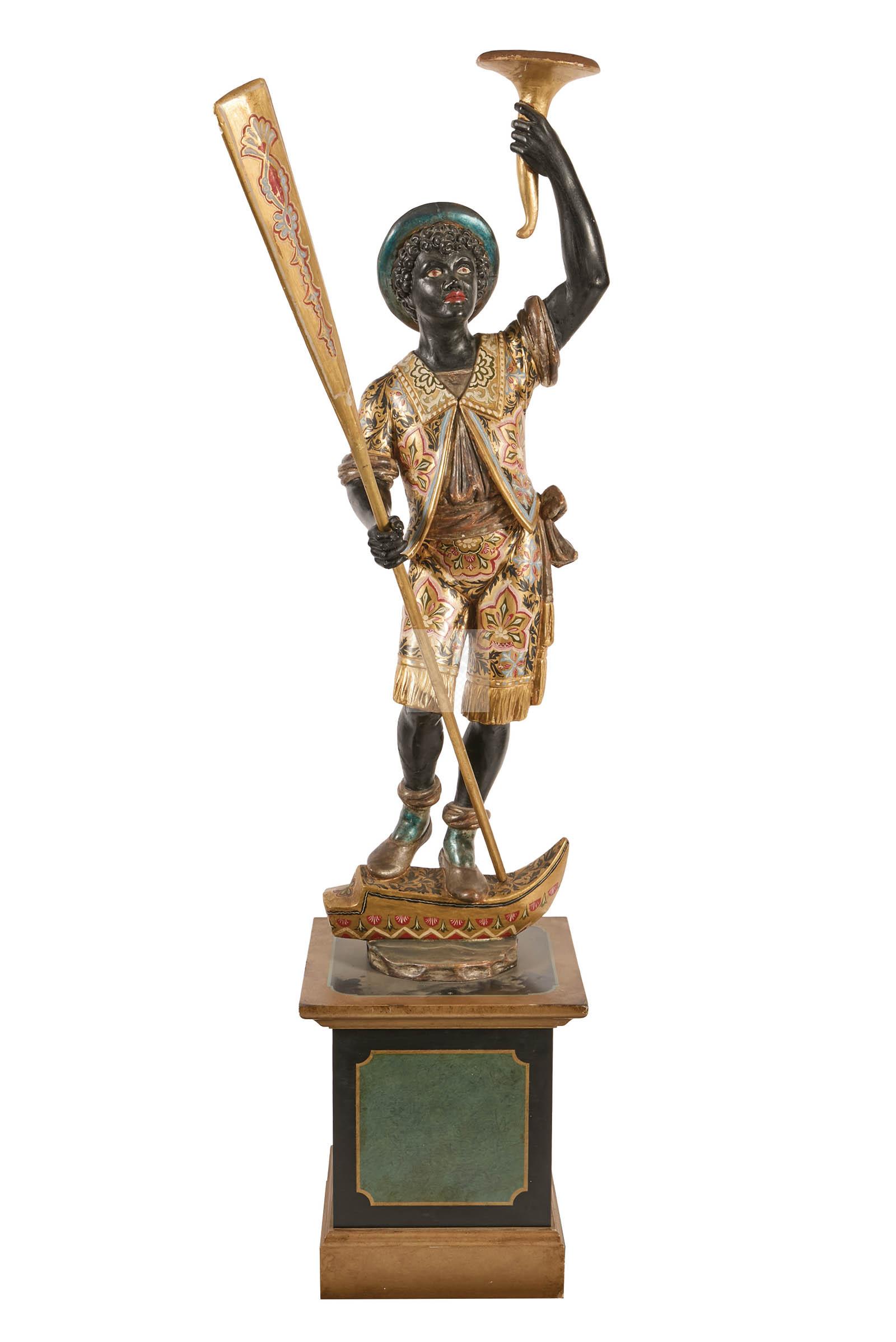 Lot n°265 - 265 Gondolier porte lumière-lumière en bois sculpté polychrome à réhauts dorés e