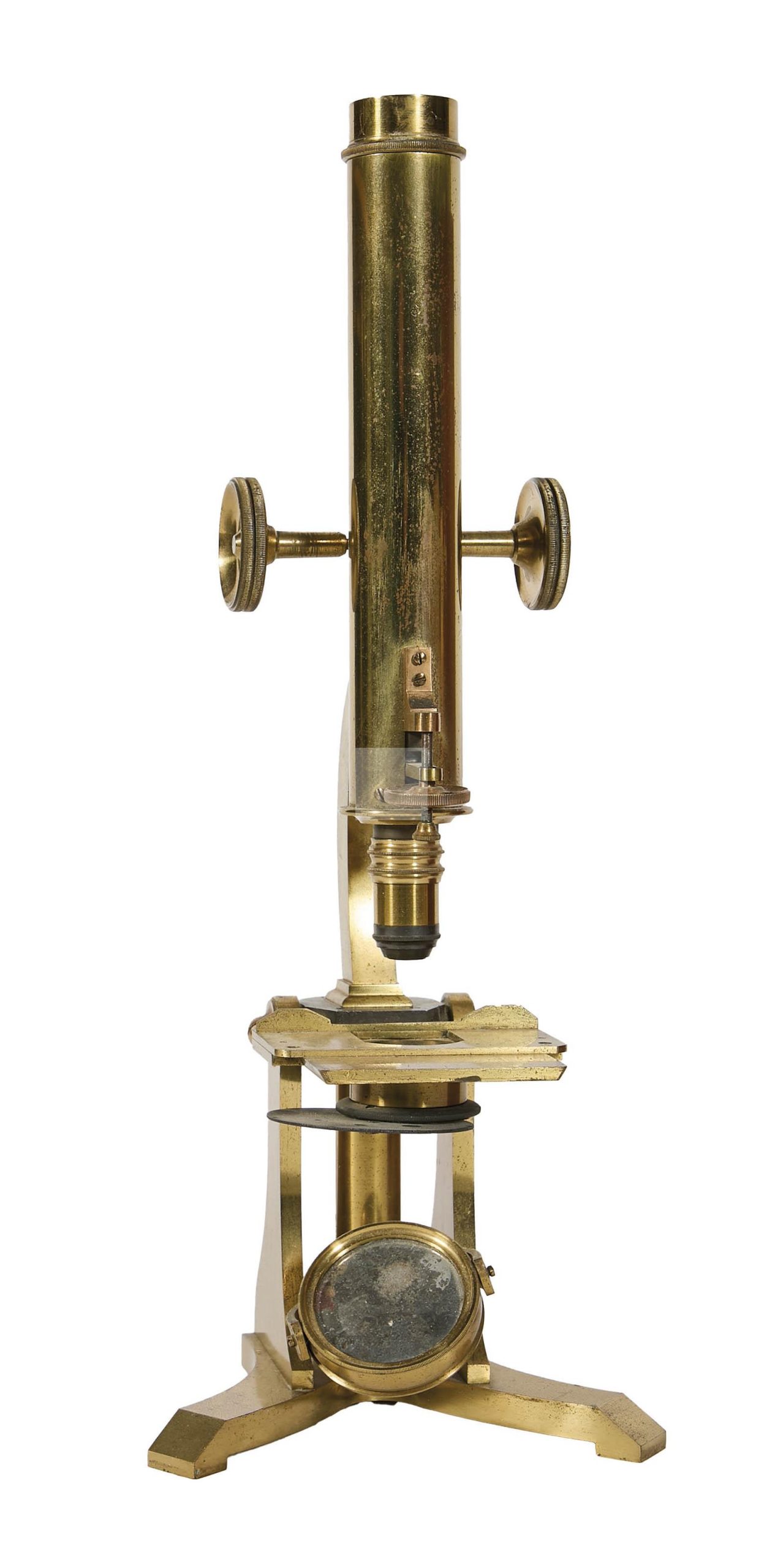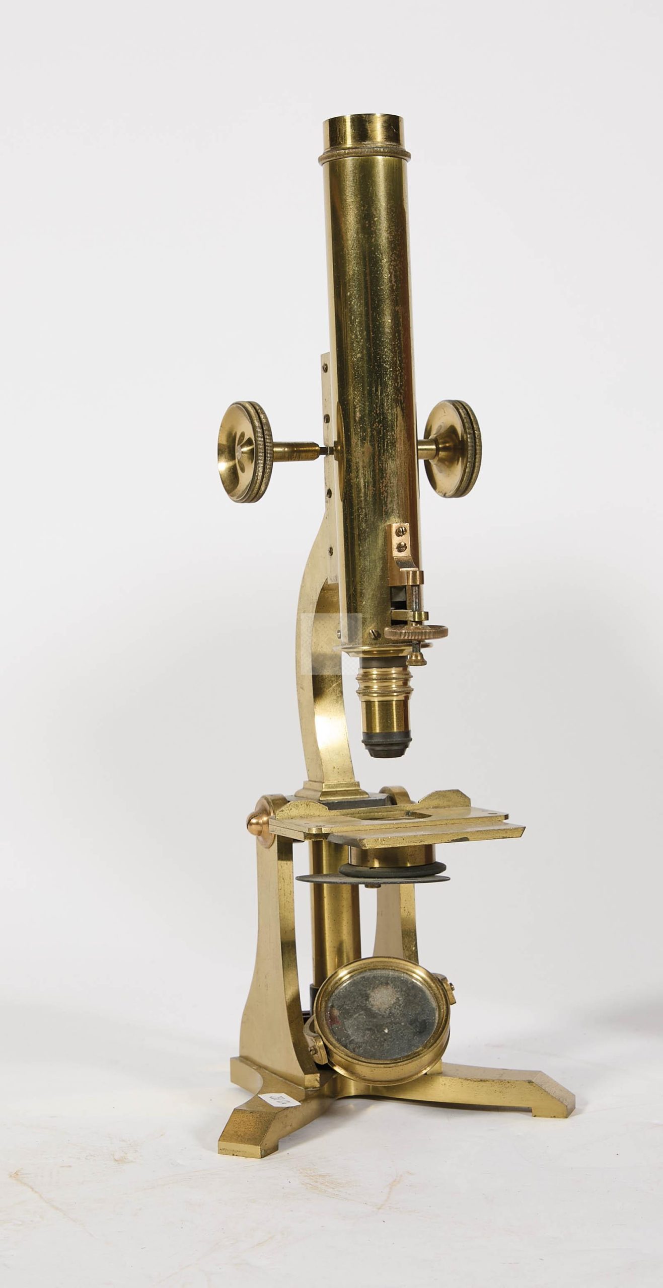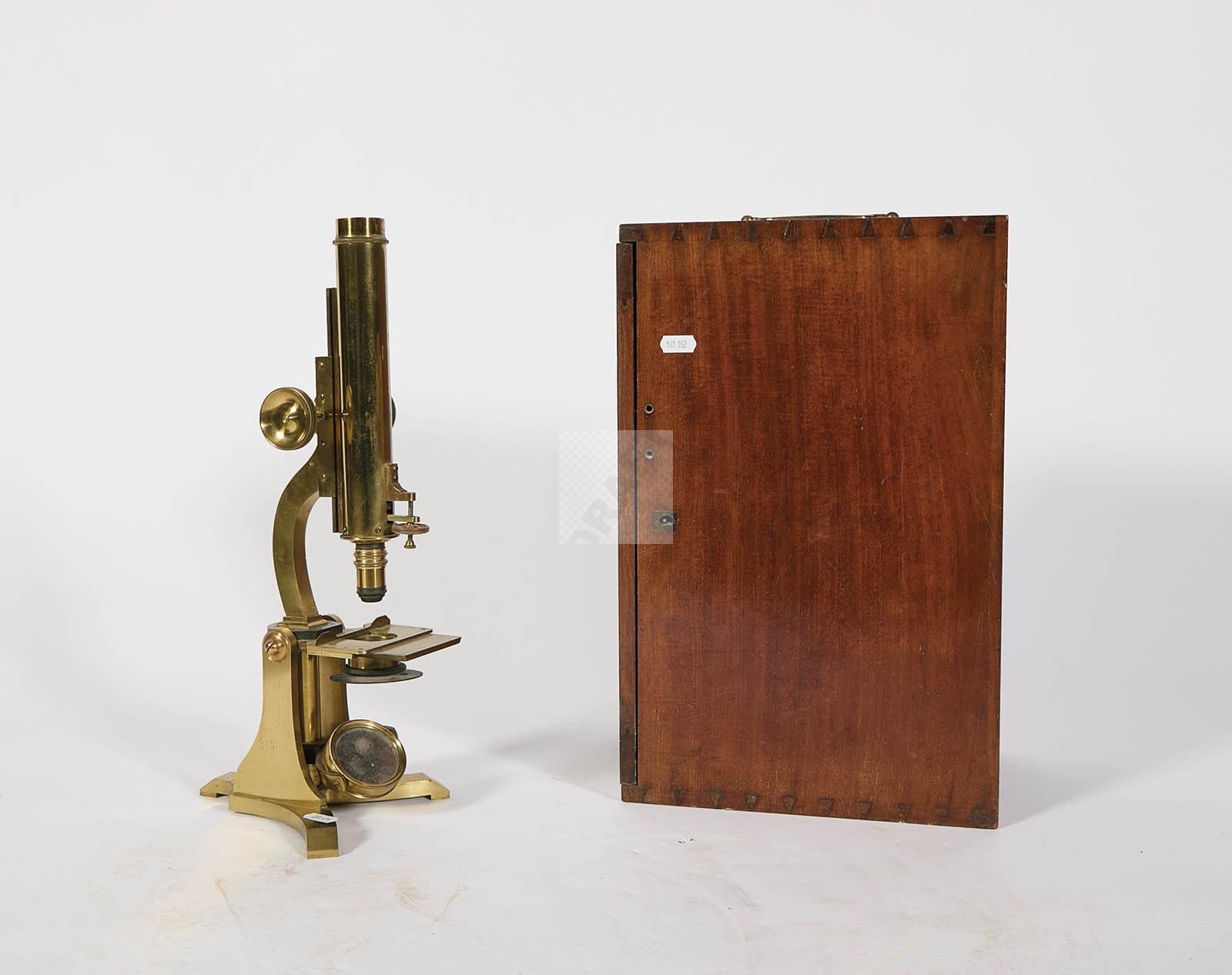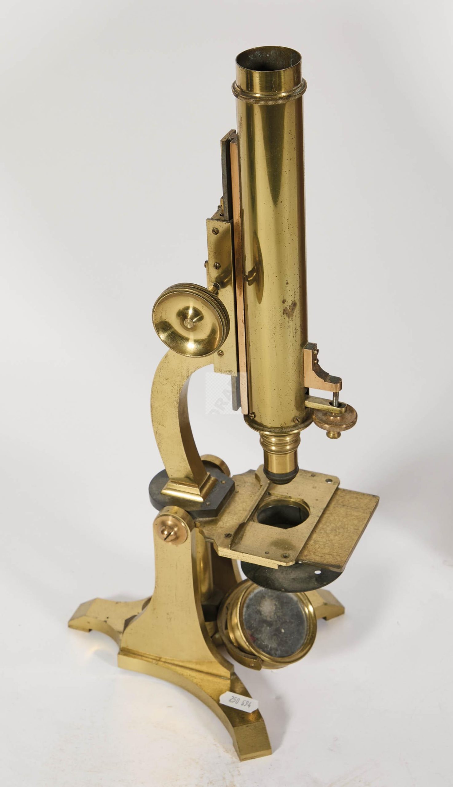 Lot n°273 - 273 Microscope en laiton (incomplet) avec sa boîte en acajou