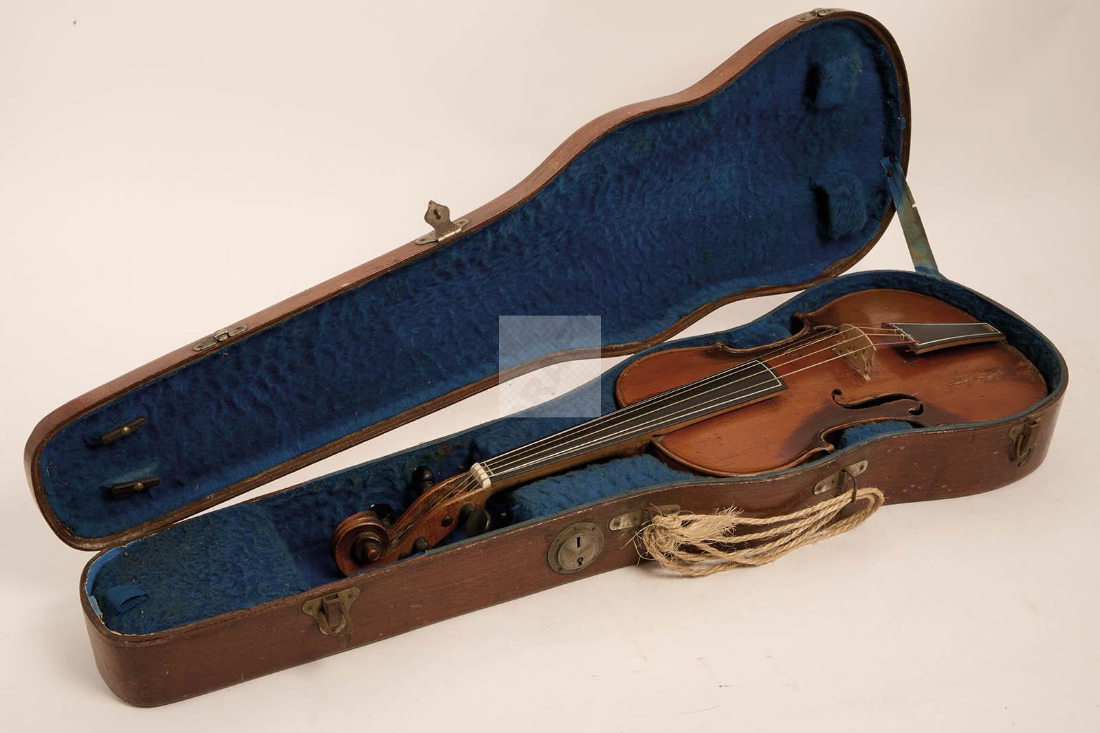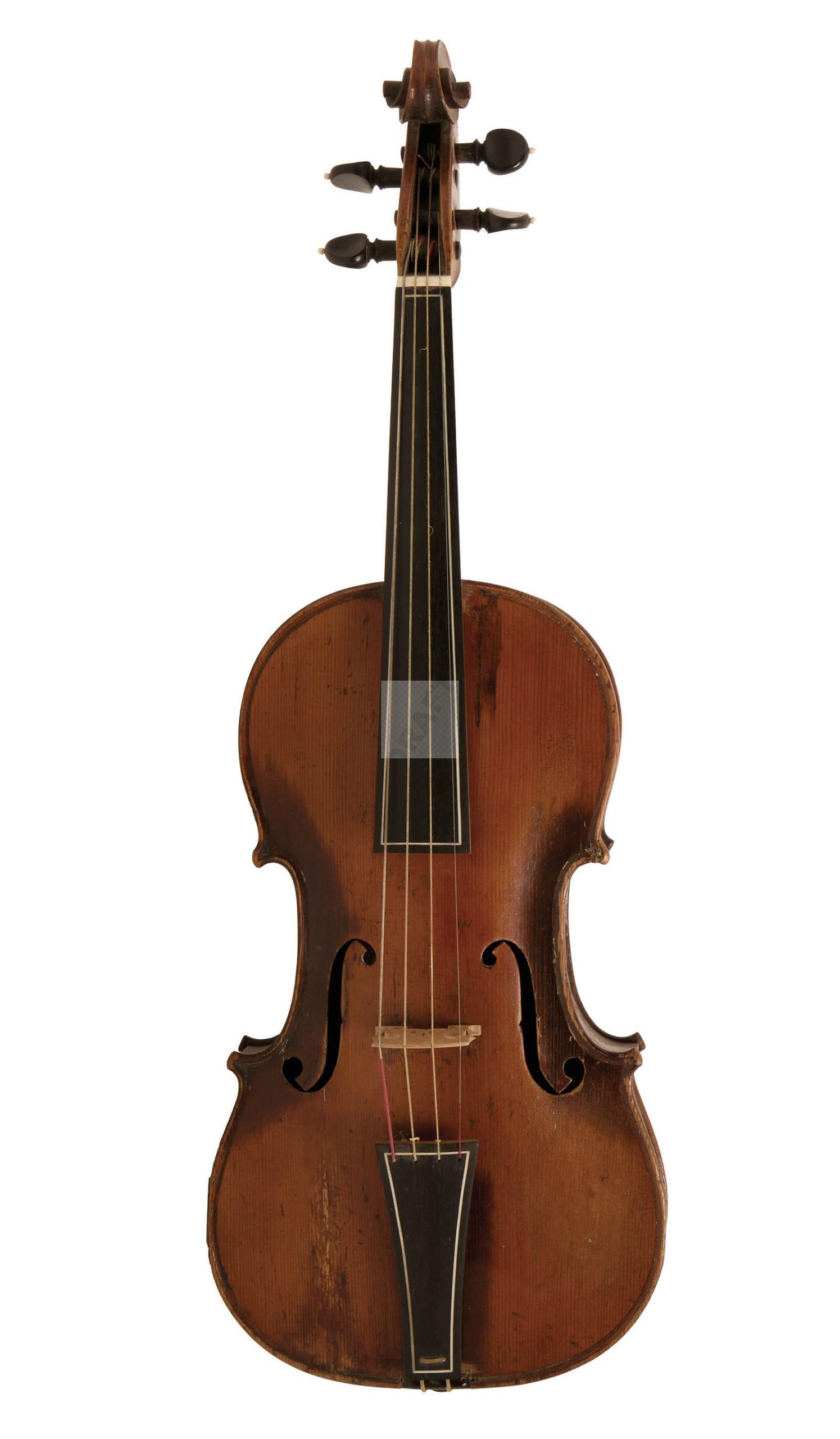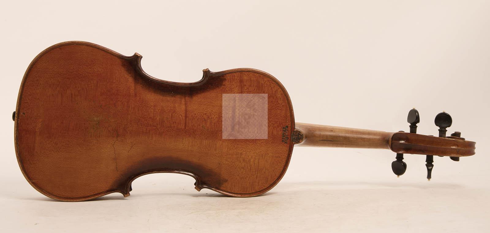Violon d’Augustin CHAPPUY, fait à Mirecourt en 1770, portant étiquette « AUGUSTINUS CHAPPUY | OLIM PARISIIS NUNC MIRECURTIO | FECIT ANNO 1770 » et marque au fer « CHAPPUY | A PARIS » sous le talon. Quelques restaurations et traces de ver. Longueur : 359 mm.