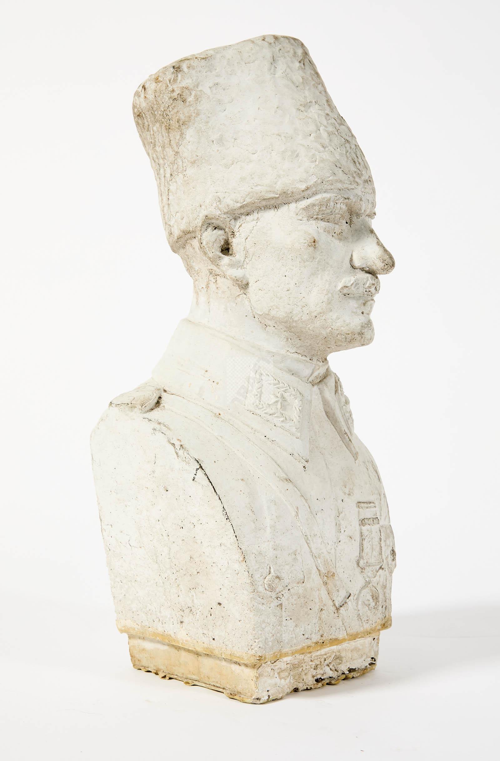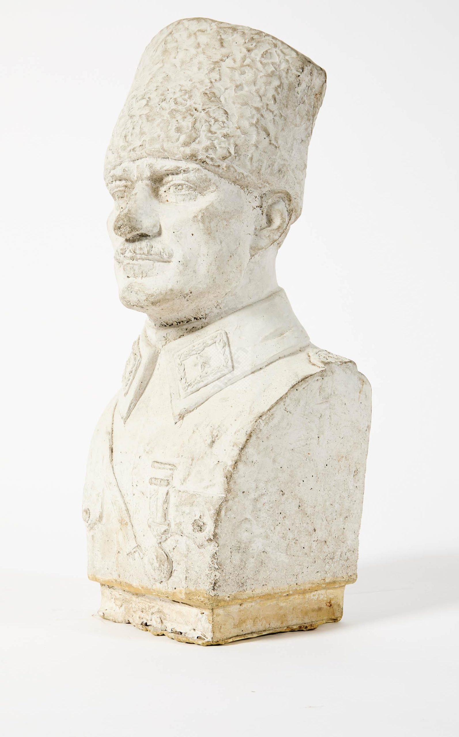 Rare et beau portrait sculpté en buste de Mustapha Atatürk en plâtre original.