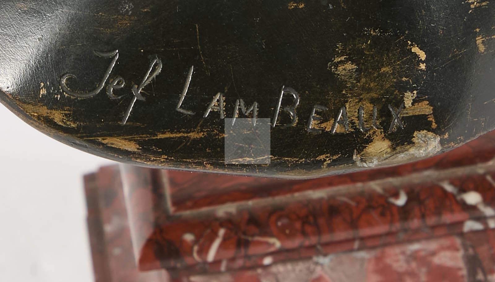 Lot n°316 - 316 Jef LAMBEAUX (1852-1908) Satyre Buste en bronze patiné signé (Etat d'usage) Socle