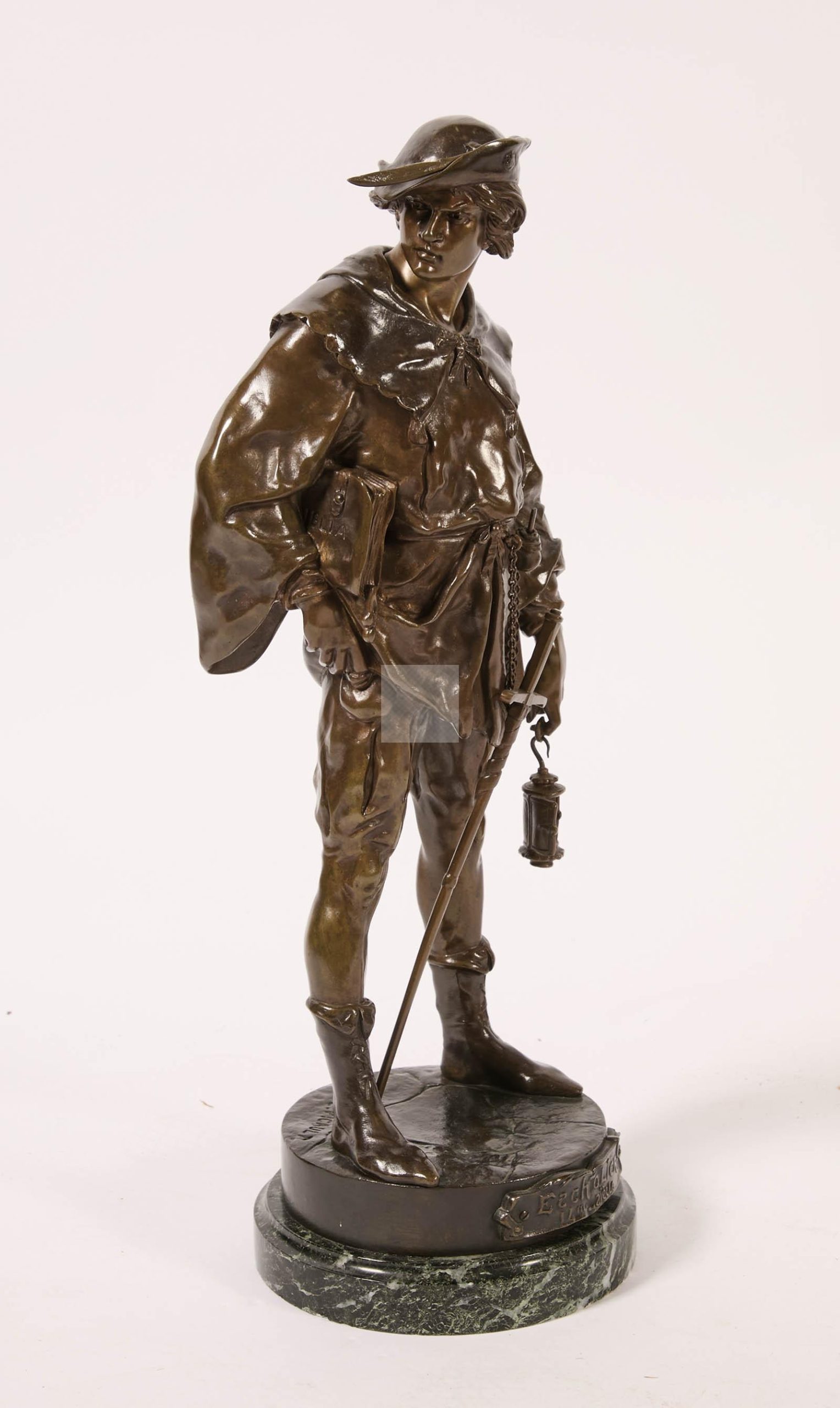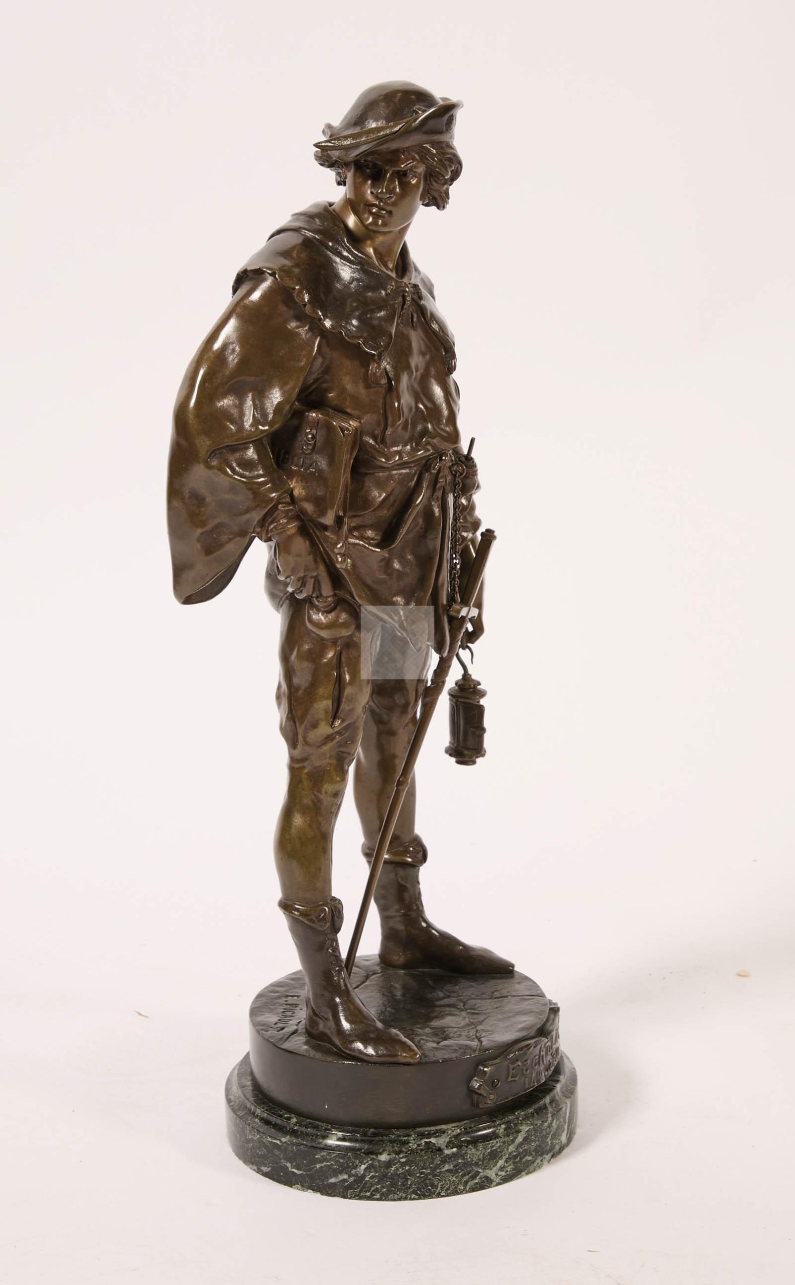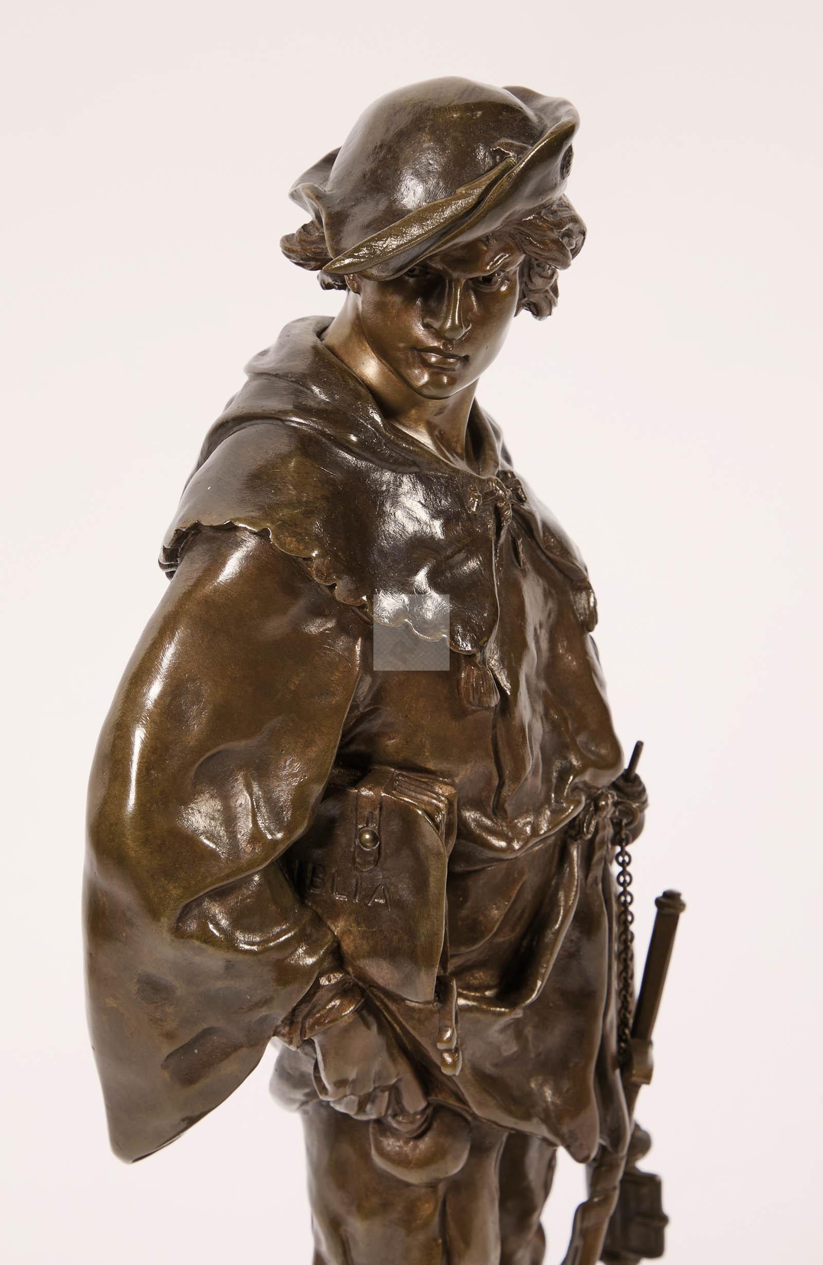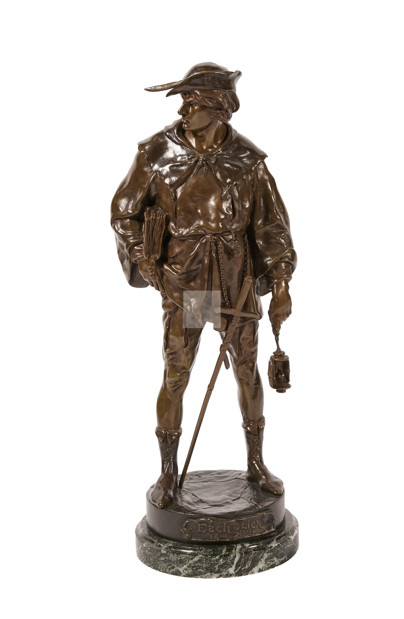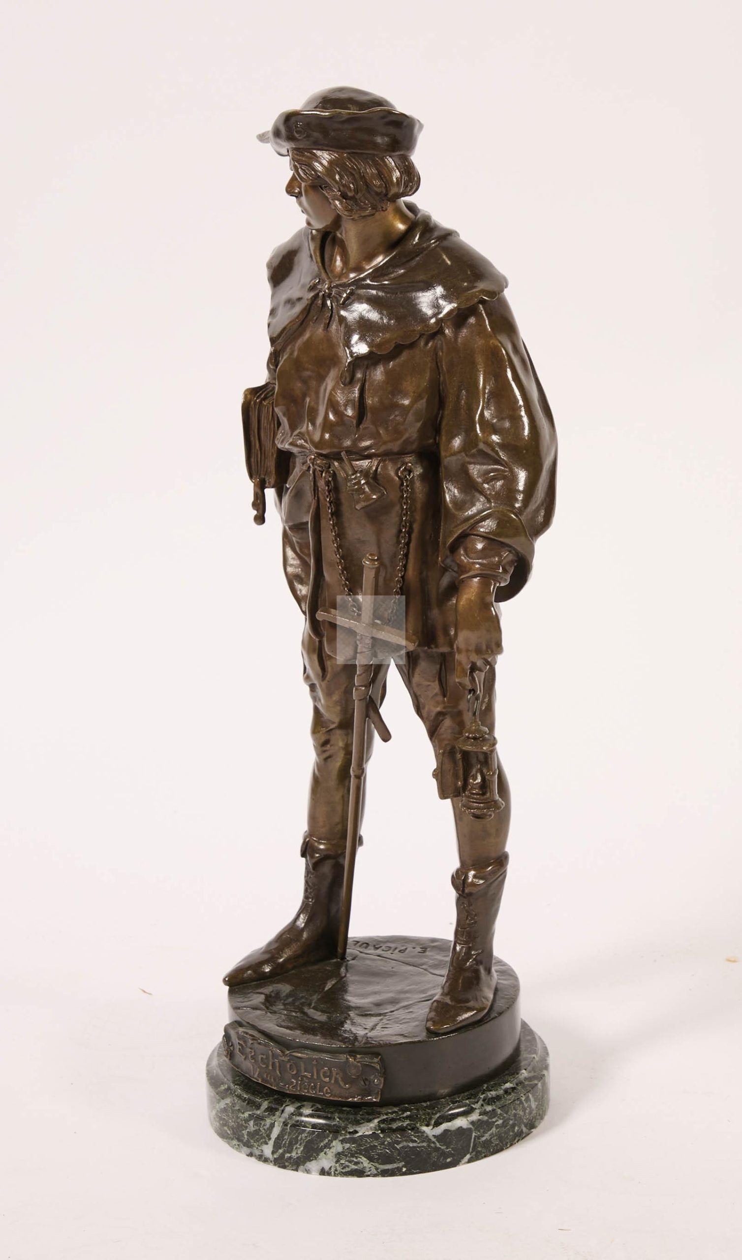 Sculpture en bronze, fonte d’édition ancienne signée sur la terasse, socle en marbre portor