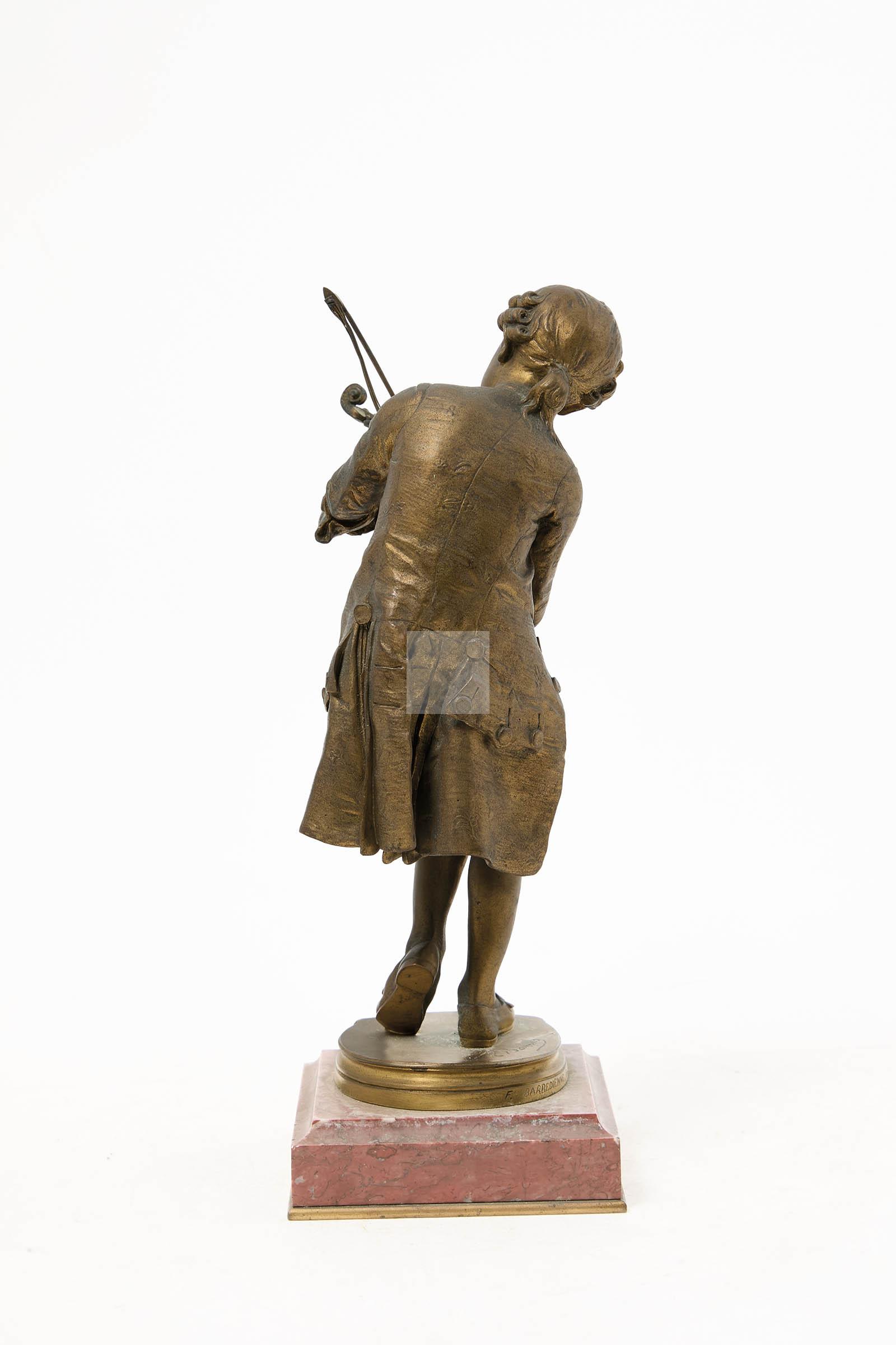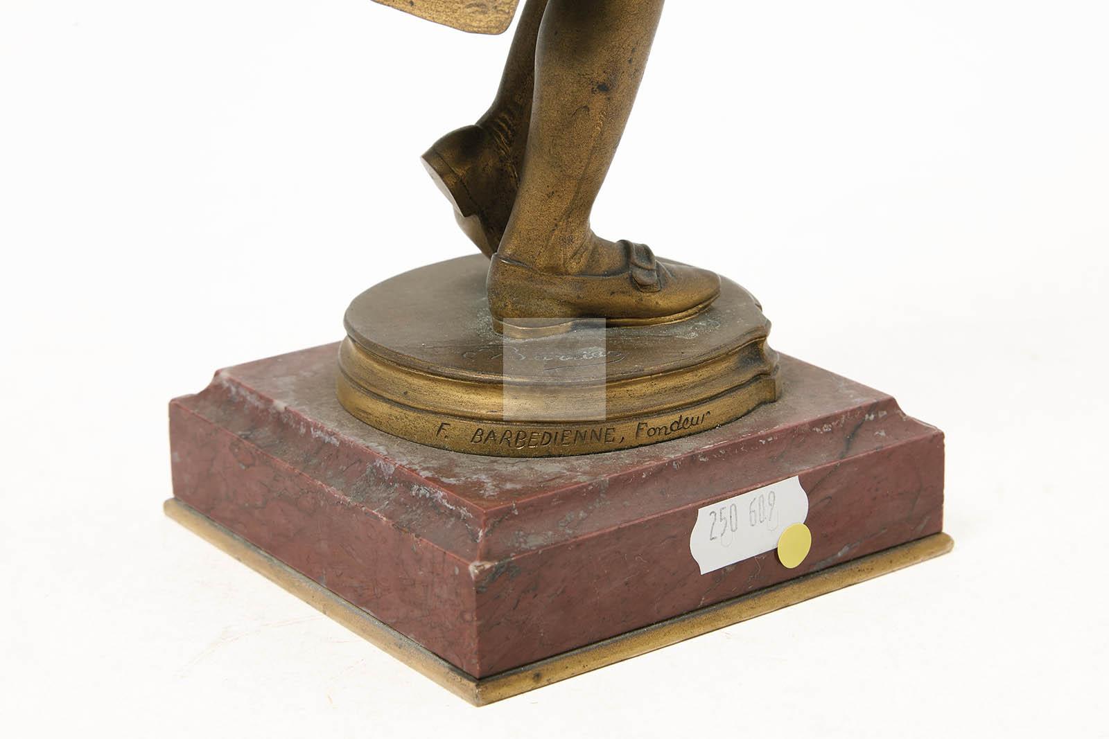 Sculpture en bronze à patine doré, fonte ancienne de Barbedienne, socle en marbre