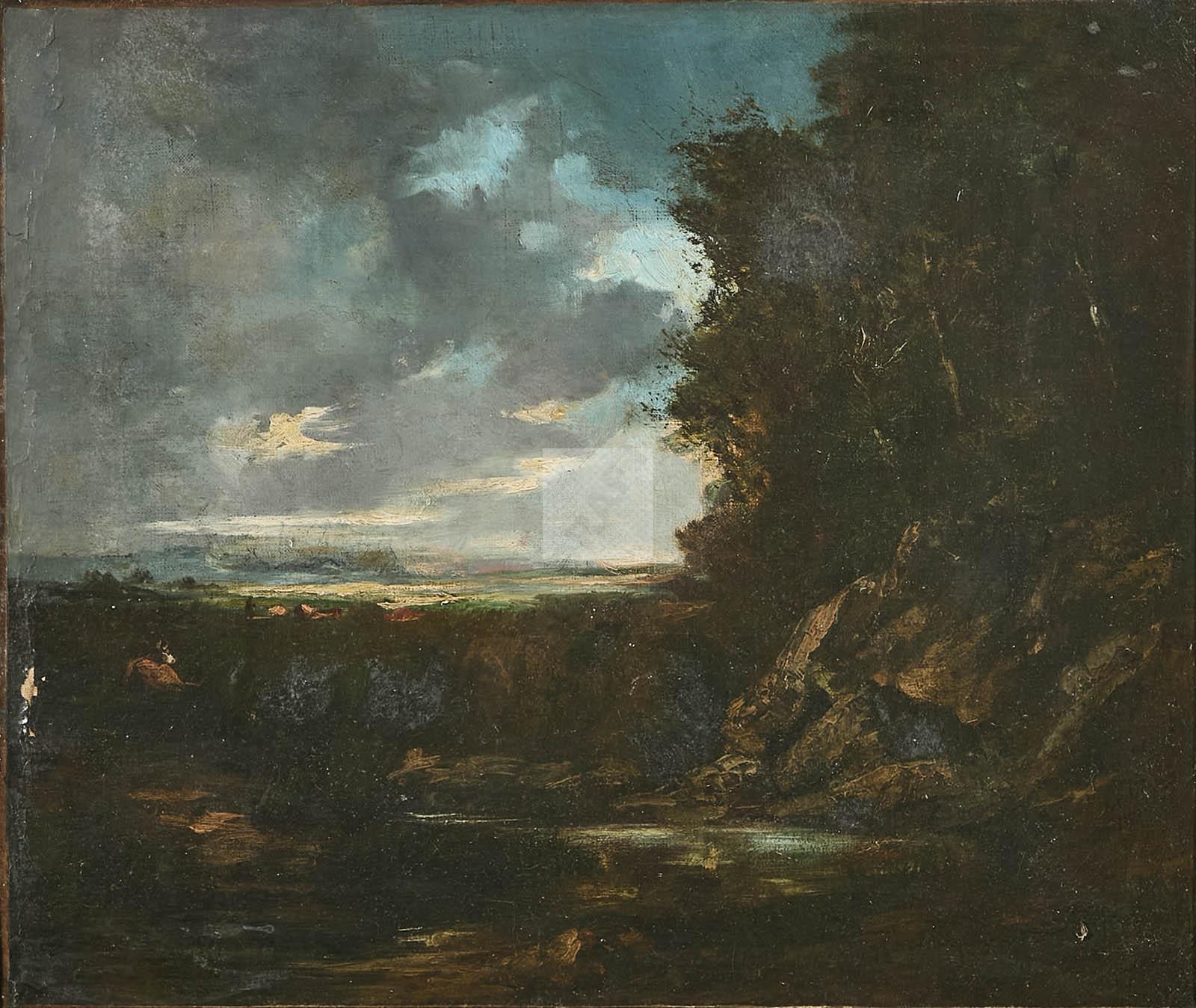 Lot n°395 - 395 Louis CABAT (1812-1893) Paysage champêtre Huile sur toile Signée en bas à