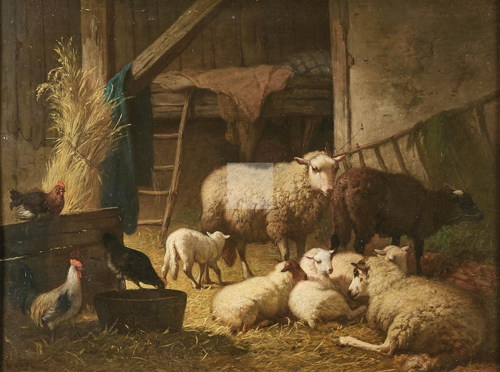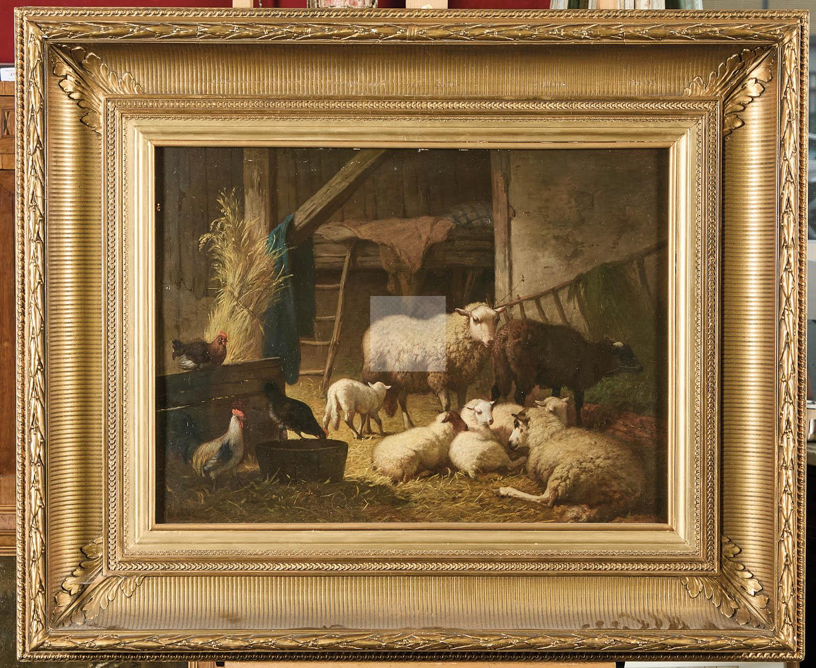 Lot n°434 - 434 Louis ROBBE (1806-1887) L'étable Huile sur panneau d'acajou signée en