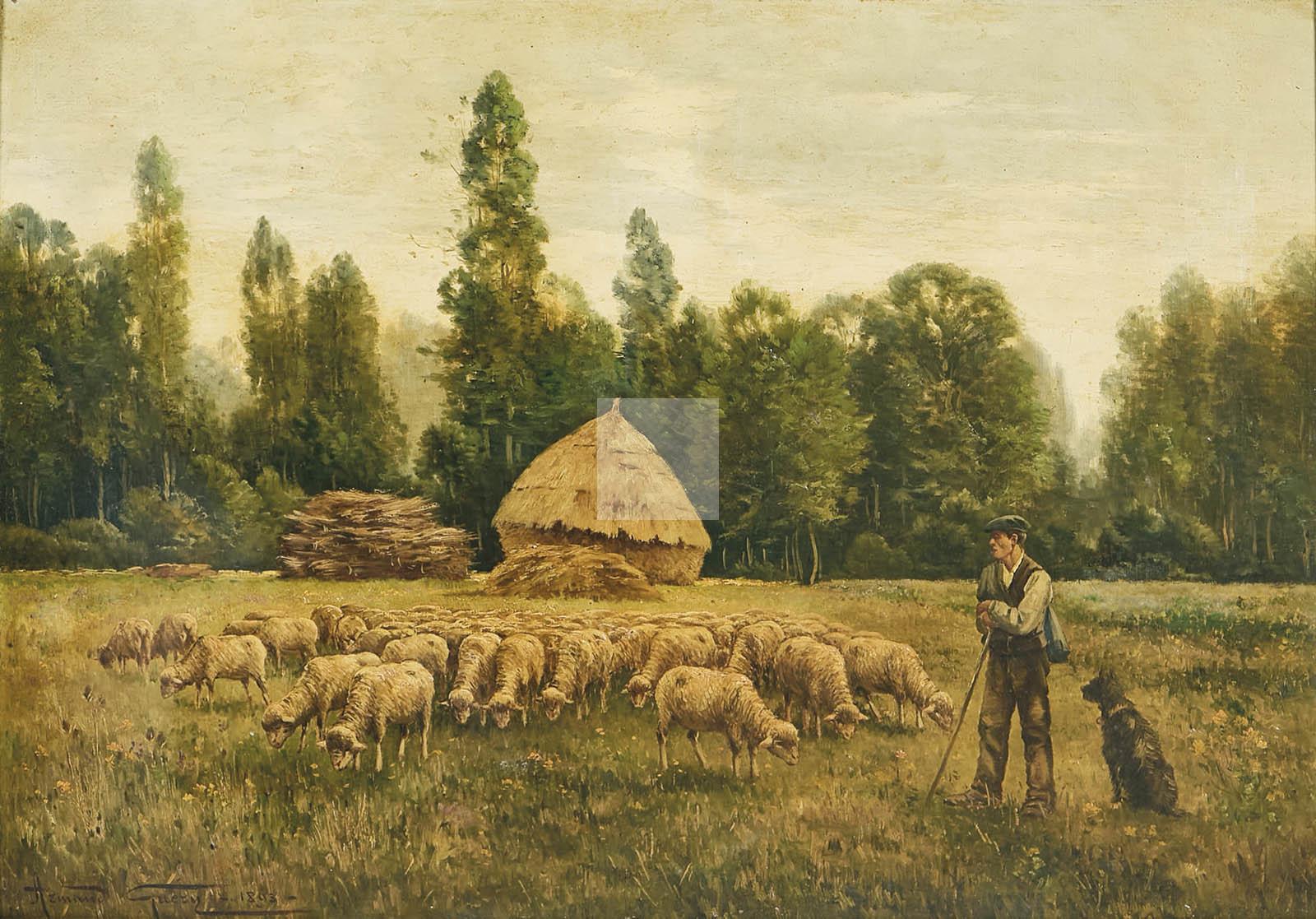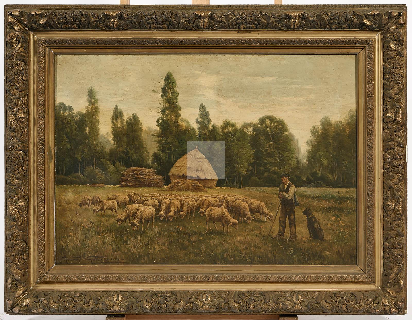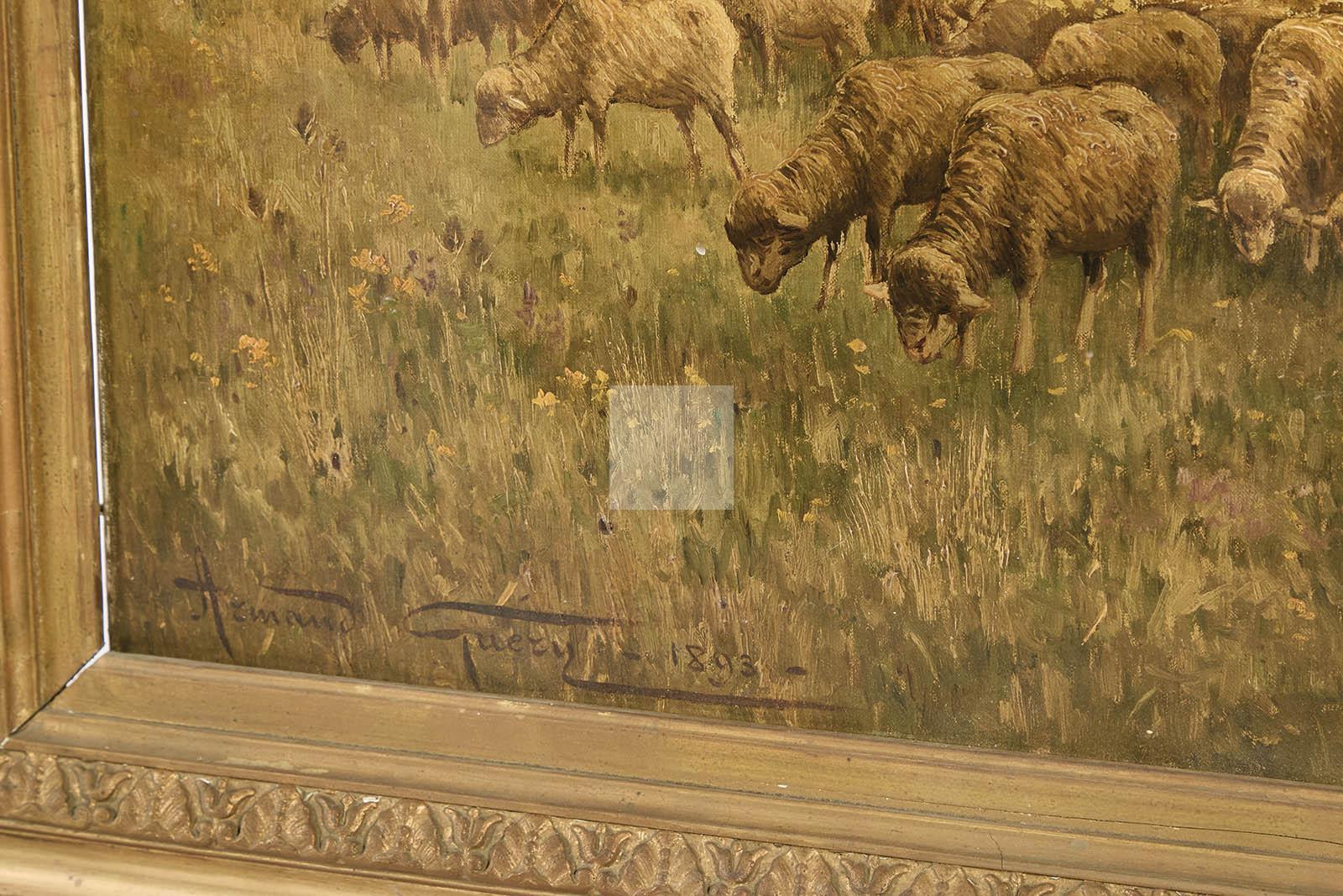 Lot n°435 - 435 Armand GUERY (1850-1912) Troupeau de moutons dans un paysage, 1893 Huile