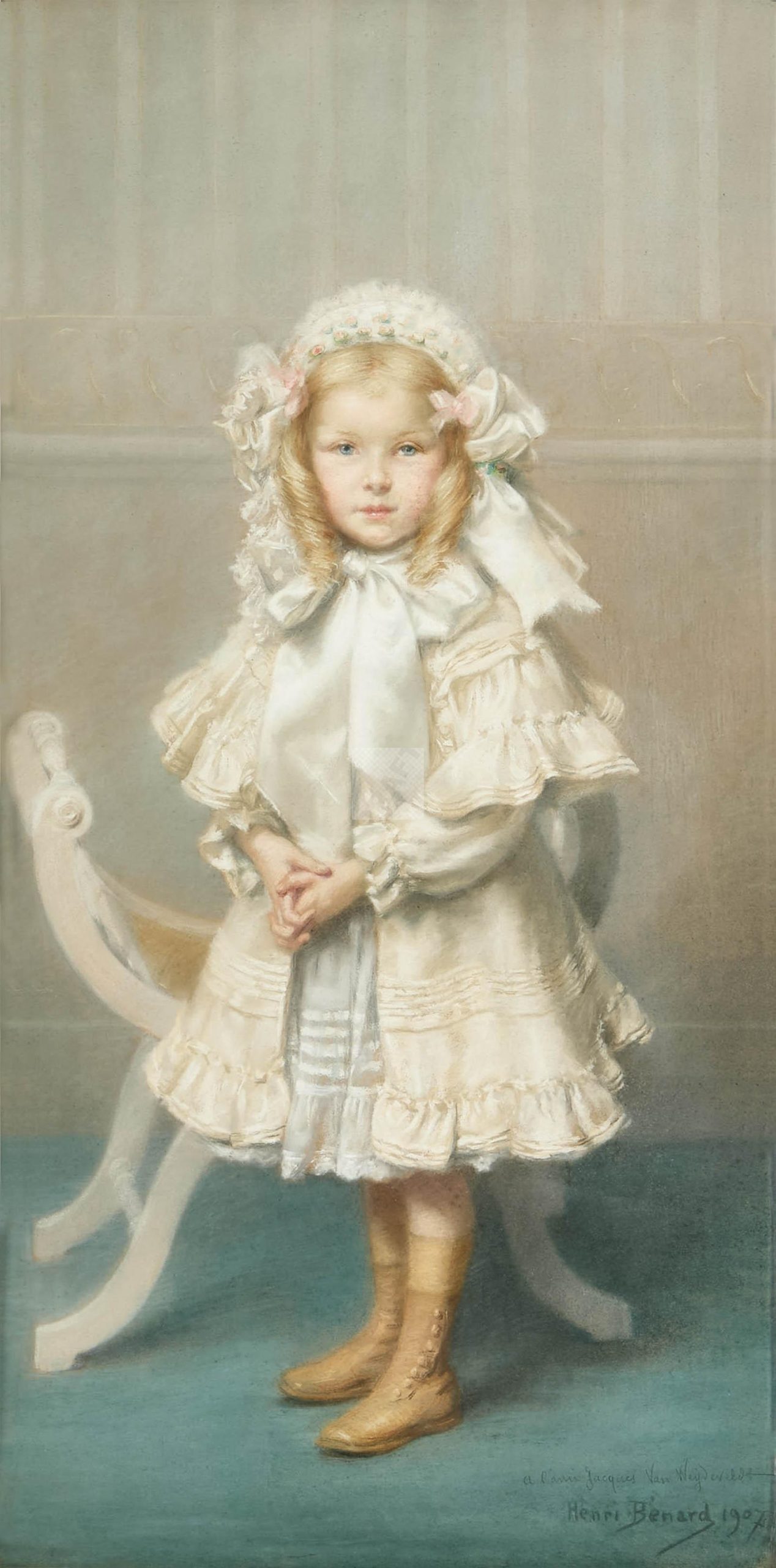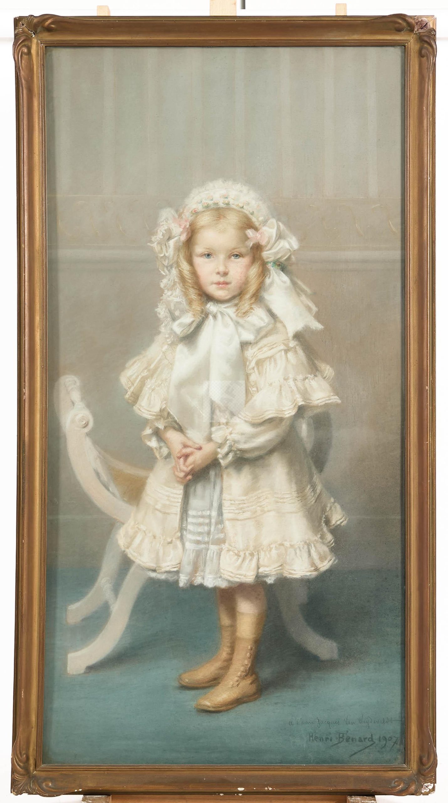 Lot n°473 - 473 Henri BENARD (1860-1927) Portrait de fillette au bonnet de dentelle,