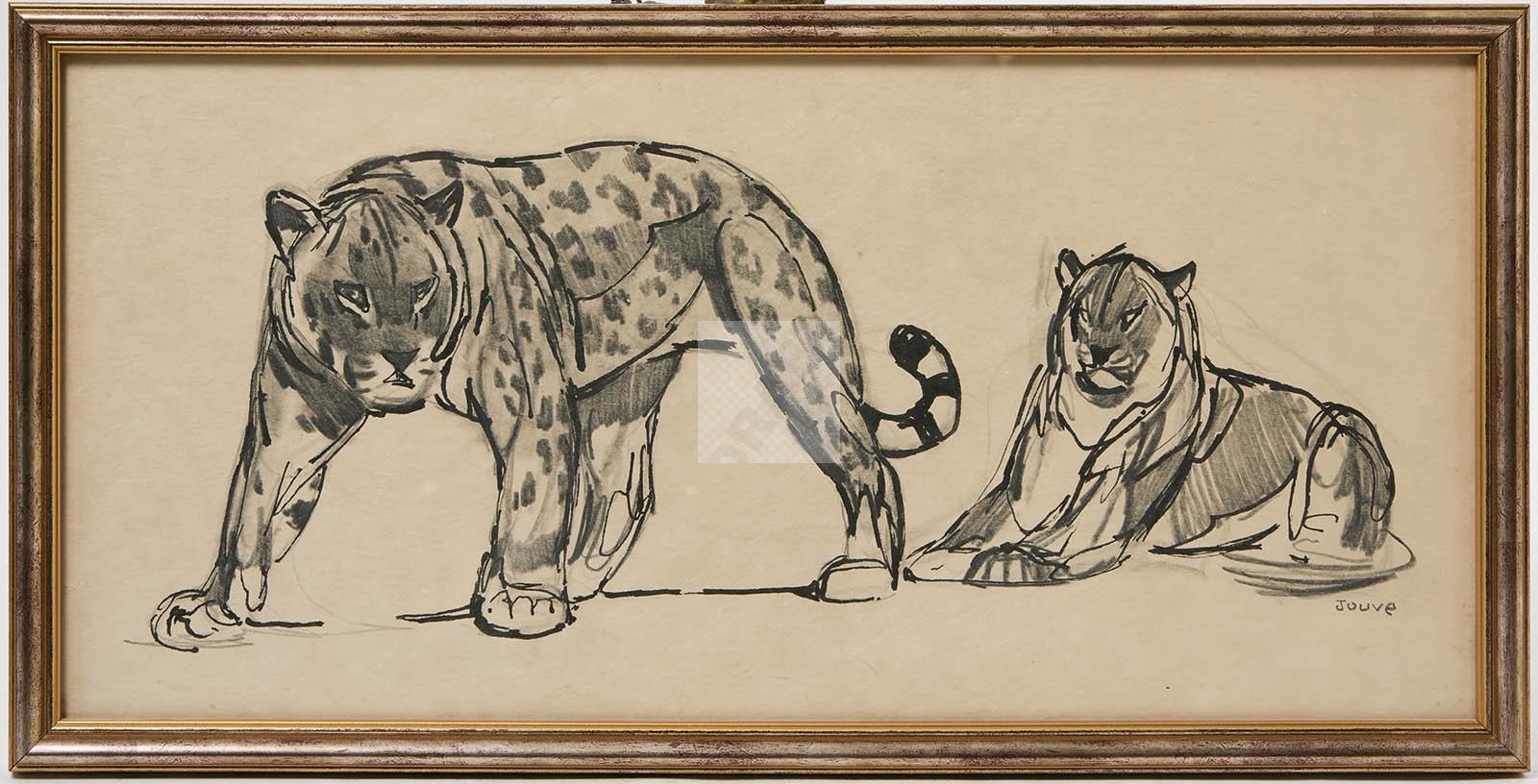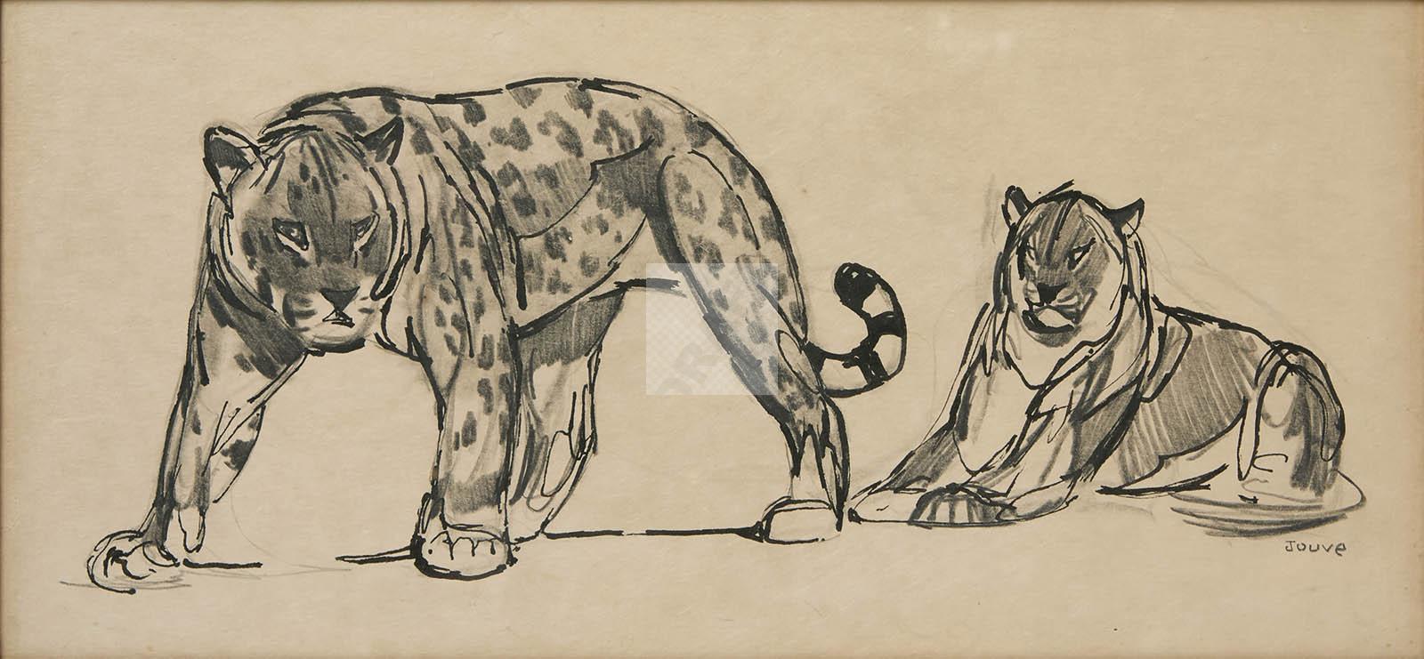 Lot n°479 - 479 Paul JOUVE (1880-1973), Les deux panthères, vers 1950, Crayon gras