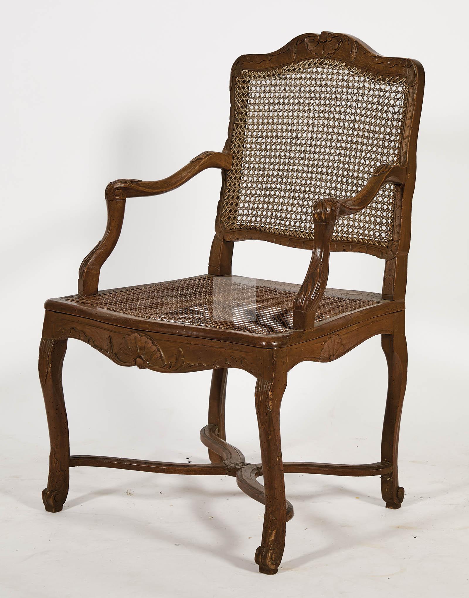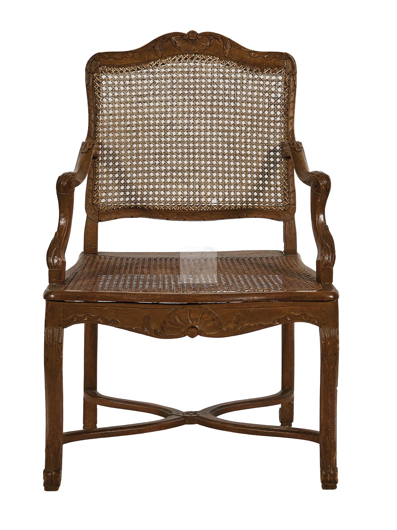 Lot n°507 - 507 Fauteuil à fond de canne en hêtre sculpté de motifs de coquilles e