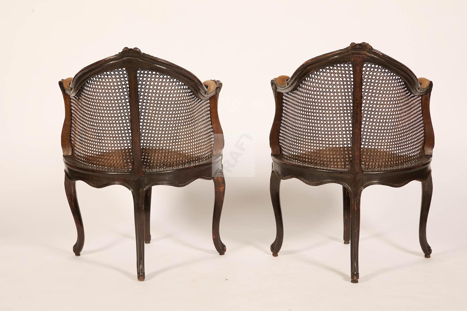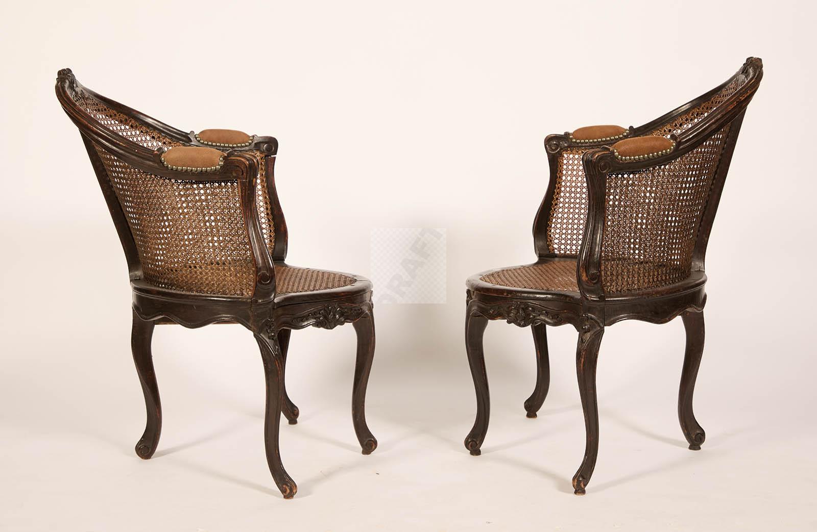 Lot n°510 - 510 Rare paire de fauteuils de bureau à fond de cannes en hêtre sculpté de fleur