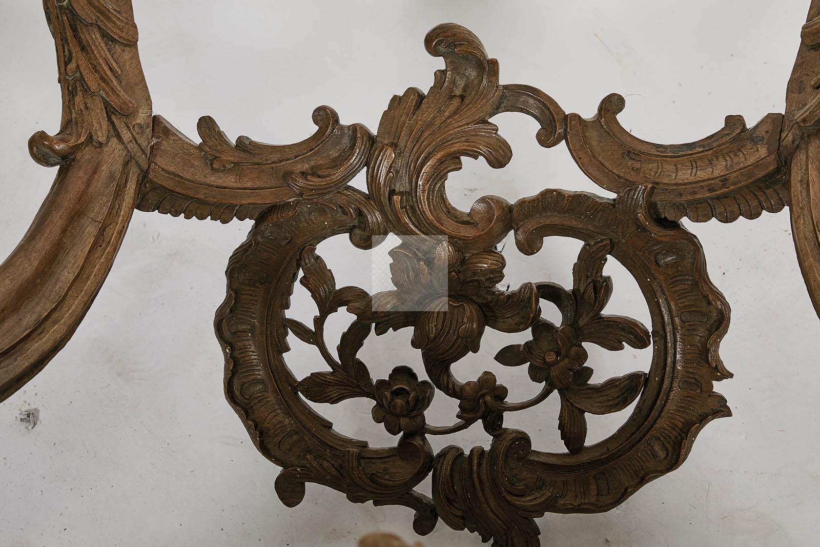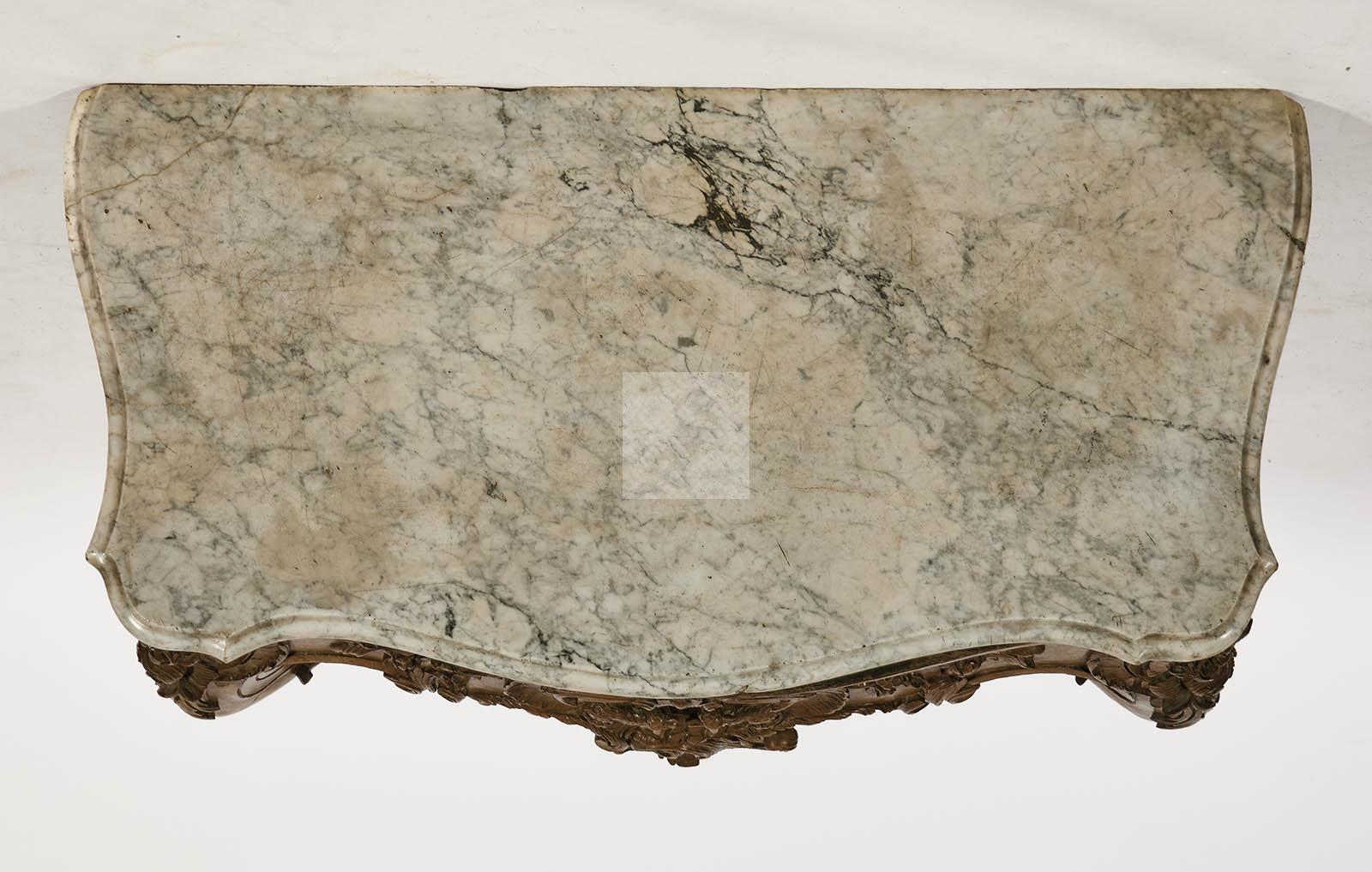Lot n°512 - 512 Console en noyer mouluré richement sculpté de motifs de coquilles ajourées,