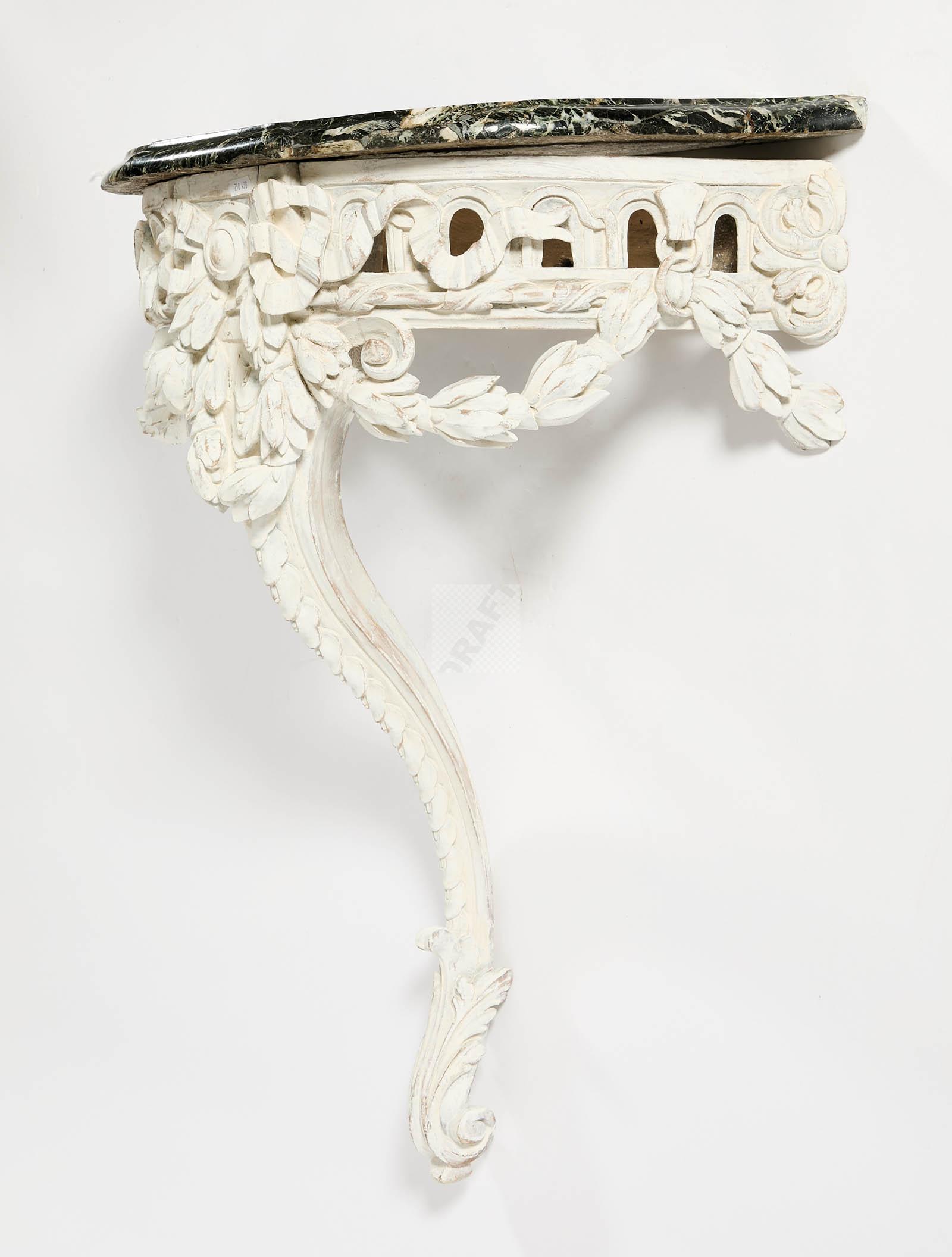Lot n°529 - 529 Console en bois relaqué à décor sculpté de noeuds, rubans, guirlandes feuill