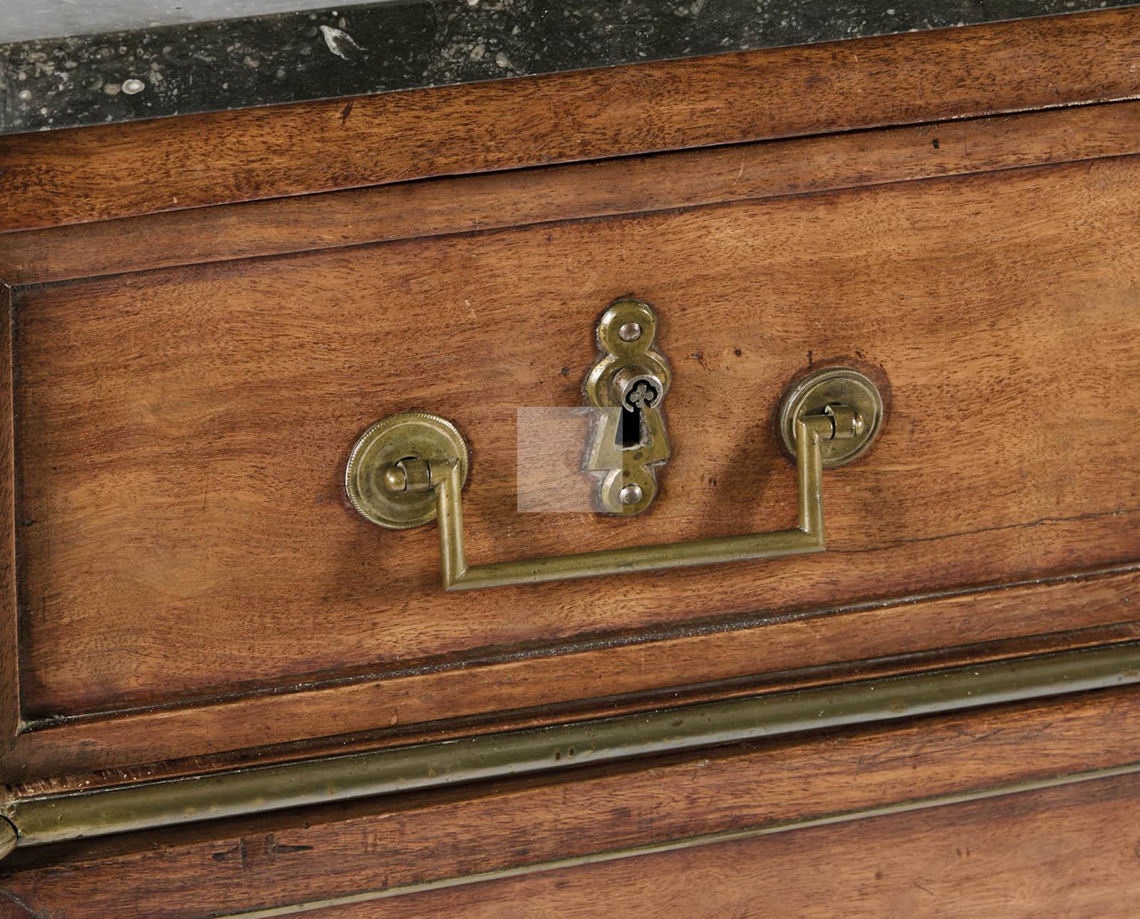 (quelques garnitures de laiton manquantes et fentes au tiroir du milieu et sur les côtés).