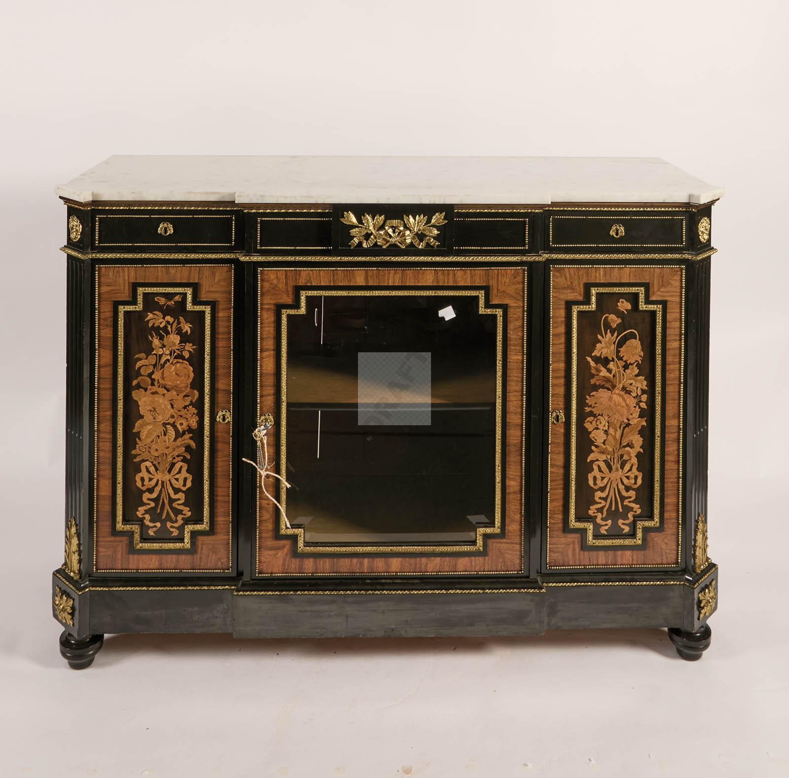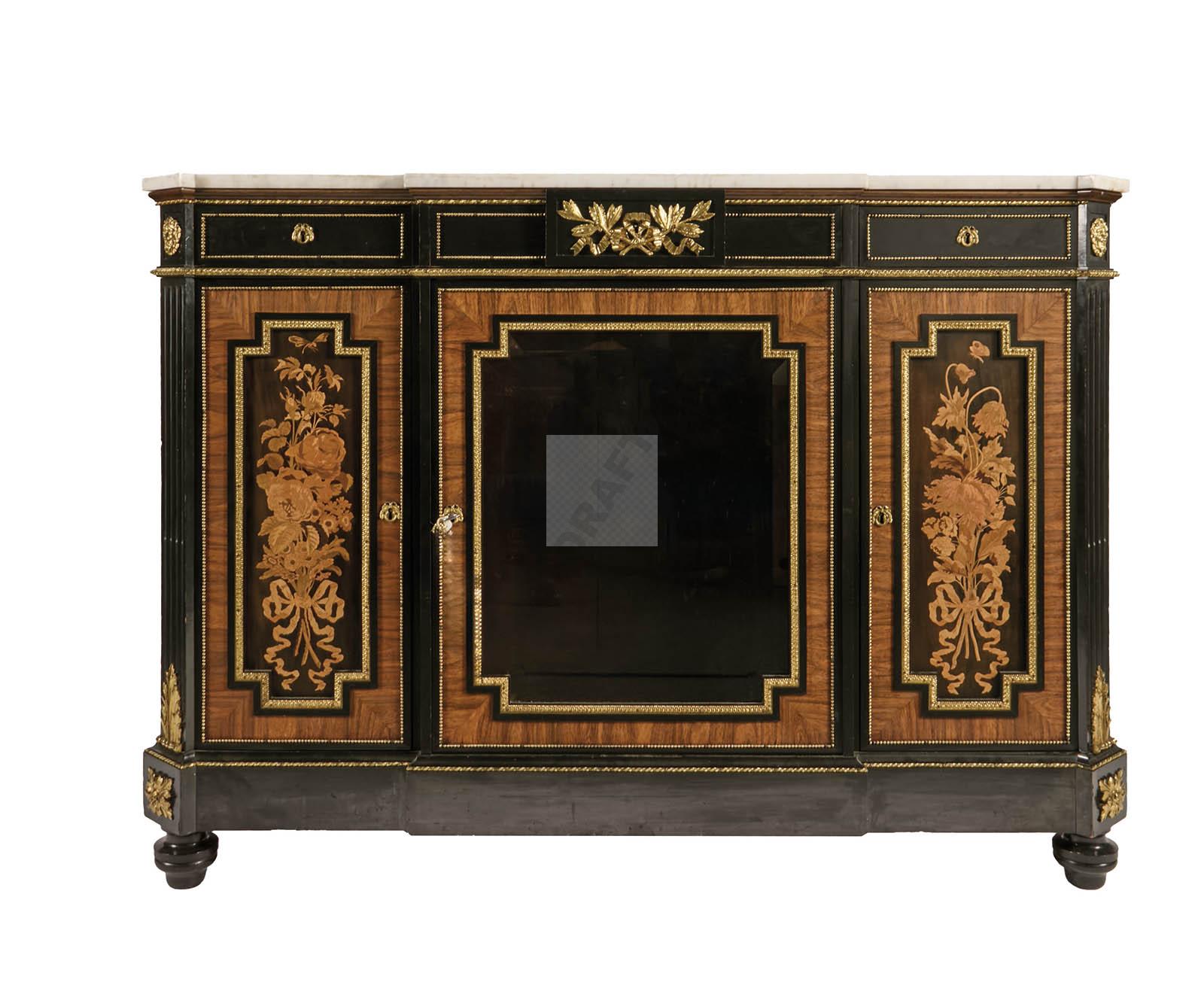 Lot n°543 - 543 Buffet à hauteur d’appui en bois de placage à décor marqueté de branchages f