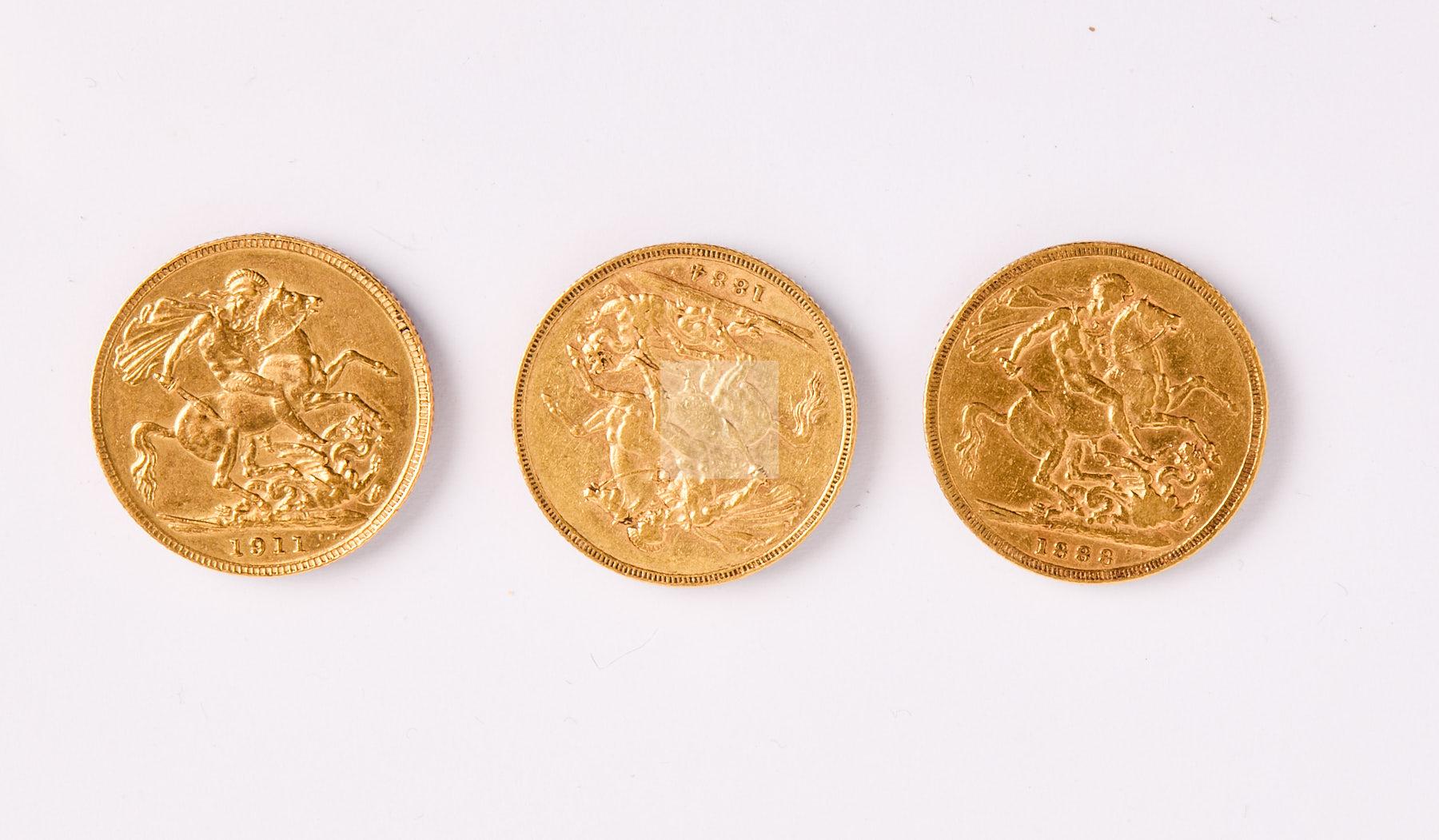12 Trois souverains en or 23,8g