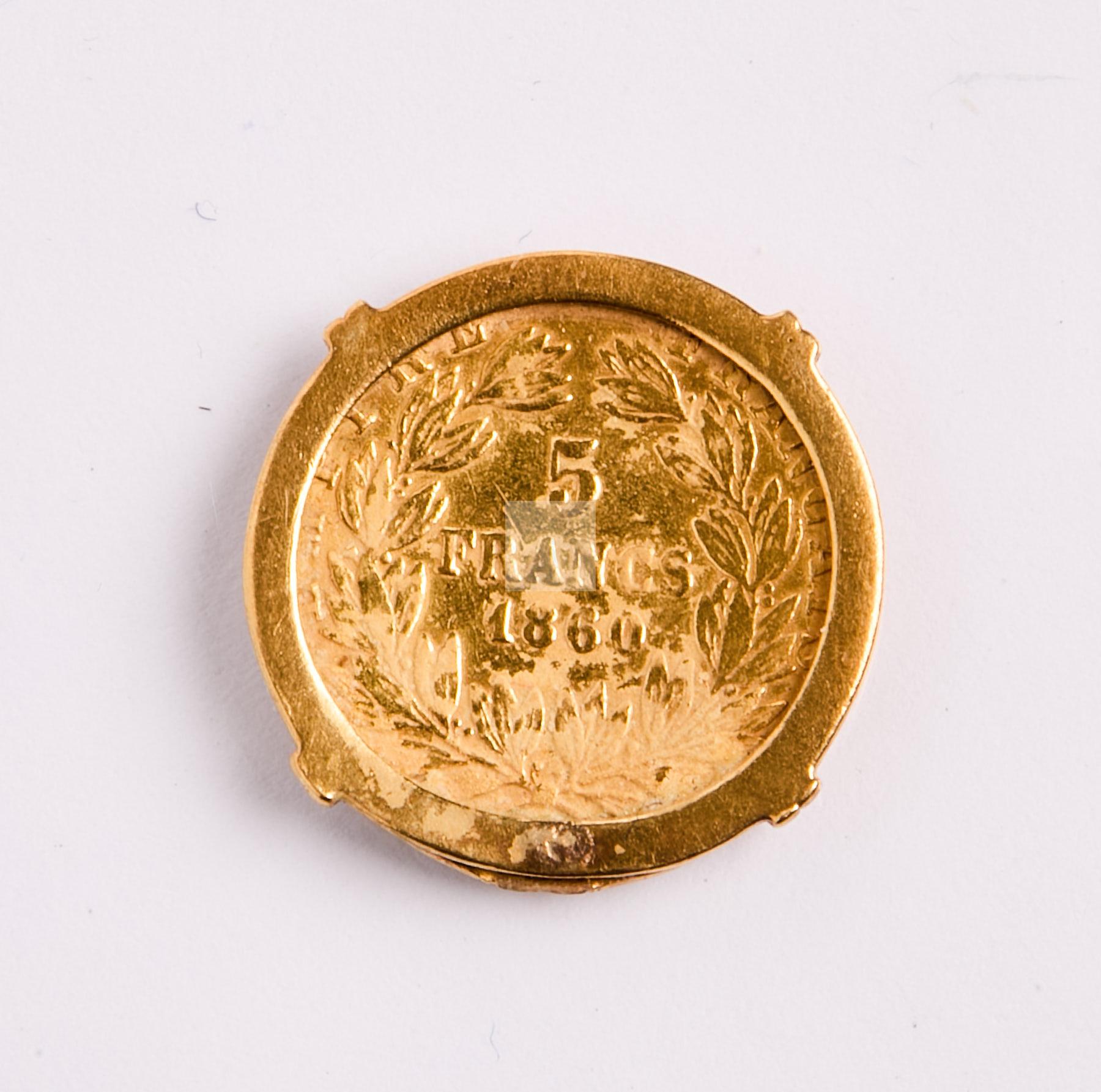 Lot n°13 - 13 Moulage d’une pièce de cinq francs avec élément de monture or 750/1000 2,11g