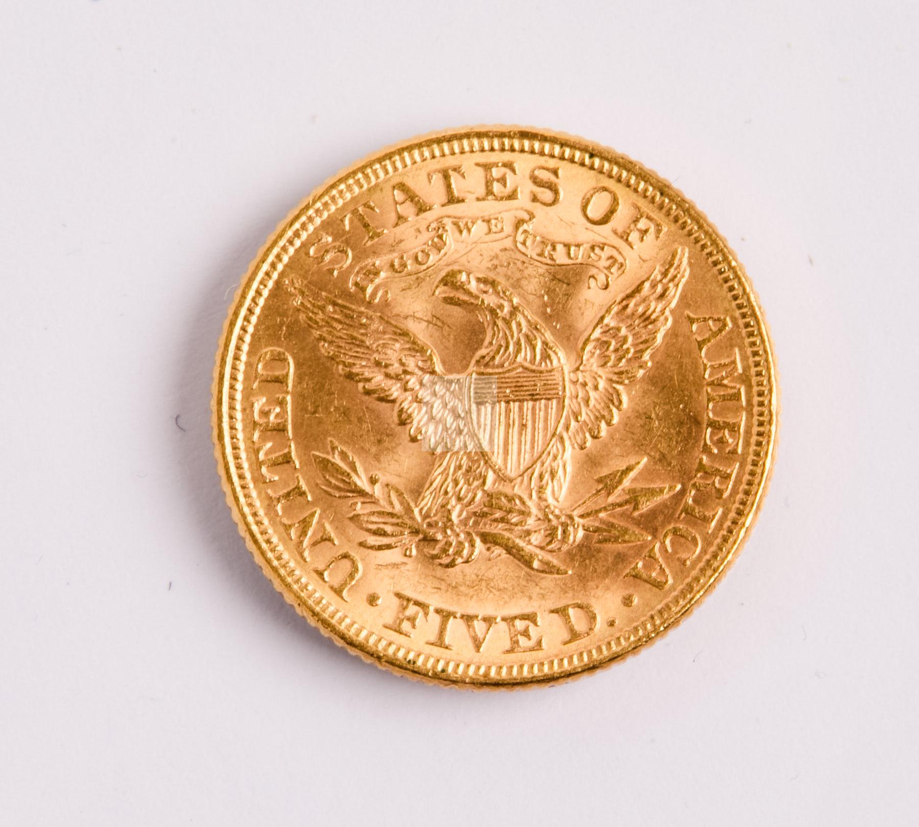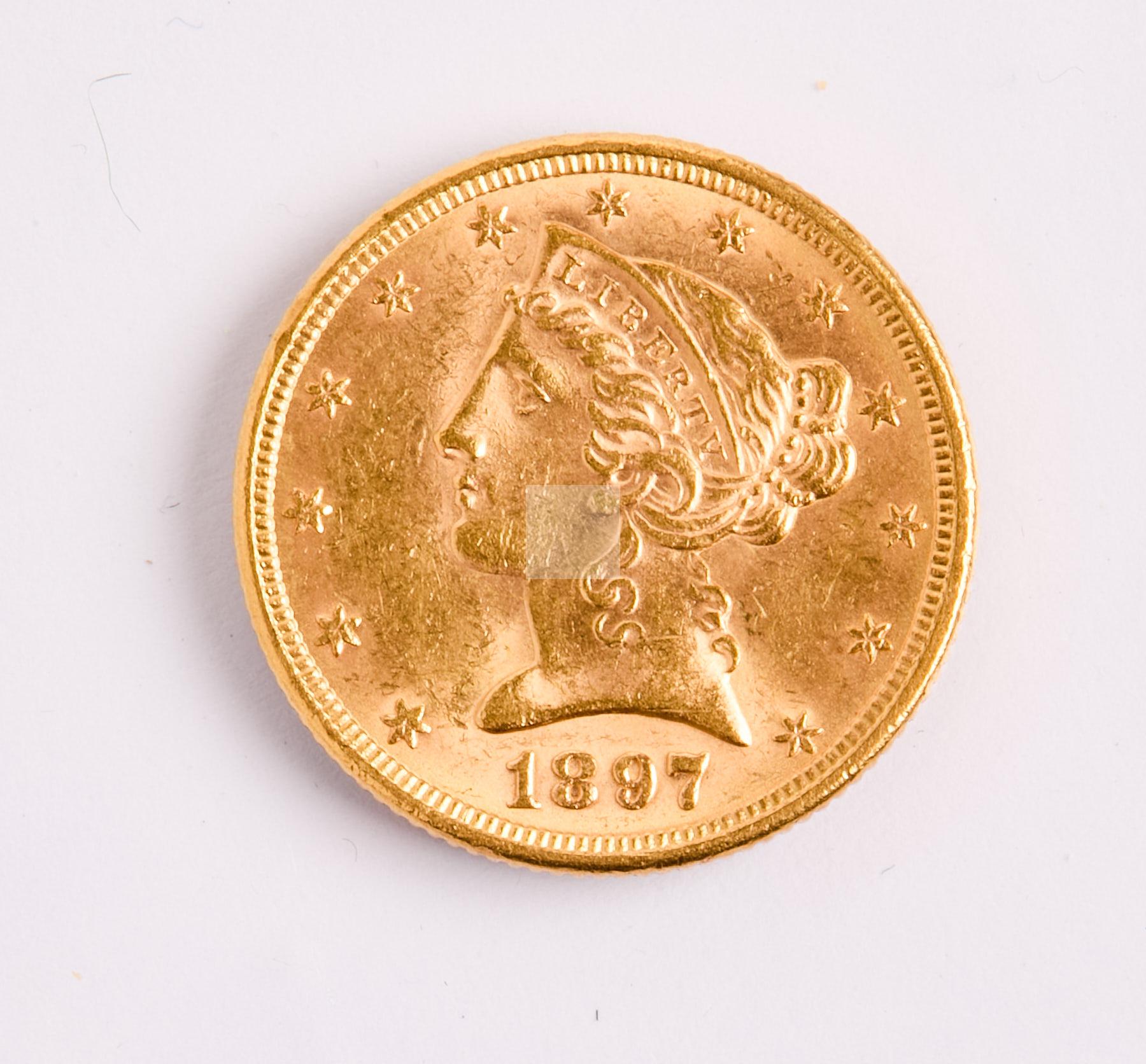 14 Une pièce de cinq dollars 1897 or 8,3 g