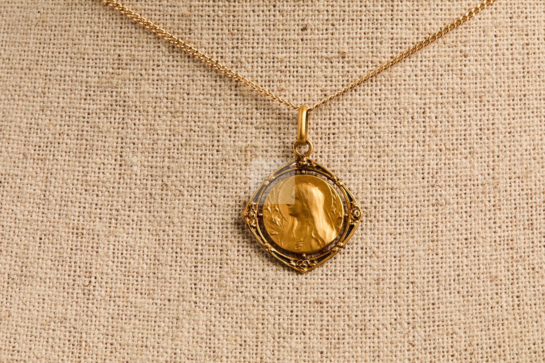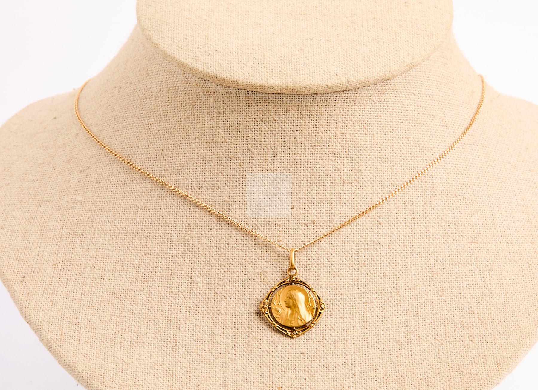 Lot n°40 - 40 Médaille vierge gravée Denise et sa chaine en or 750/1000.