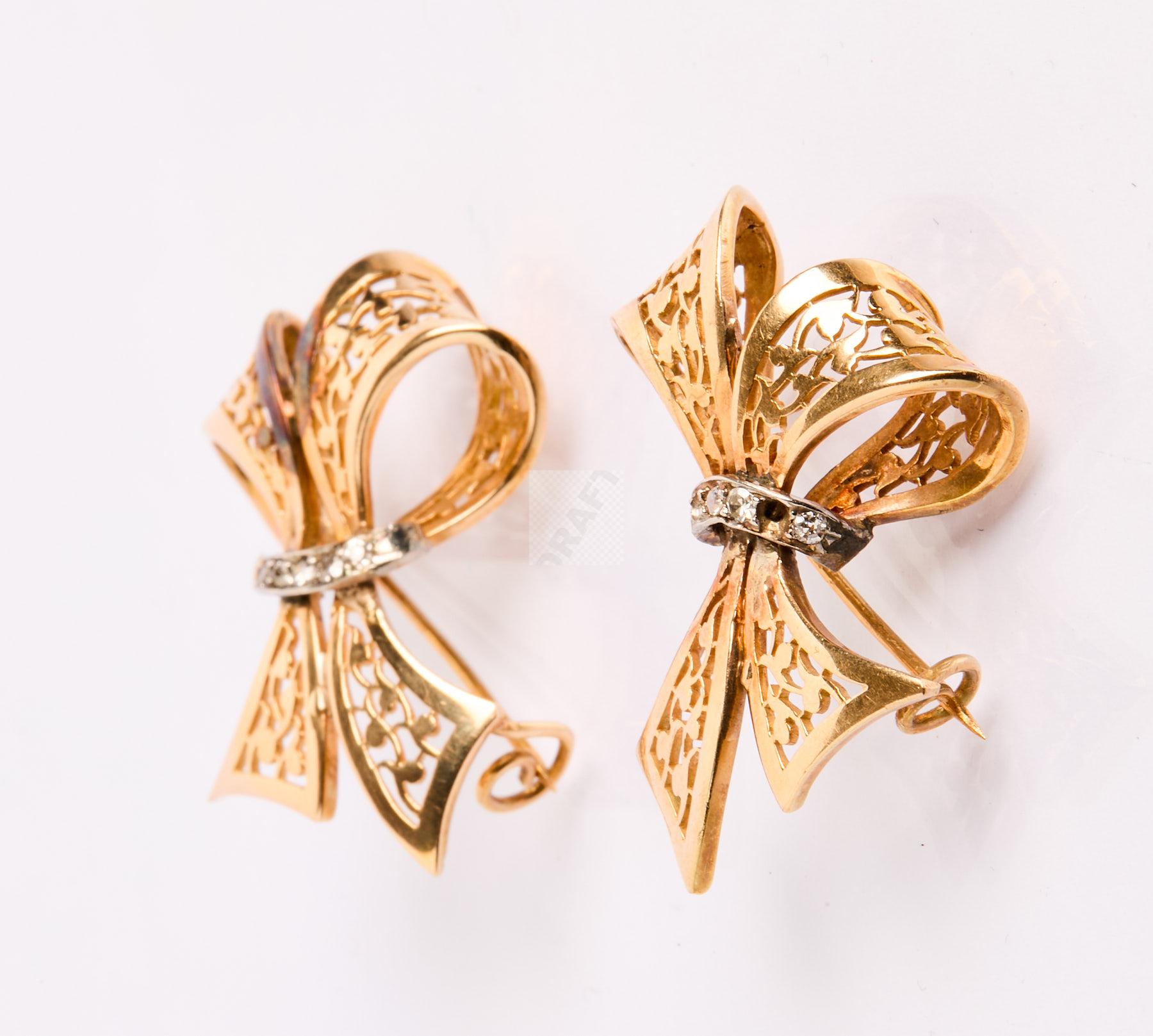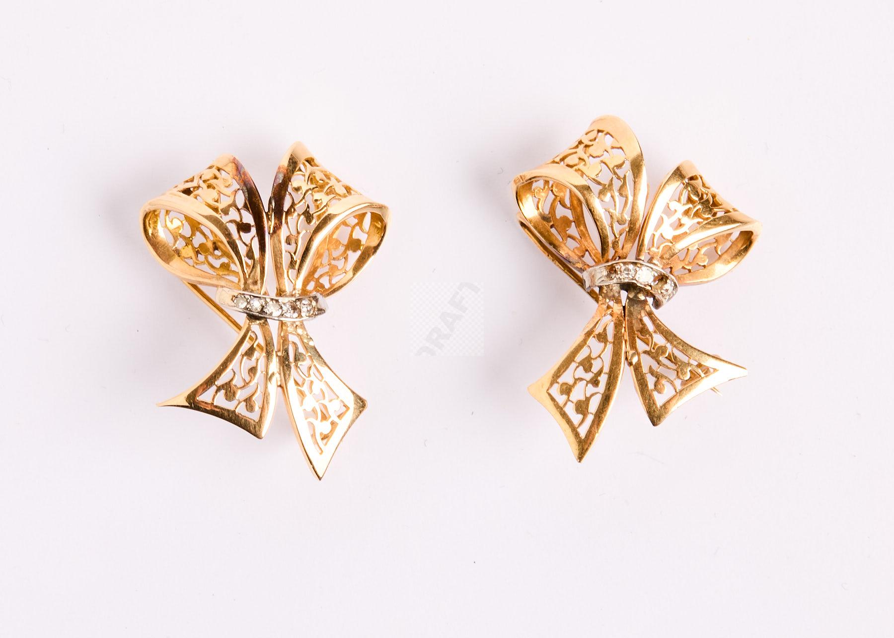 42 Paire de clips de revers en or gris et or jaune, agrémentés chacun d’une ligne de roses de diamants ( manque deux rose )