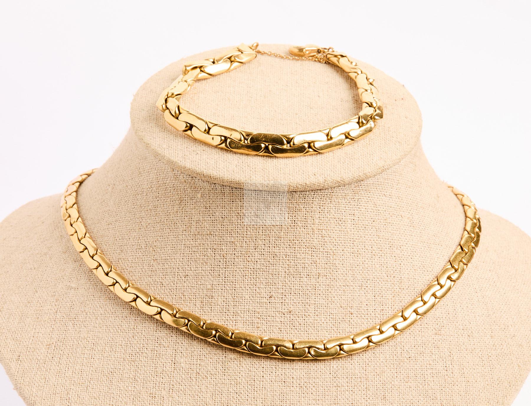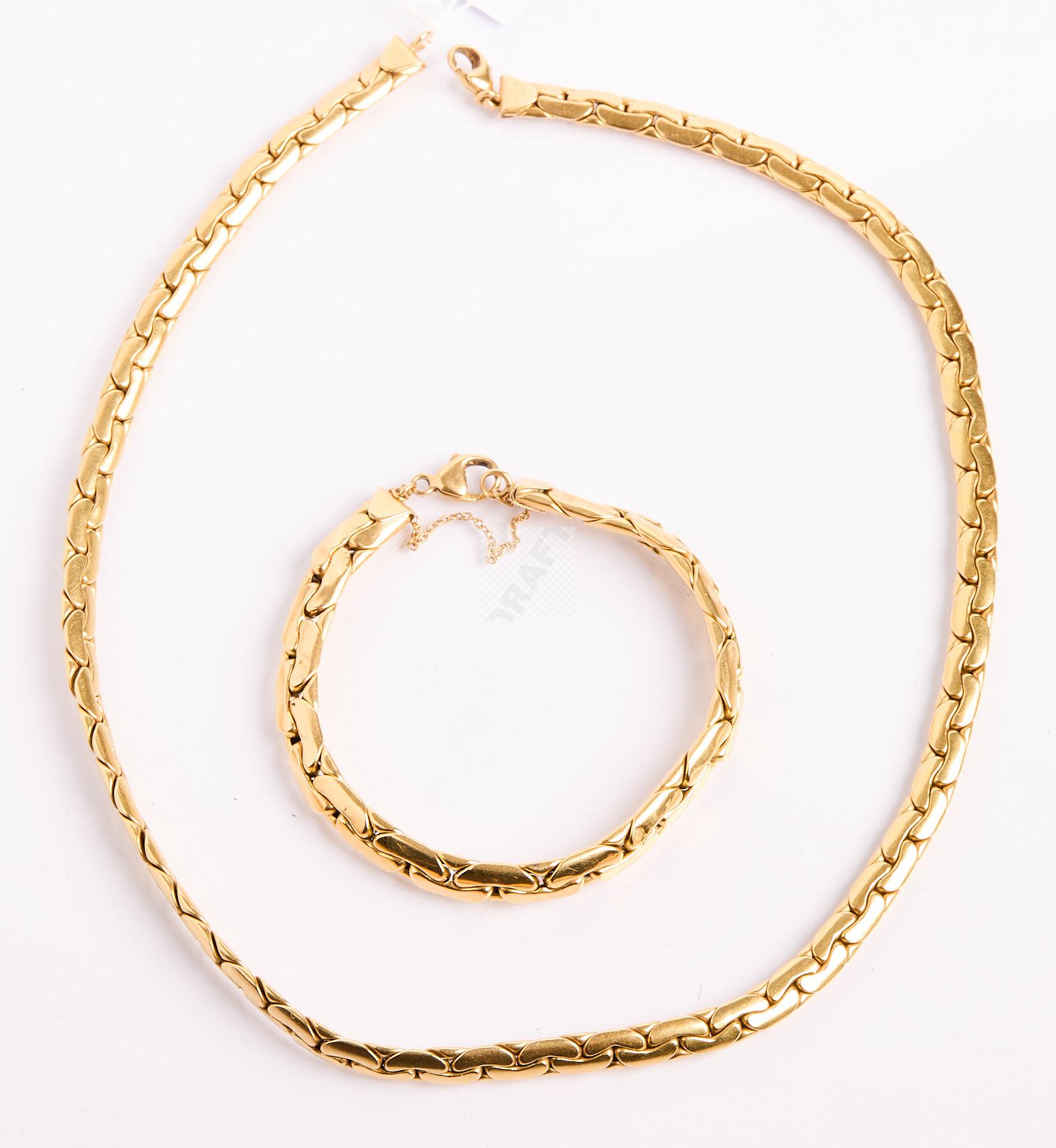 Lot n°53 - 53 Parure en or jaune 750 ‰ composée d’un collier de 45 cm et d’un bracelet mail