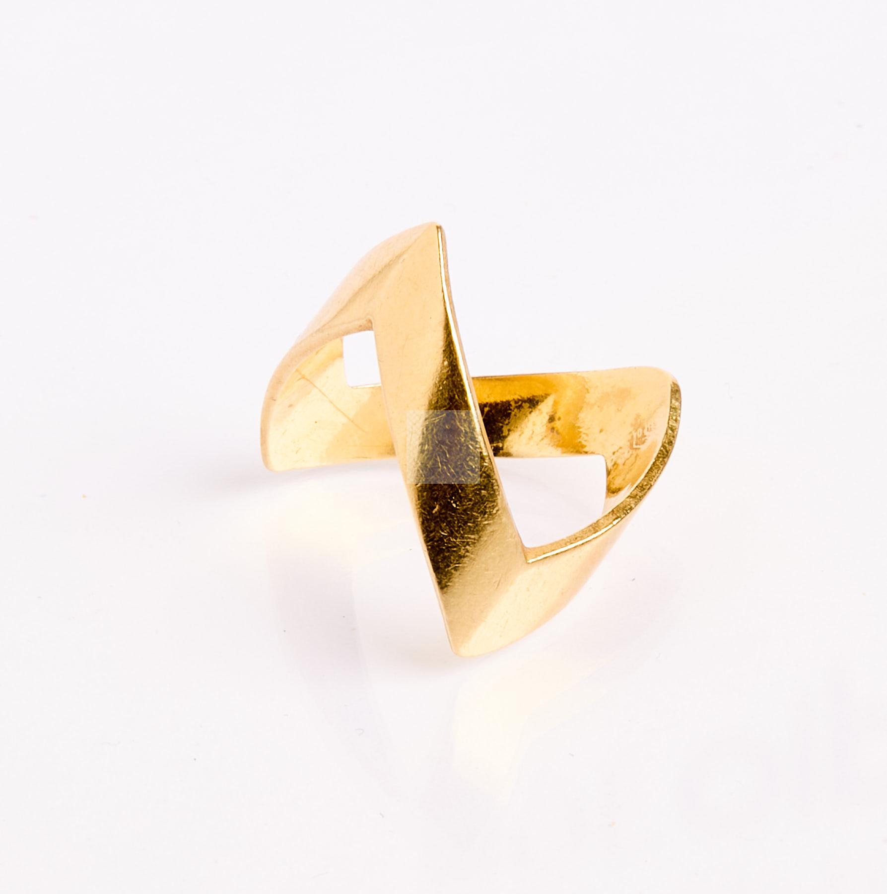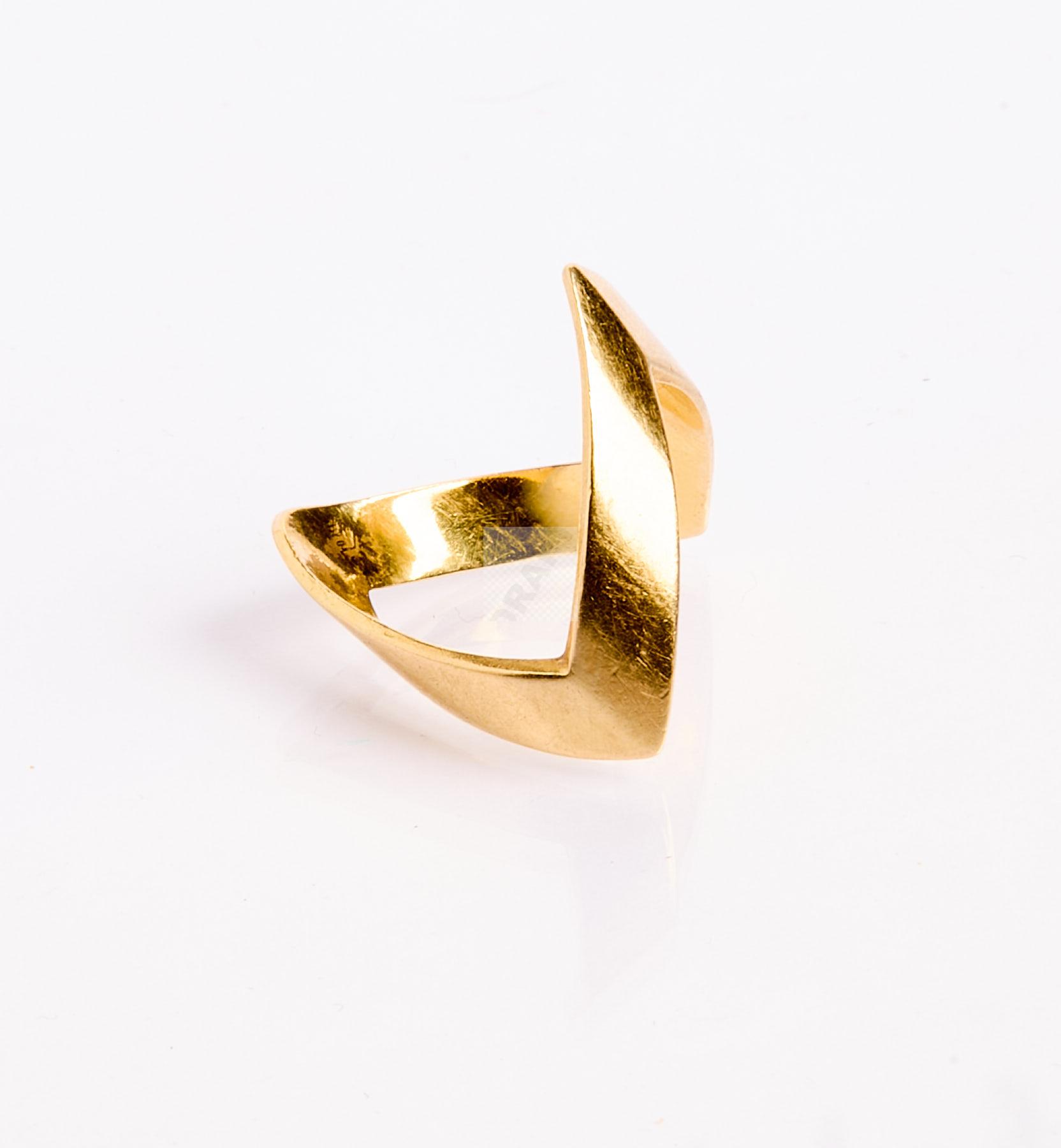 Lot n°91 - 91 Bague en or jaune 750 ‰ en V , tour de doigt 57, poids 5,4 g