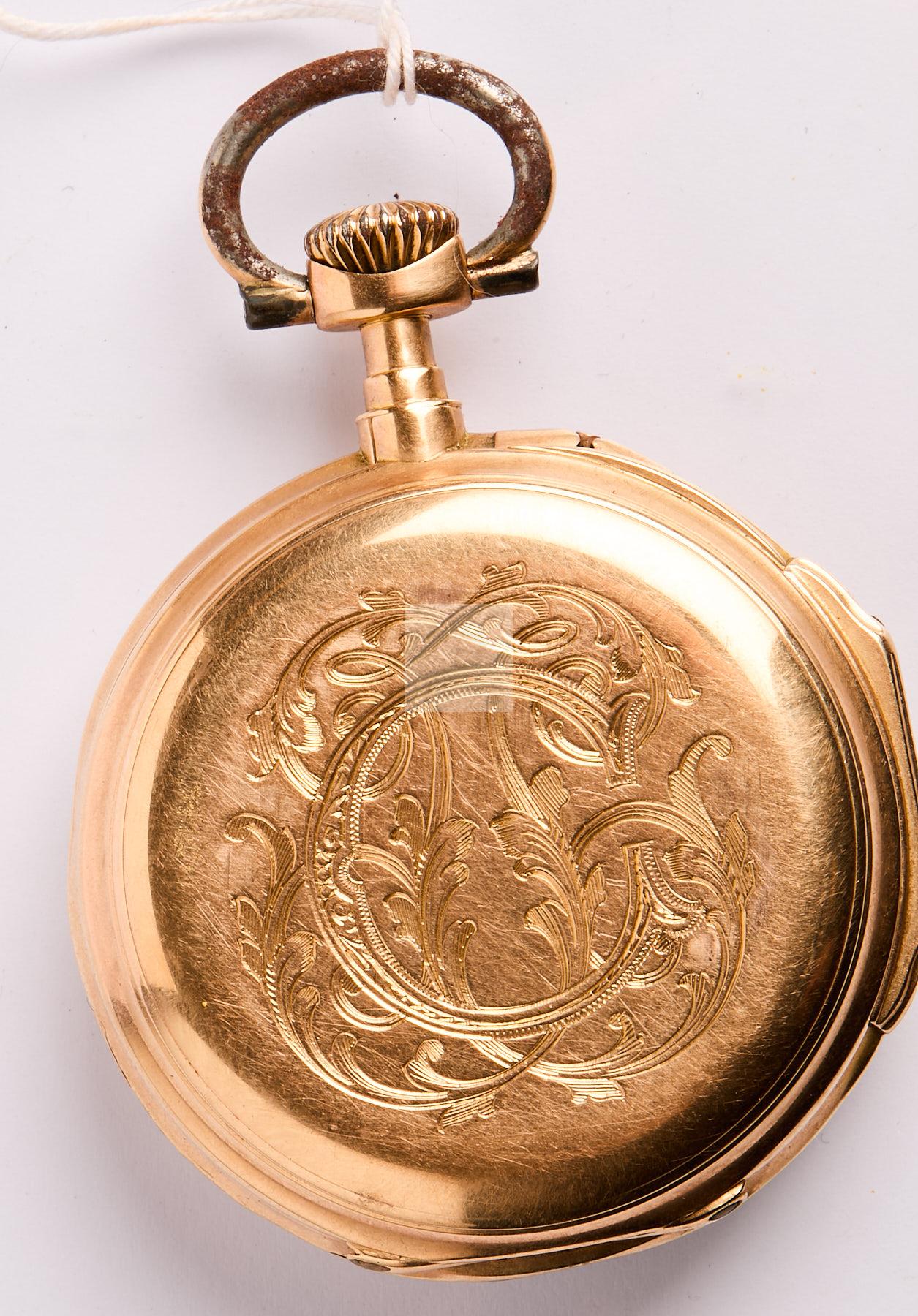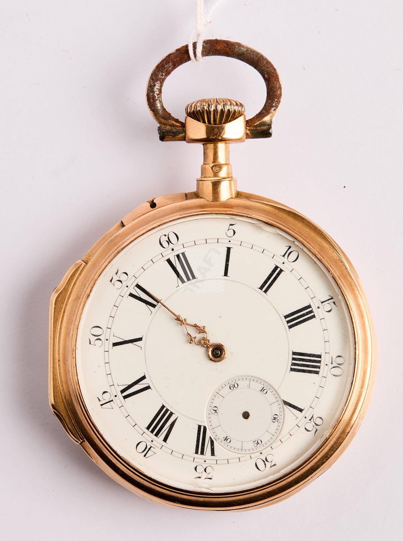 Lot n°104 - 104 Montre de gousset en or jaune 750/ 1000, double boitier or , anneau métal.