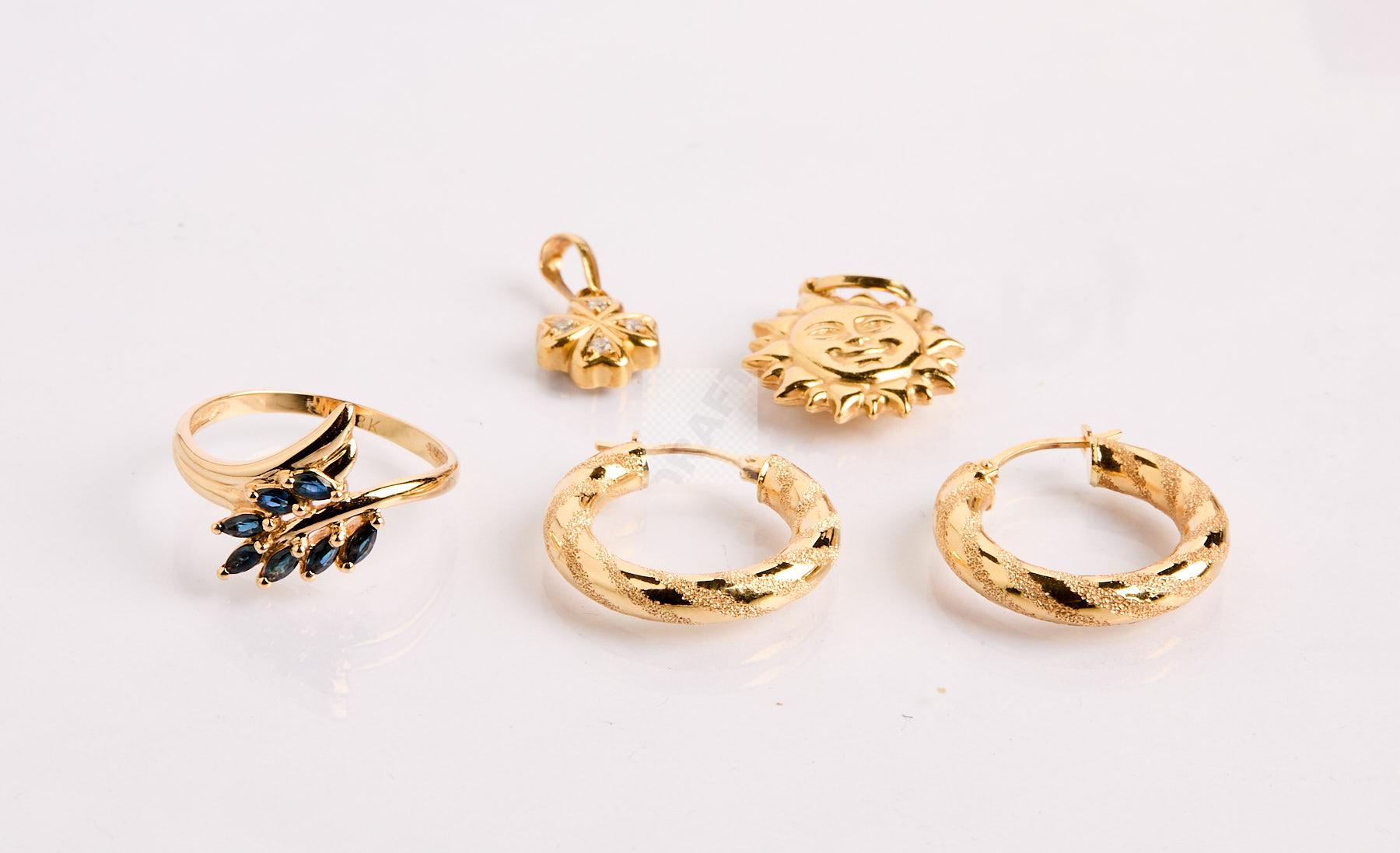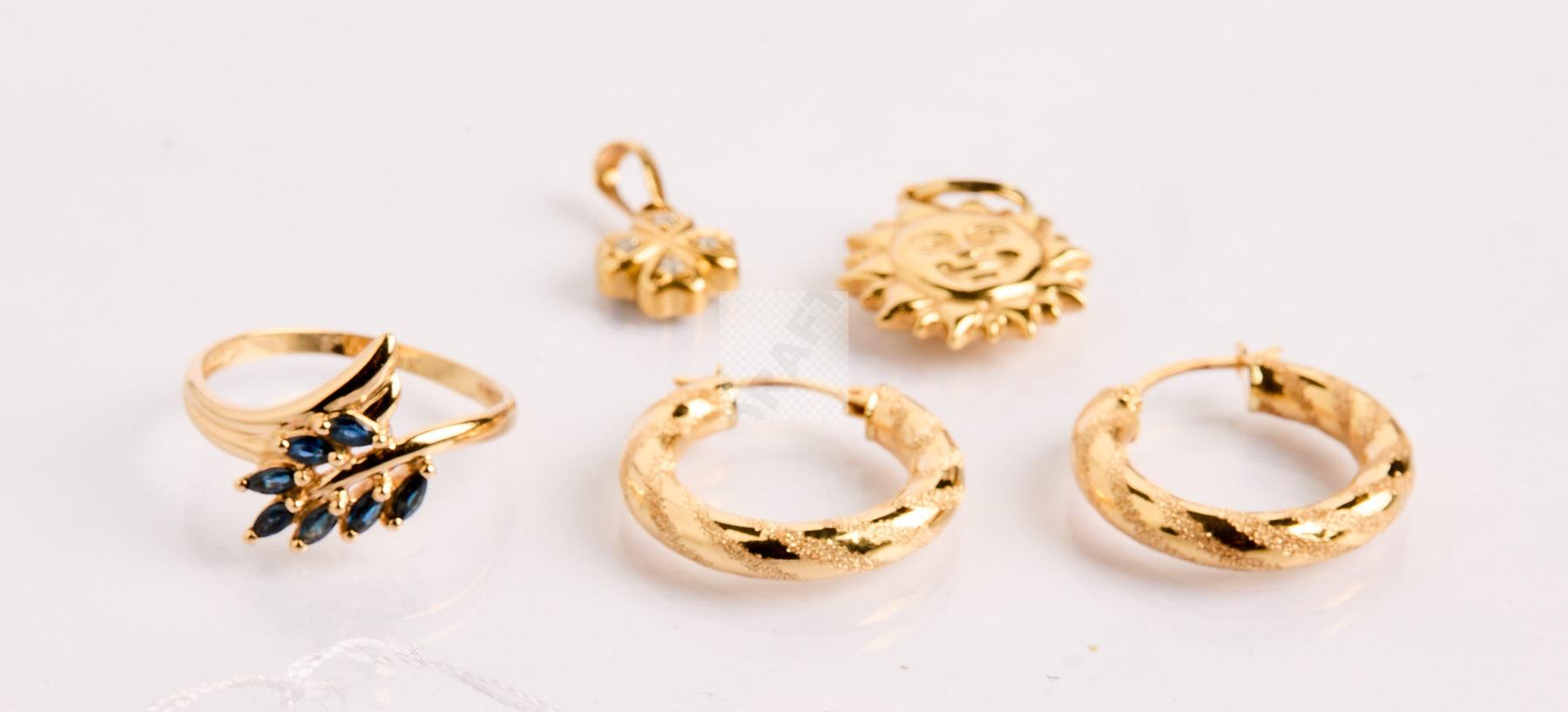Lot n°124 - 124 Paire de créoles or 750‰, bague or 750‰, deux pendentifs or 750‰, poids 6,8