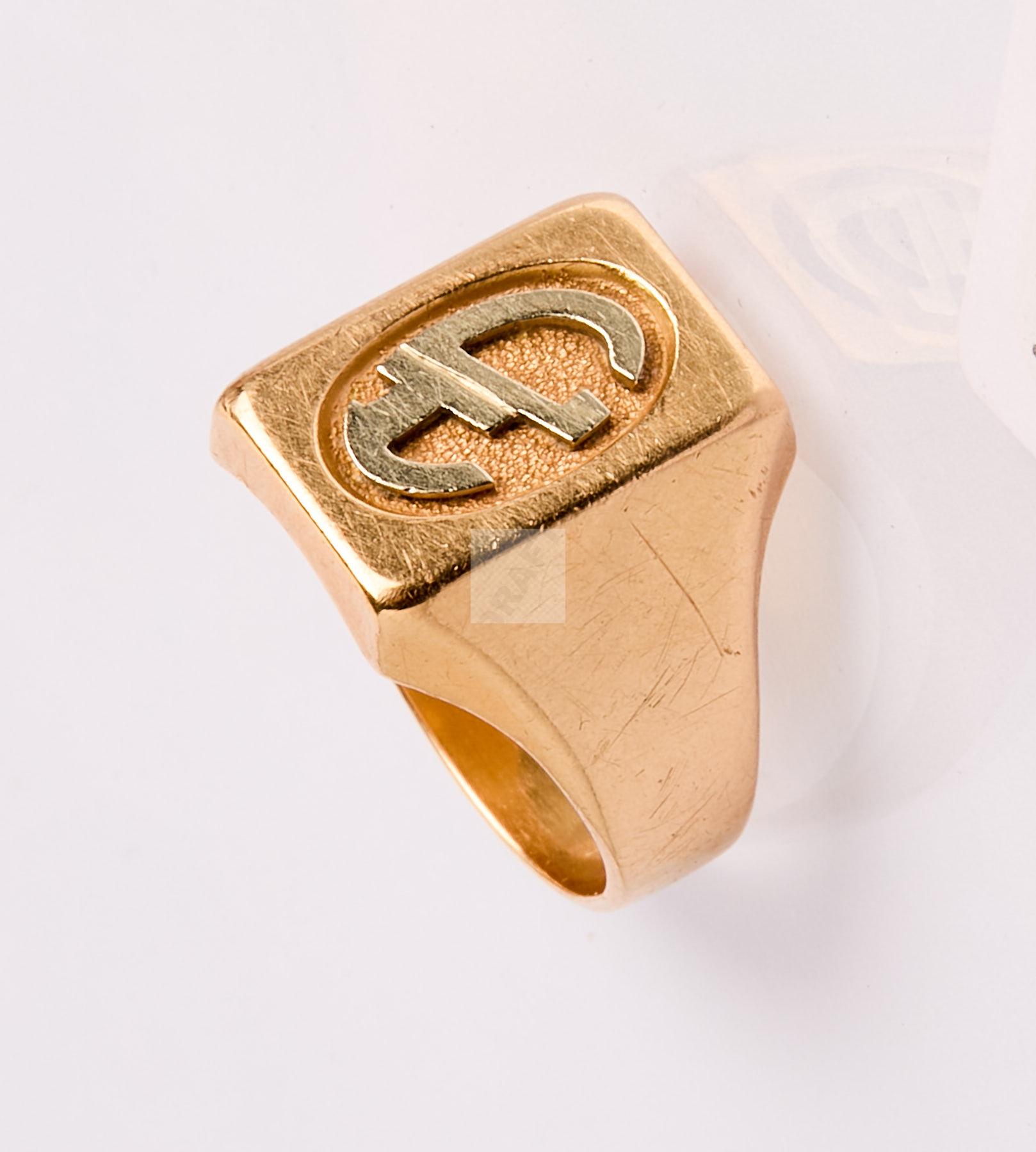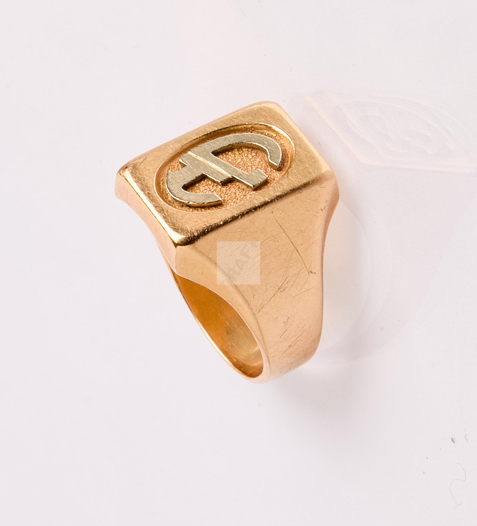 138 Bague chevalière à initiales en or jaune 750 ‰, Tour de doigt 52, poids 8,38 g