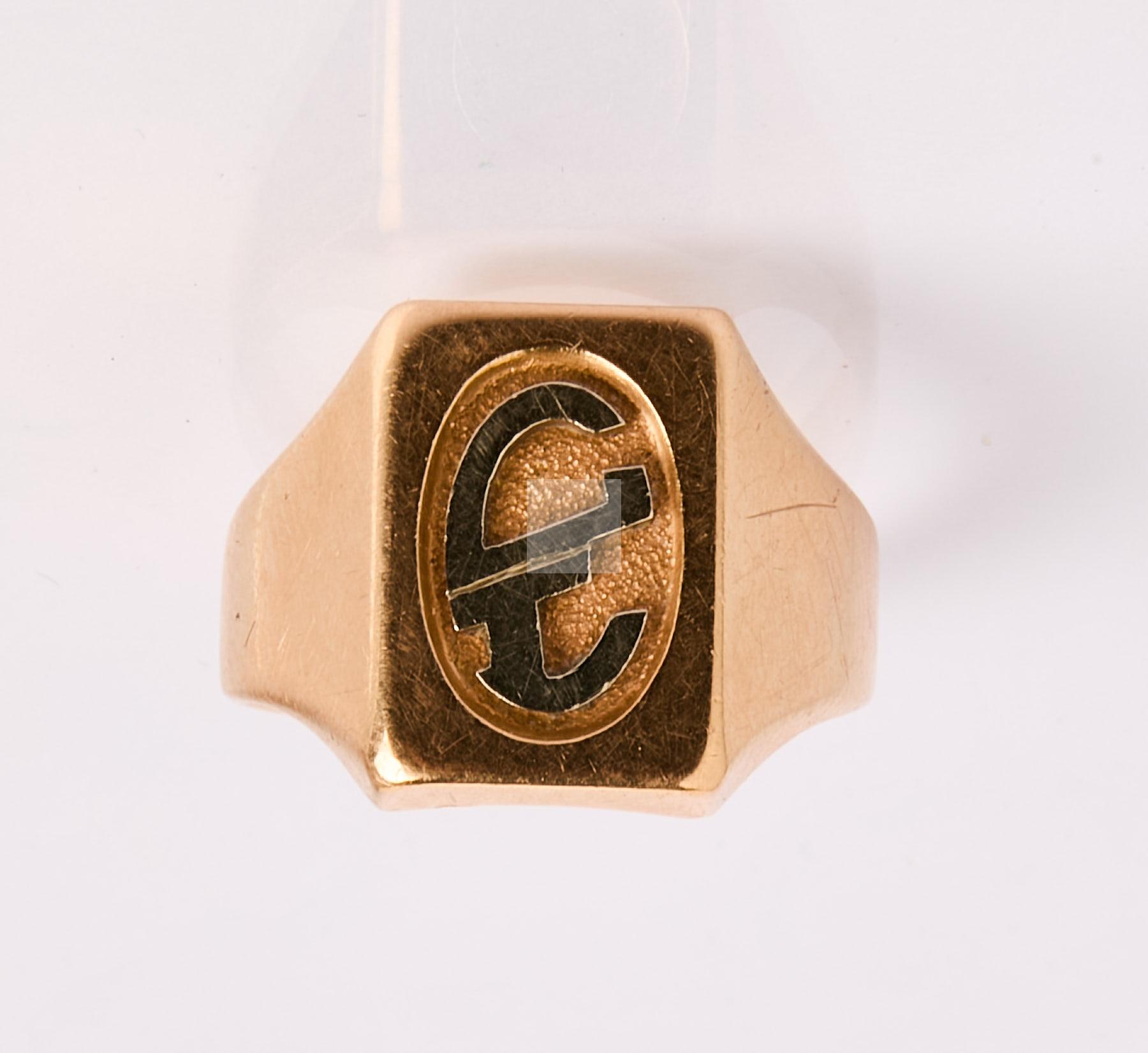 Lot n°138 - 138 Bague chevalière à initiales en or jaune 750 ‰, Tour de doigt 52, poids 8,38