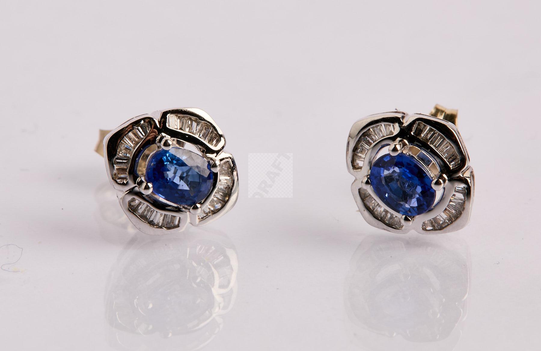 Lot n°142 - 142 Paire de puces d’oreilles en or gris 750/1000 sertie de saphirs dans un ento