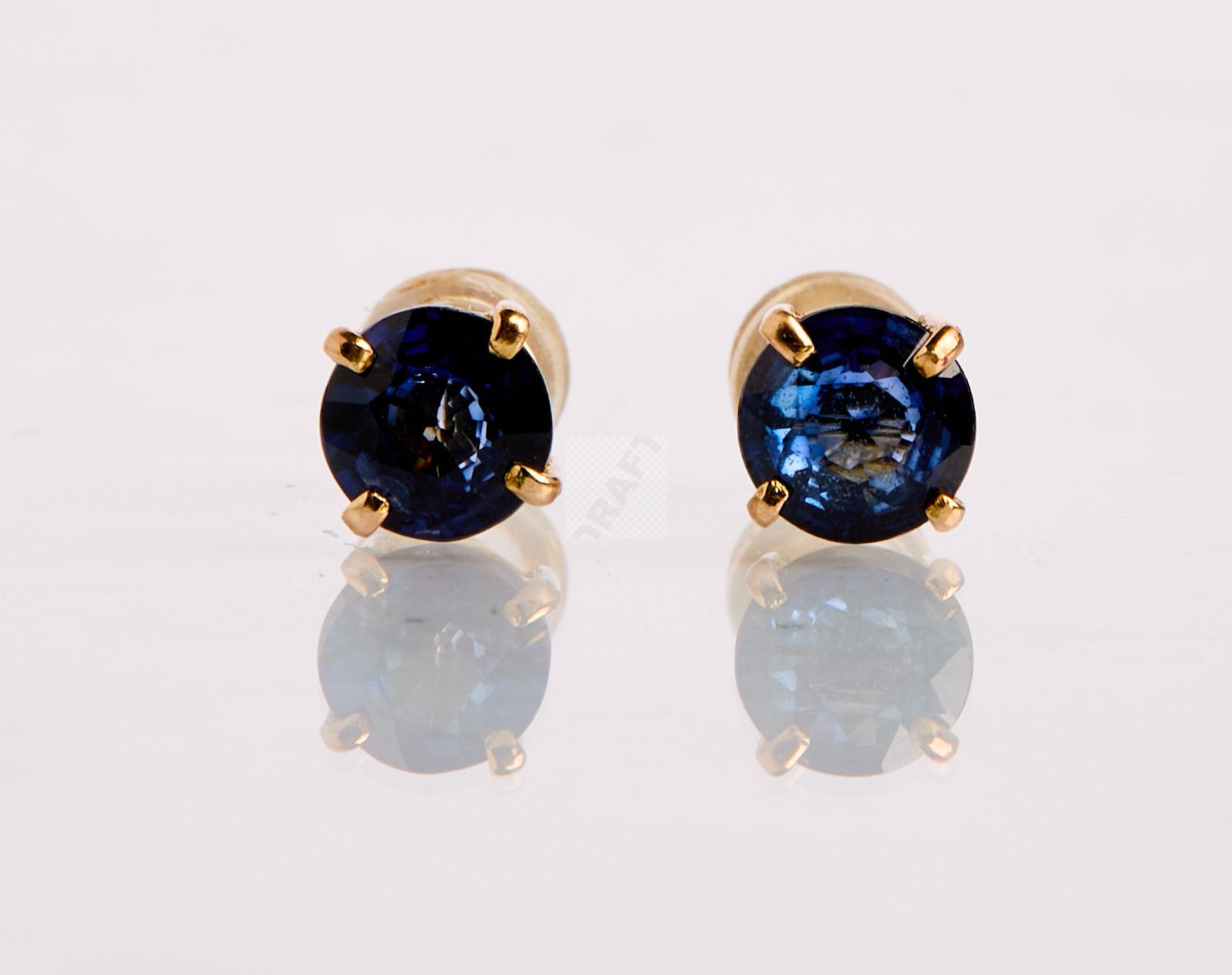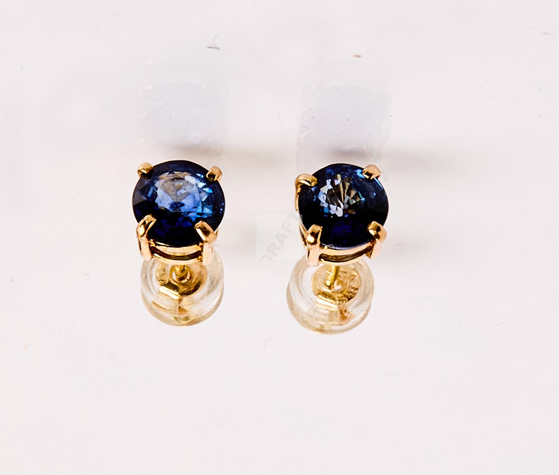 Lot n°146 - 146 Paire de puces d’oreilles en or jaune 750/1000 ornée de saphirs.