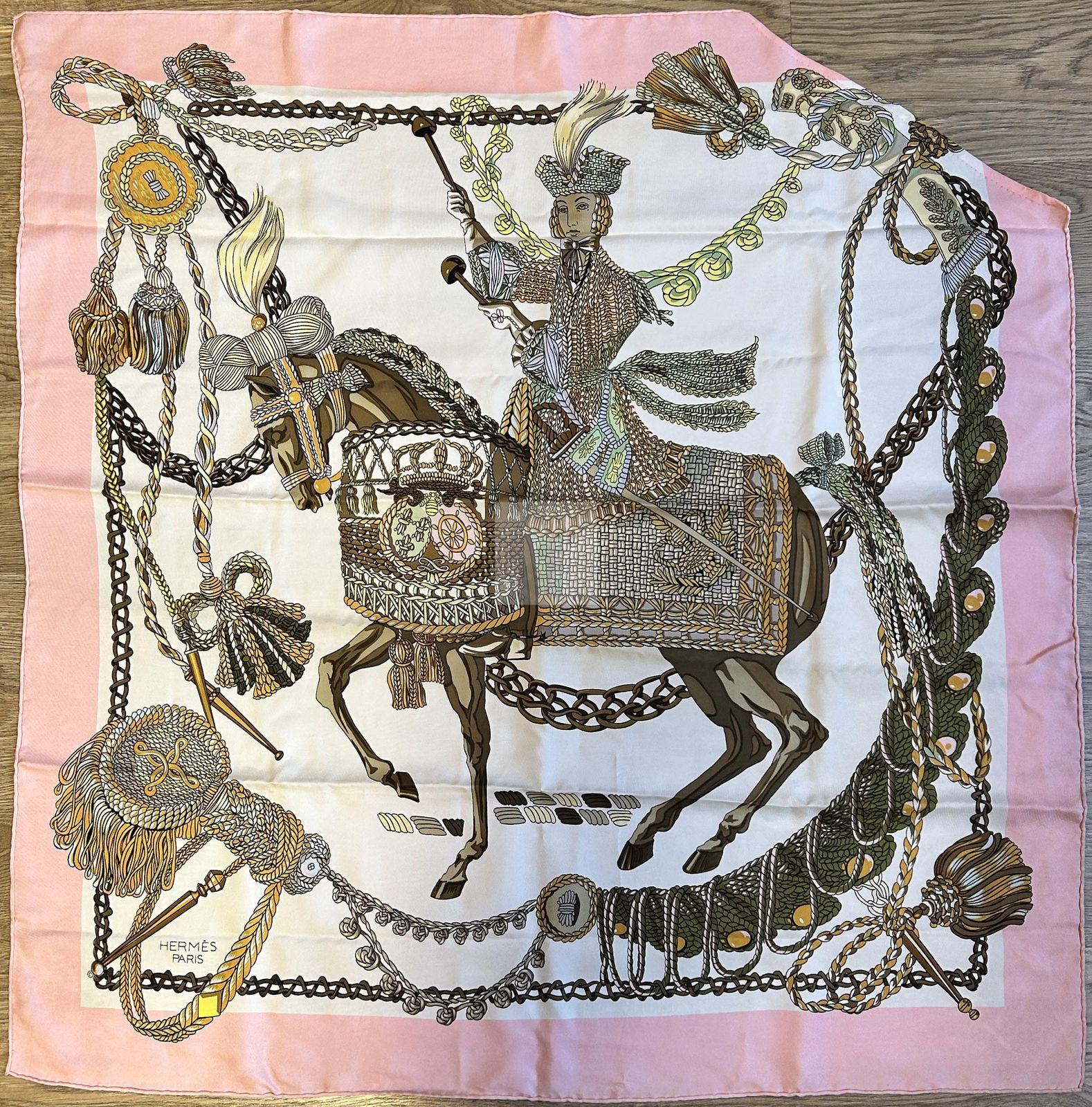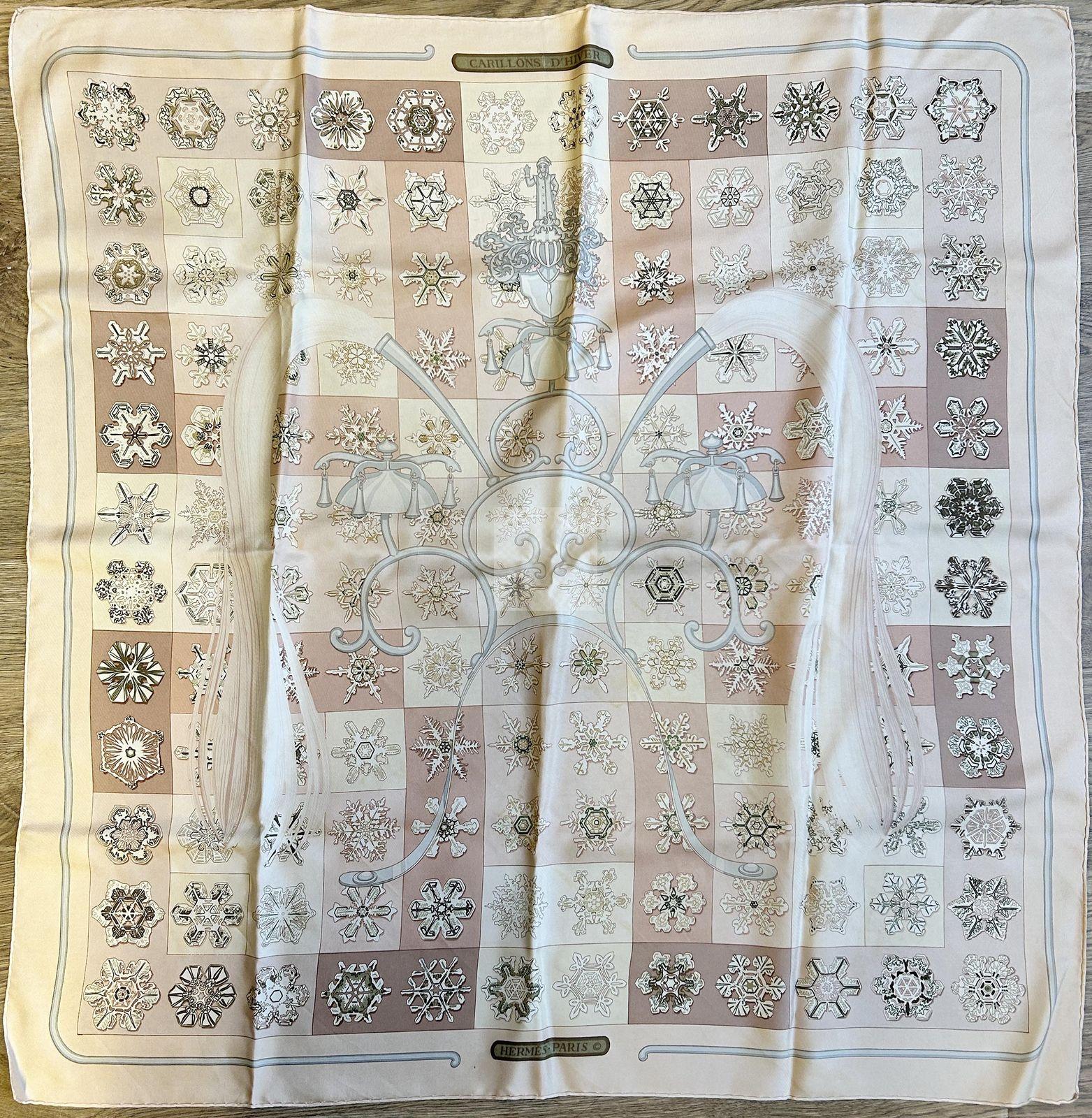 156 HERMES:foulard modèle carillons d’hiver (tâches), on y joint un foulard (coupé) mauvais état.