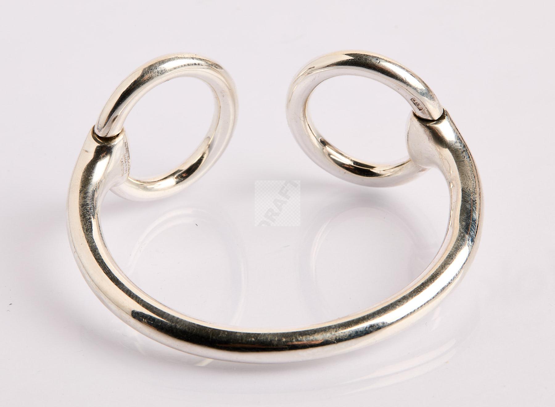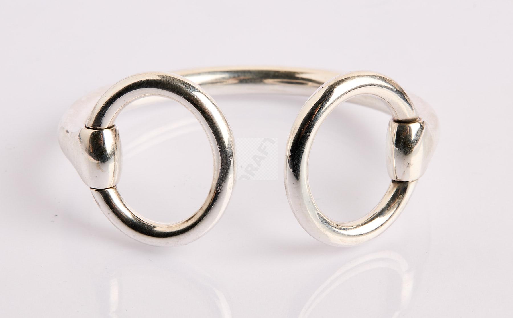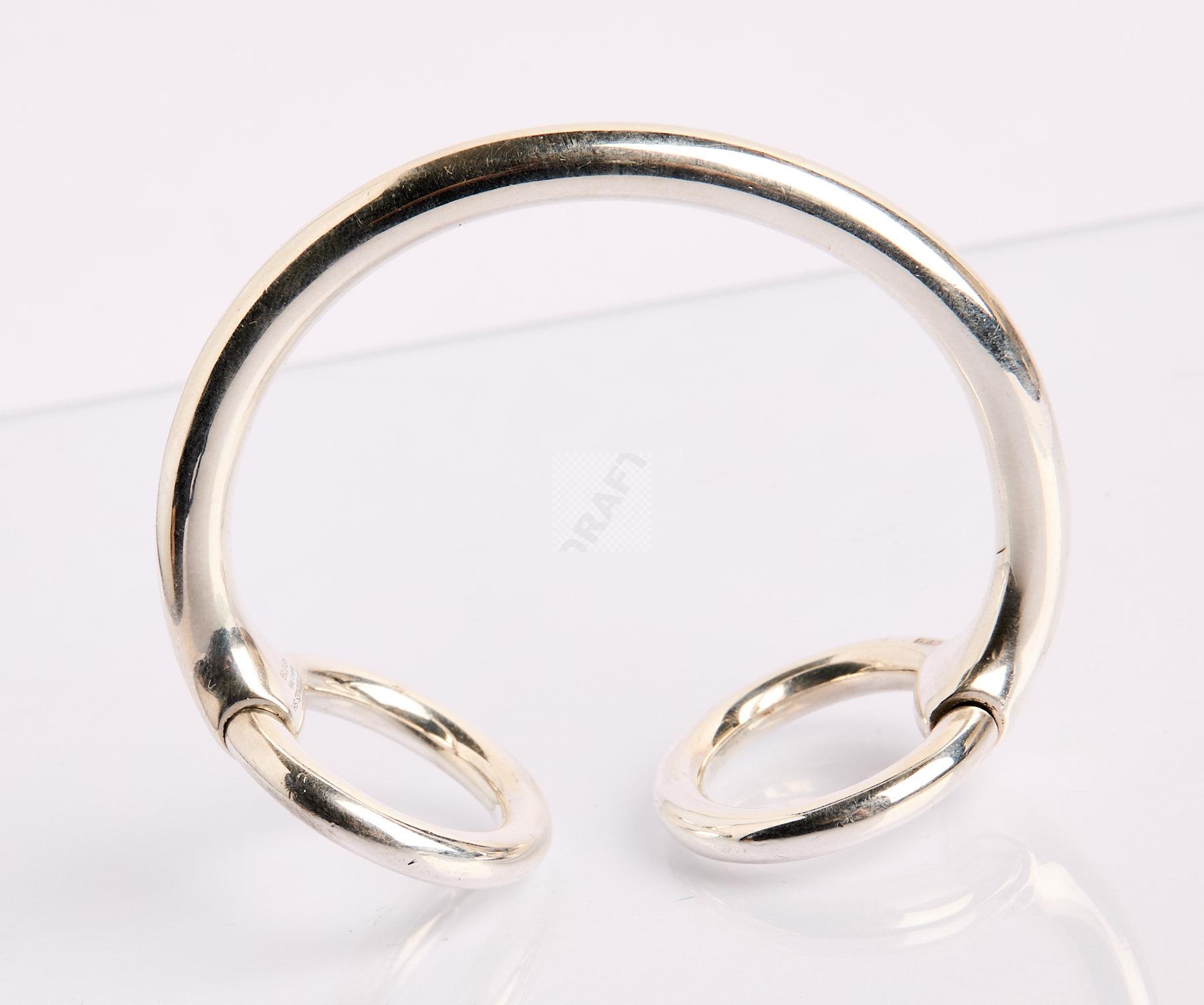 Lot n°177 - 177 HERMÈS : Bracelet étrier Nausicaa en argent, boucles mobiles, signé et numér