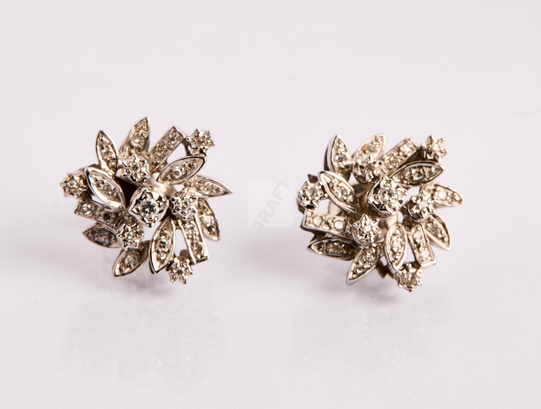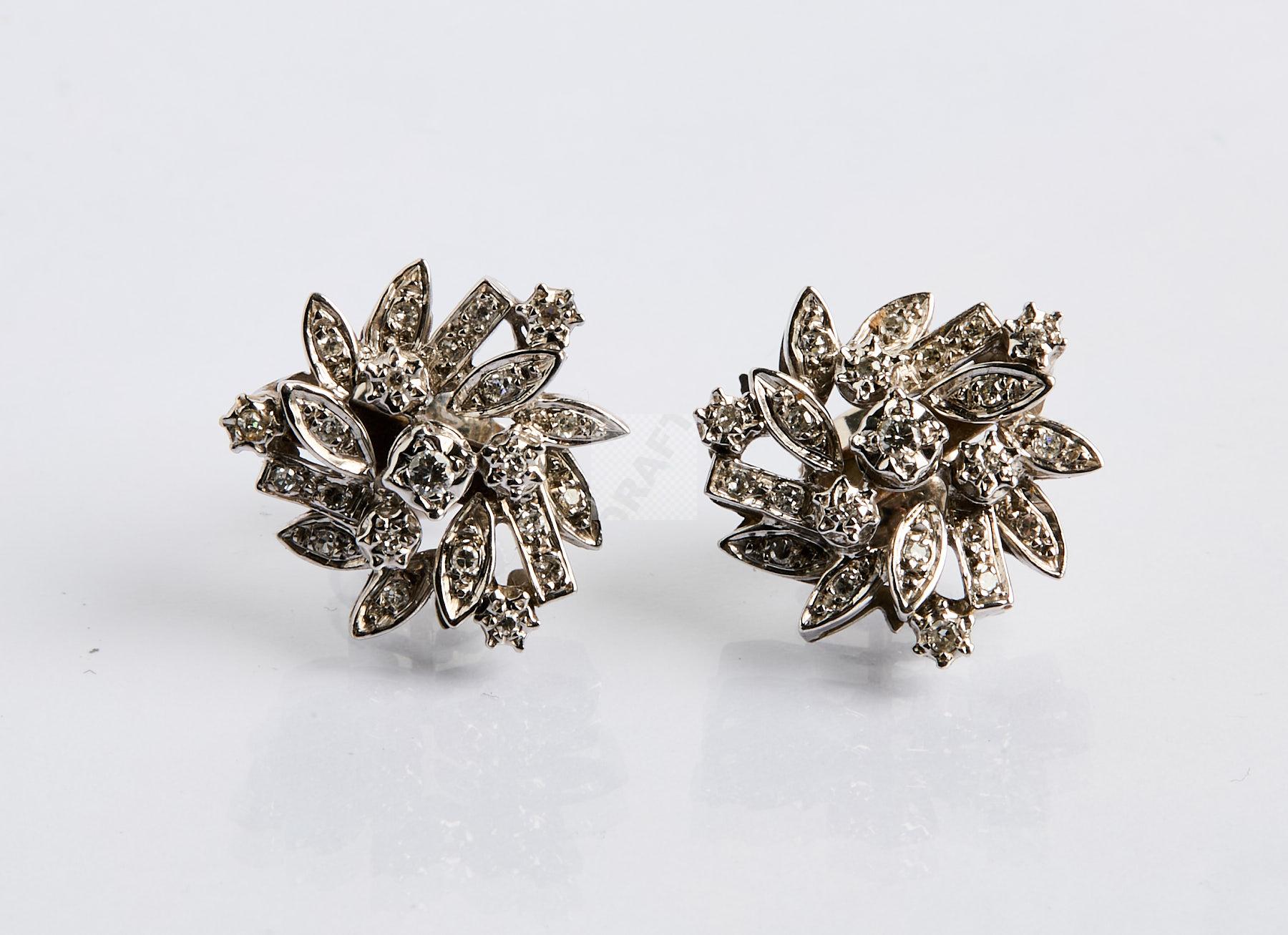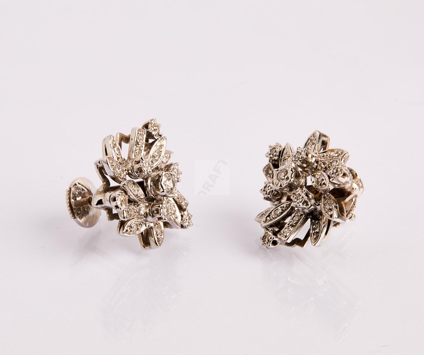 186 Paire de boucles d’oreilles en or gris 750 ‰ en fleurs stylisées pavées de diamants , poids 8,8 g