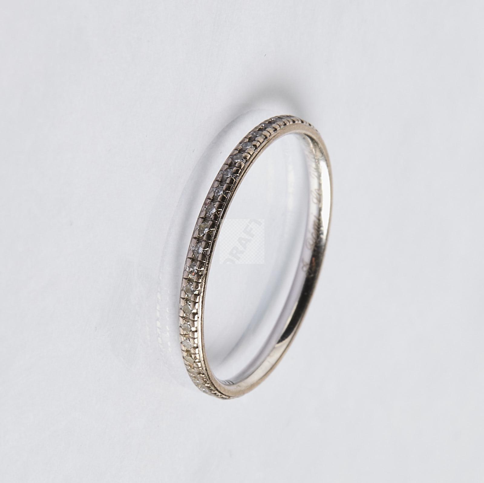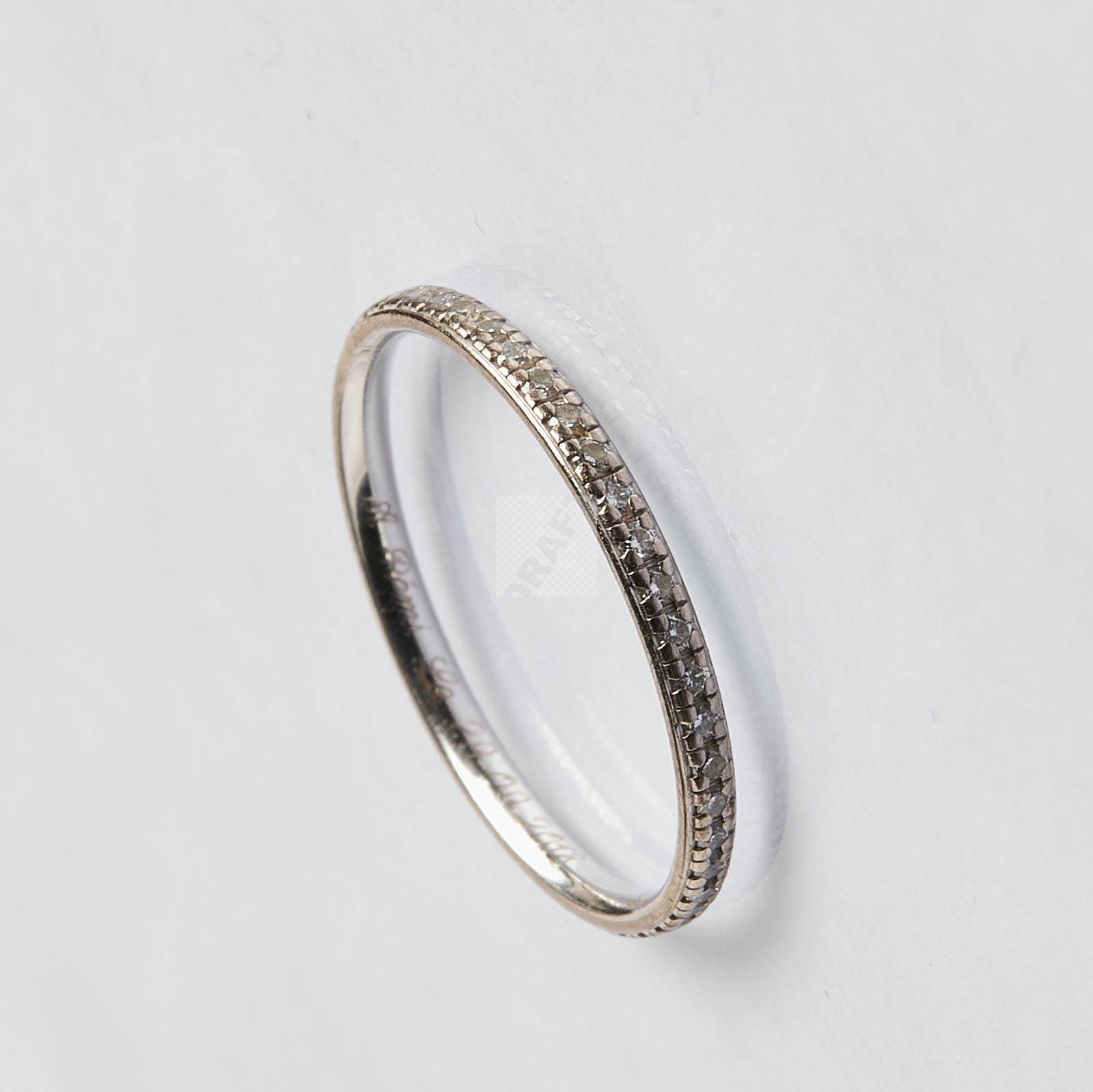 Alliance américaine modèle « Parce que je t’aime » en or gris 750/1000 pavée de petits diamants.
