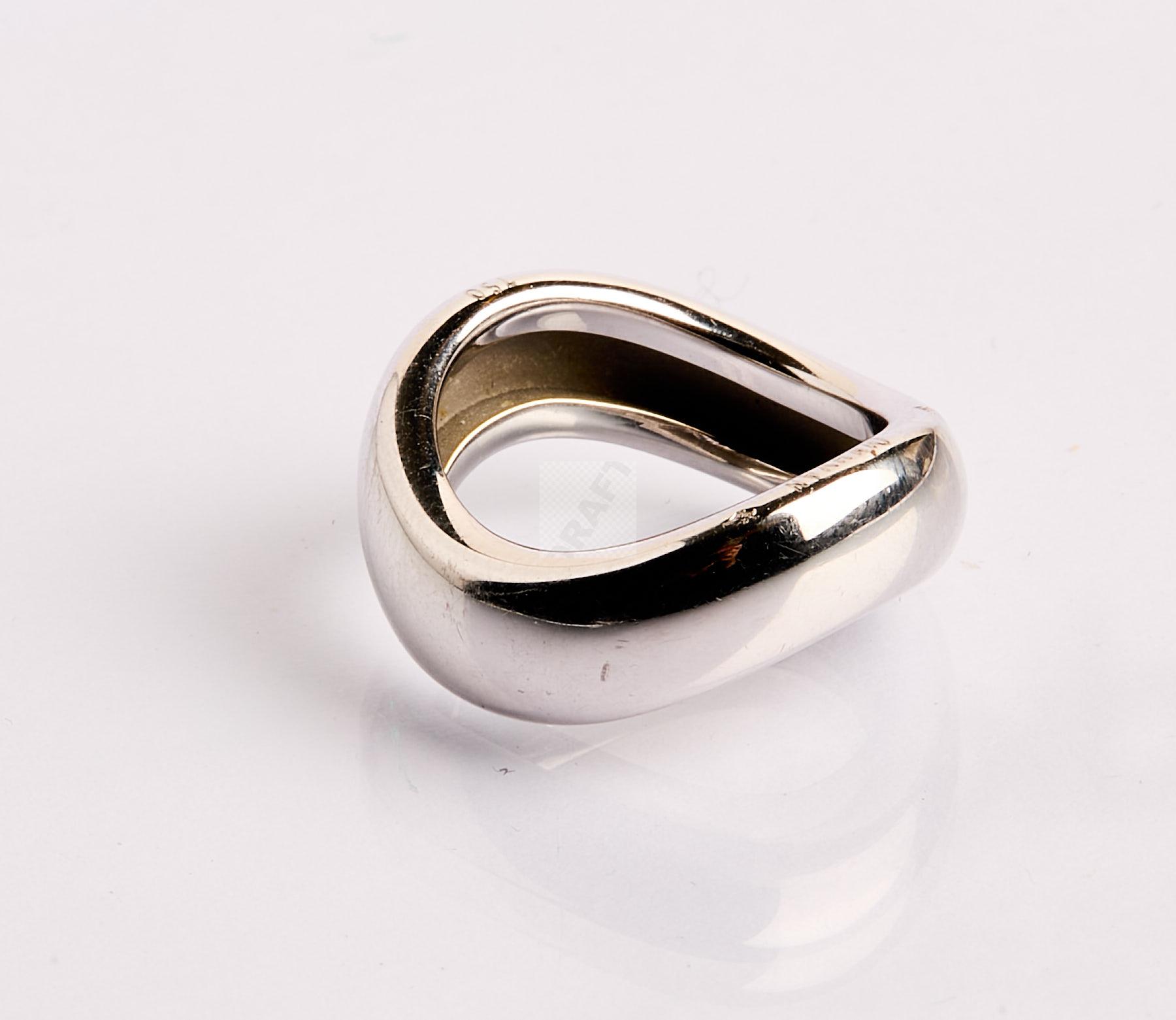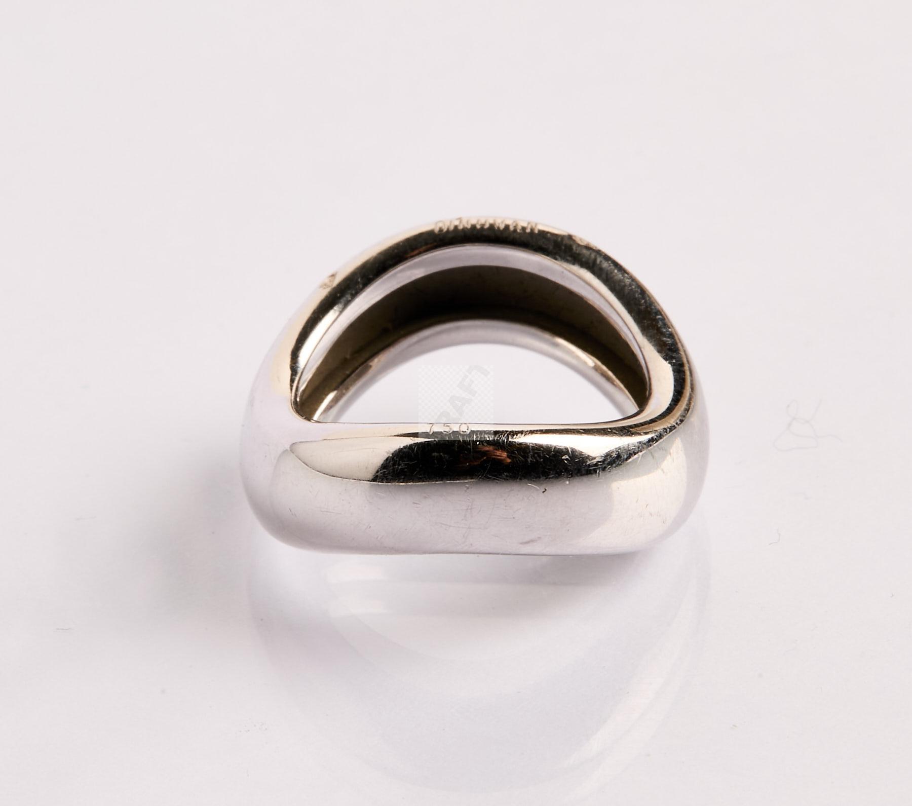 Lot n°192 - 192 DINH VAN : Bague ondulée en or gris, signée, tour de doigt 50. poids 9,5 g.