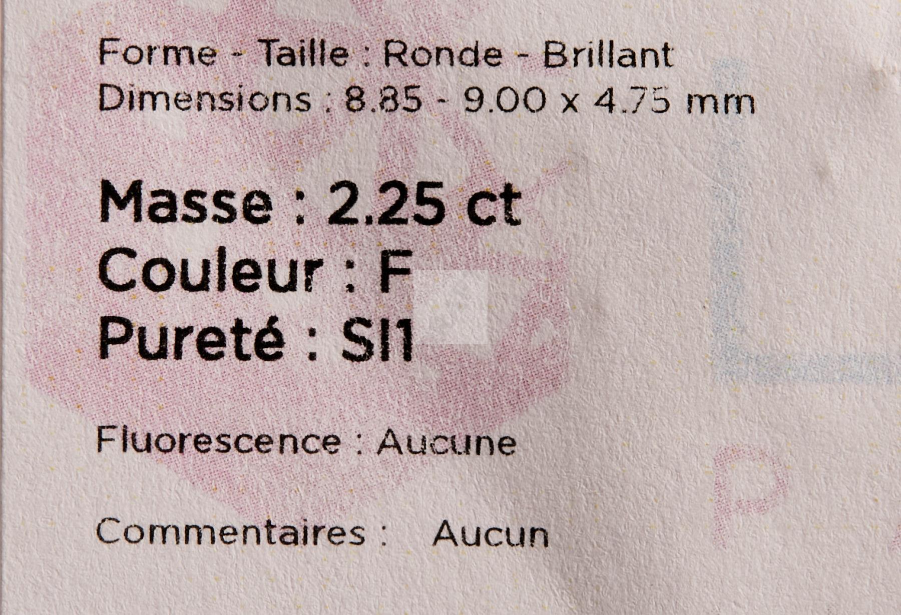 200 Diamant sur papier d »un poids de 2.25ct couleur F, pureté SI1.