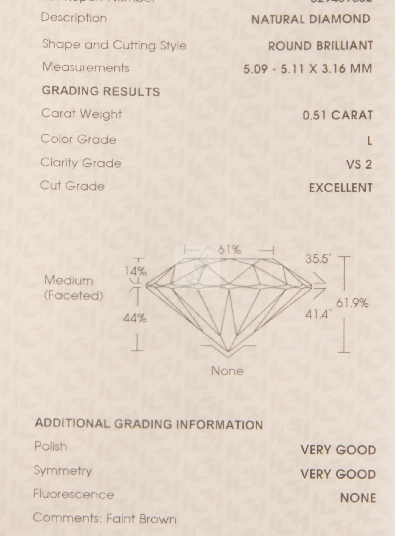 214 Diamant sous scellé d’un poids de 0,51 ct L VS2, avec son rapport d’analyse du IGI.