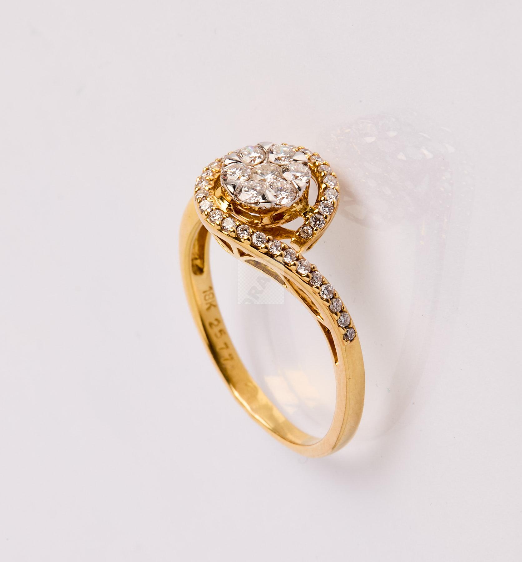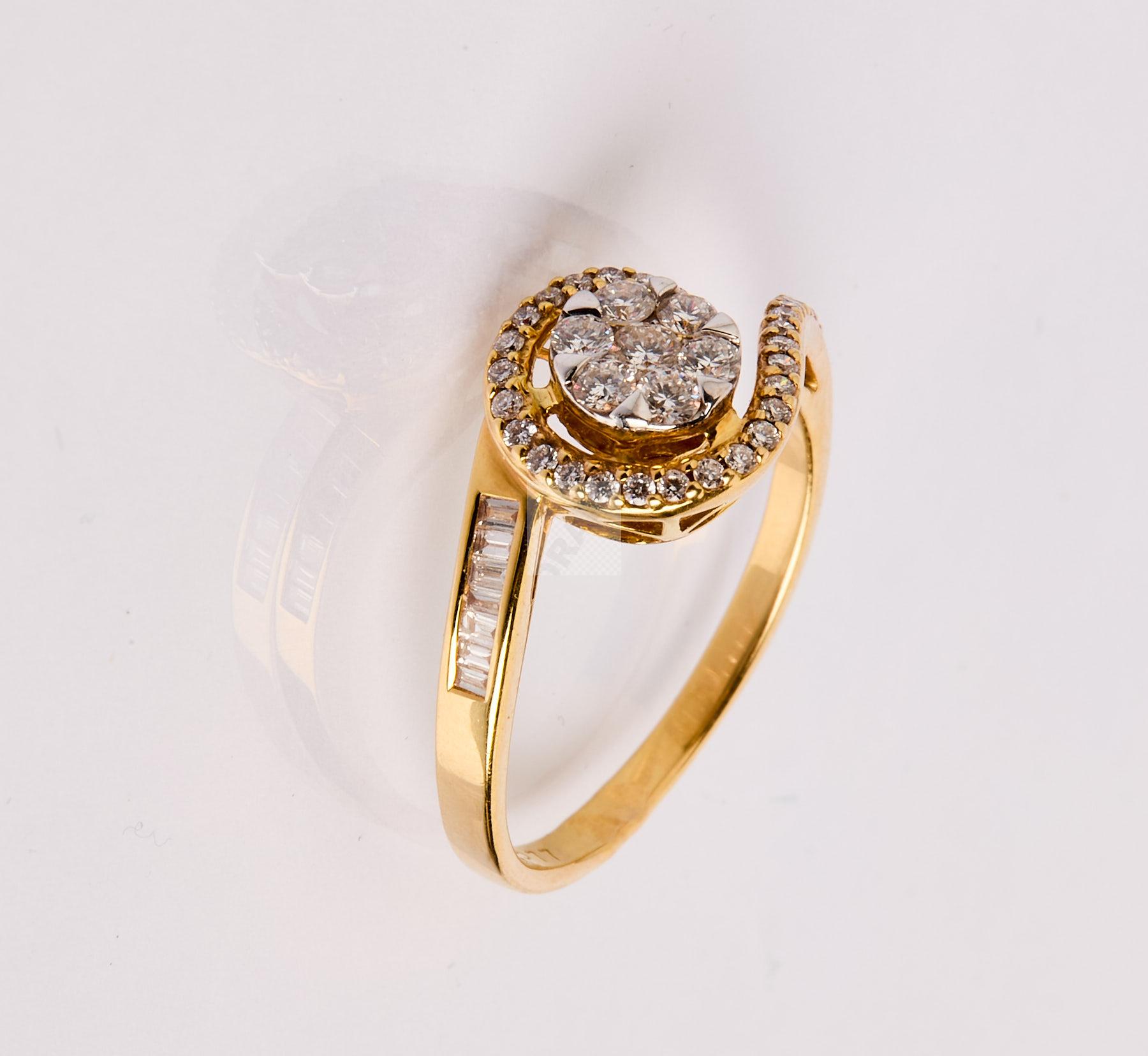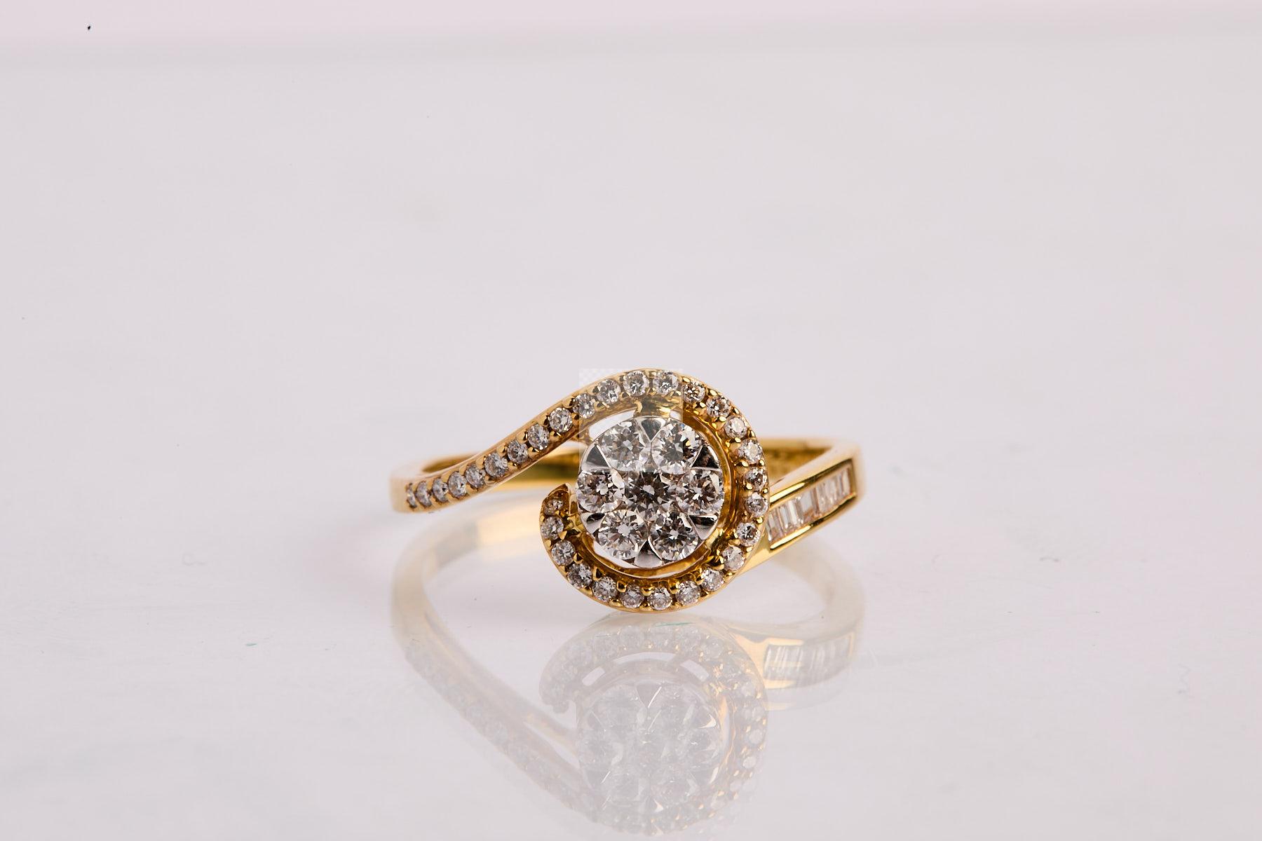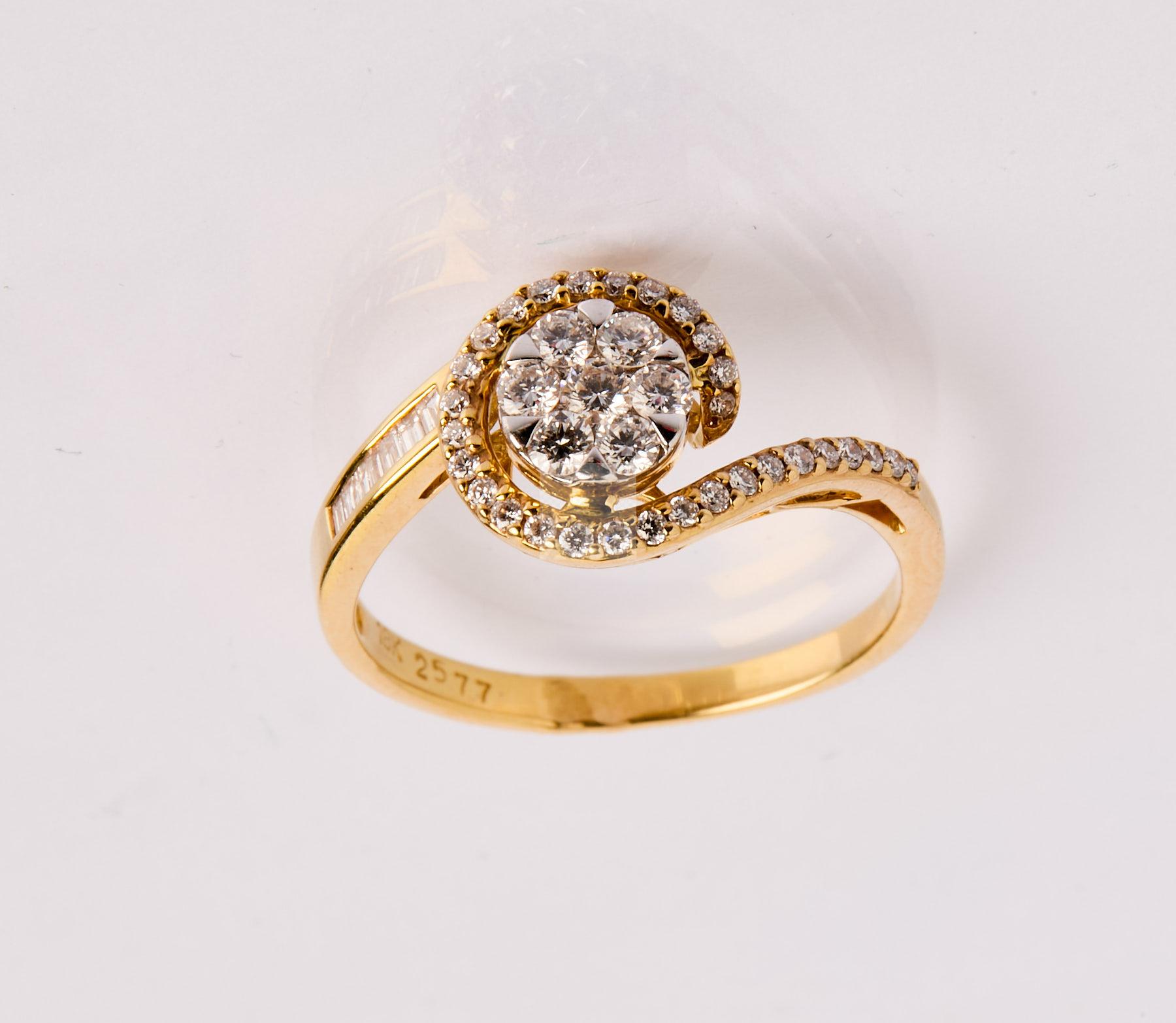 233 Bague tourbillon en or jaune 750/1000 sertie de diamants ronds et baguettes totalisant environ 0.50 carat.
